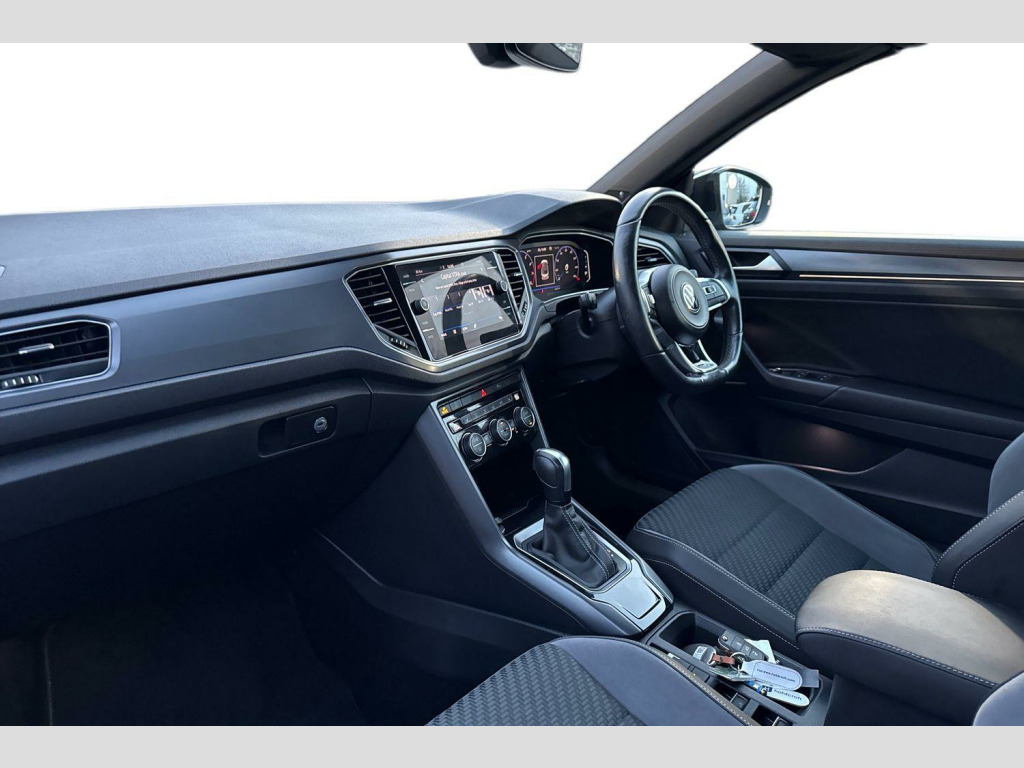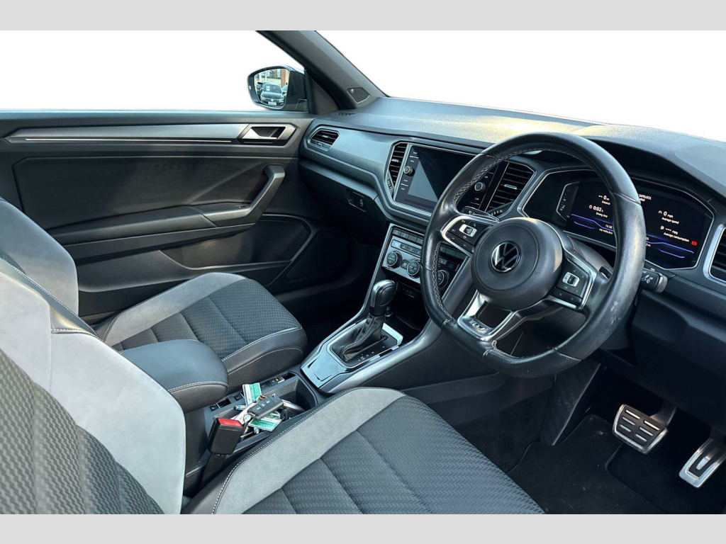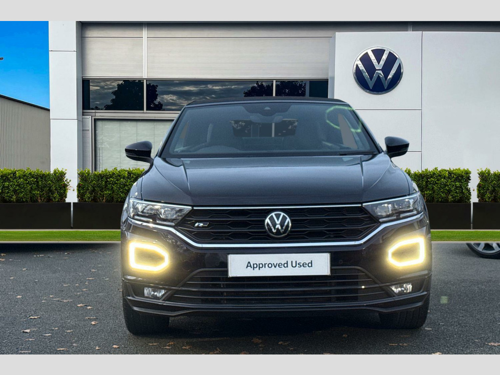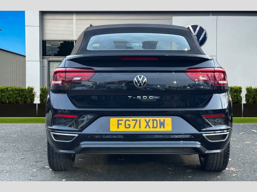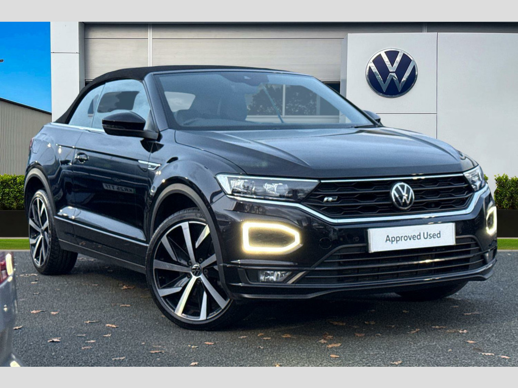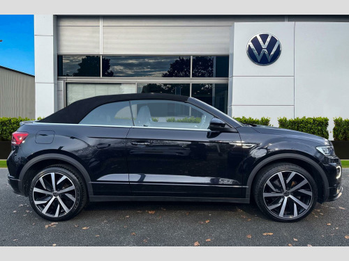 Beats Soundpack, Winter Pack, 19" San Marino alloy wheels, Metallic paint, Beats sound pack - T-Roc cabriolet, Front and rear electric windows, Heat insulating glass windscreen, Rain sensor, Windscreen wiper with intermittent wipe light, Body colour rear roof spoiler, Body coloured exterior mirror housings and door handles, Chrome effect left and right trapezoid exhaust tailpipe fascia surround, Chrome trim on upper and lower radiator grille, Power operated canvas convertible top, R-Line design body coloured bumpers, Rear exhaust tailpipe, Volkswagen roundel, Automatic coming/leaving home lighting function and daytime running lights, Automatic hazard lights activation under emergency braking, Darkened LED tail lamp, Dusk sensor, Dynamic headlight range control with self adjusting whilst driving, Front fog lights with static cornering function, High level 3rd brake light, LED darkened rear light clusters, LED headlamps with automatic range adjustment and unique signature LED separate daytime running lights, LED rear number plate lights, LED tail lamp rear comination lamps, Rear fog lamp, ABS, Autonomous emergency braking, Electronic parking brake with auto hold, Electronic stability control (ESC) includes ASR, EDL, EDTC and trailer stabilisation function, Front assist with city emergency braking and pedestrian monitoring, Ventilated front and rear disc brakes, Volkswagen roadside assistance, Adaptive cruise control, Driver alert system with fatigue detection, Dynamic road sign display, Lane assist with warning text instrument cluster, Modified key software - reduce switch off time for key status change to Long no motion, Progressive power assisted steering, Auto dimming interior rear view mirror, Electrically power adjustable, heated, folding, auto dimming, front passenger exterior door mirror lowering function, 2 x 3-point rear seatbelts, Driver and front passenger safety-optimised head restraints, Drivers and front passengers airbags with passengers deactivation switch, Drivers seatbelt reminder, Pedestrian monitoring, Predictive pedestrian protection, Rigid safety cell with front and rear crumple zones, Side airbag/thorax airbag system, for front passengers, Single tone horn, Three point height adjust front seatbelts + pretensioners, Tyre pressure loss indicator, Tyre pressure monitor, Front + rear carpet mats, Activated charcoal canister for intensified evaporation system, Climate control - 2 zone electronic air conditioning with automatic air recirculation and allergy filter, 12V socket in centre console storage area, 3 spoke leather wrapped multifunction sport steering wheel, Chrome plated surround to light, mirror and window switch, Door and side trim panel in foam film, insert in leatherette, Entry aid easy entry (Front folding seats), Front centre armrest, Front cupholders x 2, Glove Compartment with light, Height/reach adjust steering wheel, Scuff plates in door apertures, Stainless steel pedals, Storage compartments in driver and front passenger doors, Unique R Line door sill protectors, 2 front reading lights, Instrument lighting, white adjustable panel illumination, Interior light delay, Interior light in footwell, Luggage compartment lighting, White ambient lighting, Illuminated vanity mirrors in sun visors with air bag label on sun visor and b-pillar, Bluetooth telephone and audio connection for compatible devices, Car-Net Security and Service, Mobile phone interface, Online services, Wired and wireless app connect, Bluetooth - Simultaneous pairing of 2 compatible mobile devices, DAB Digital radio, Diversity antenna for FM reception, Music playback - MP3, WMA and AAC files, SMS functionality - read, compose and send SMS messages using touch-screen display, Title and cover art display, USB-C Interface and USB charging socket, WeConnect plus, Start/stop system with brake energy recovery, Tailgate/trunk lid release from outside, 8" colour touch screen, Active Info display 10.25" high resolution TFT dash display with customisable menu and information, Brake pad wear indicato