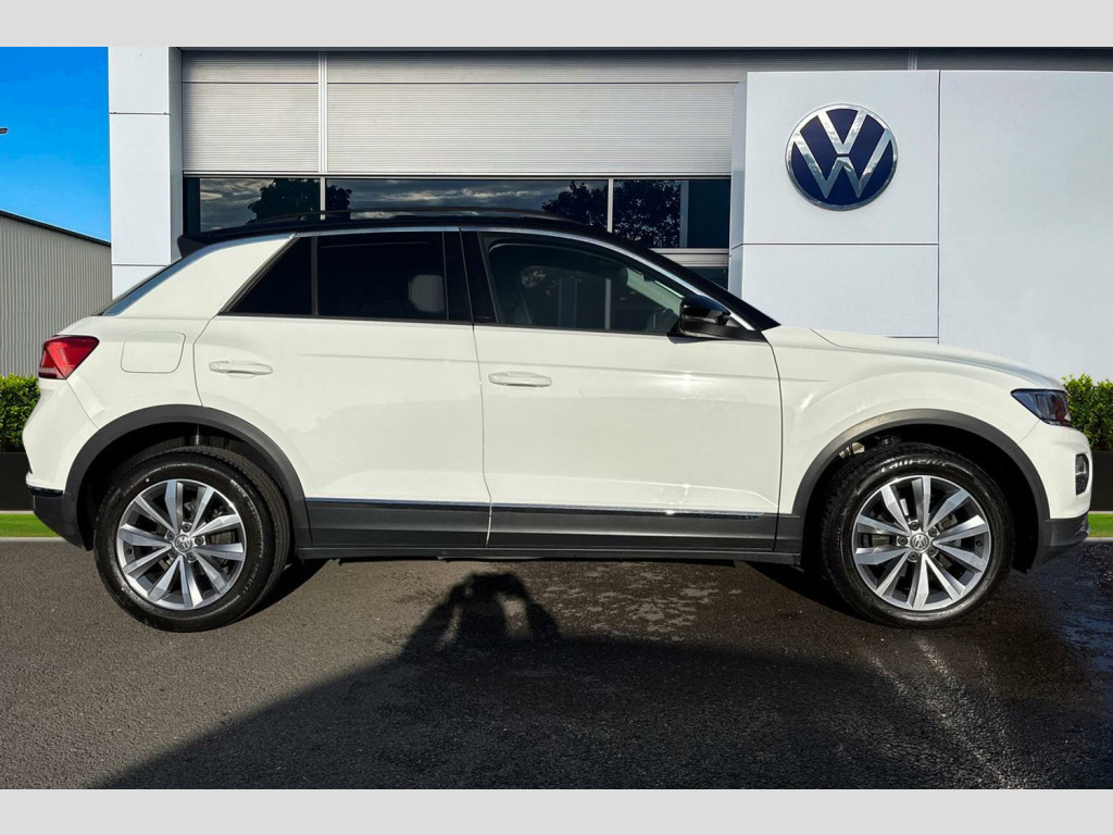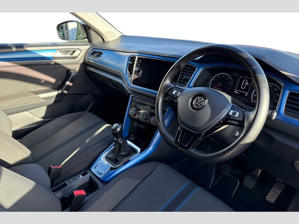 Now available to purchase at Wrexham Volkswagen is this Volkswagen T-Roc Design. This T-Roc is powered by a 1.0 TSI 115PS engine with manual transmission. The exterior, which is finished in a Pure White paintwork, has a range of features on offer. To the front of the vehicle you'll find the automatic headlights that keep the roads well lit, and to the side the rear tinted windows for passenger privacy and the 17in Mayfield alloy wheels. For added convenience this T-Roc also features a set of roof rails, and front and rear parking sensors that assist with maneuvering.