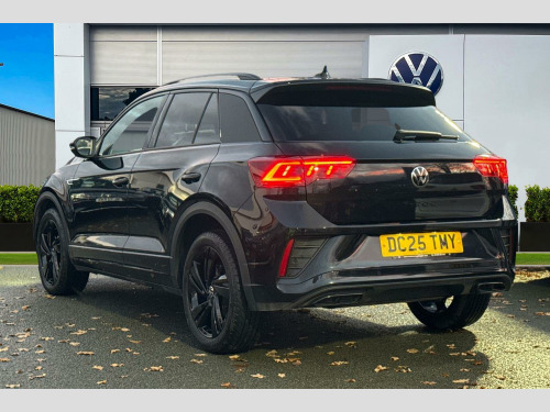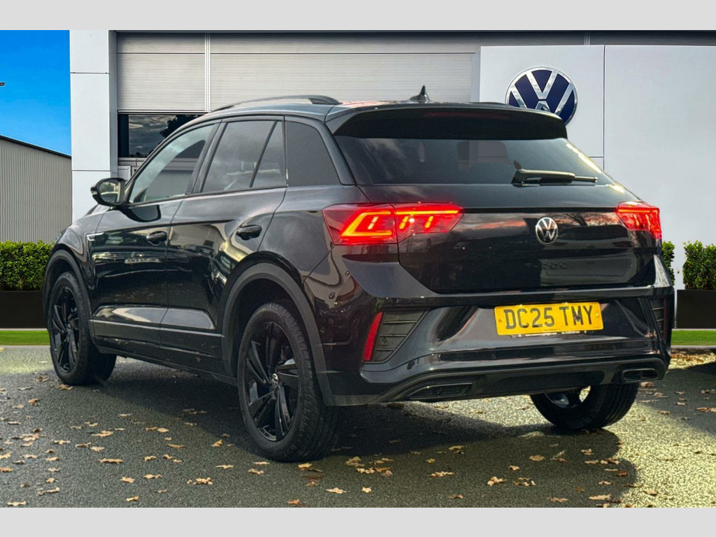 This 2025 Volkswagen T-Roc TSI Black Edition presents an exceptional opportunity with its remarkably low mileage of just 5127 miles, a testament to its single owner history. As a Volkswagen manufacturer approved vehicle, this T-Roc boasts the stylish Black Edition trim and is powered by an efficient 1.5 litre petrol engine, meeting Euro 6 emission standards.