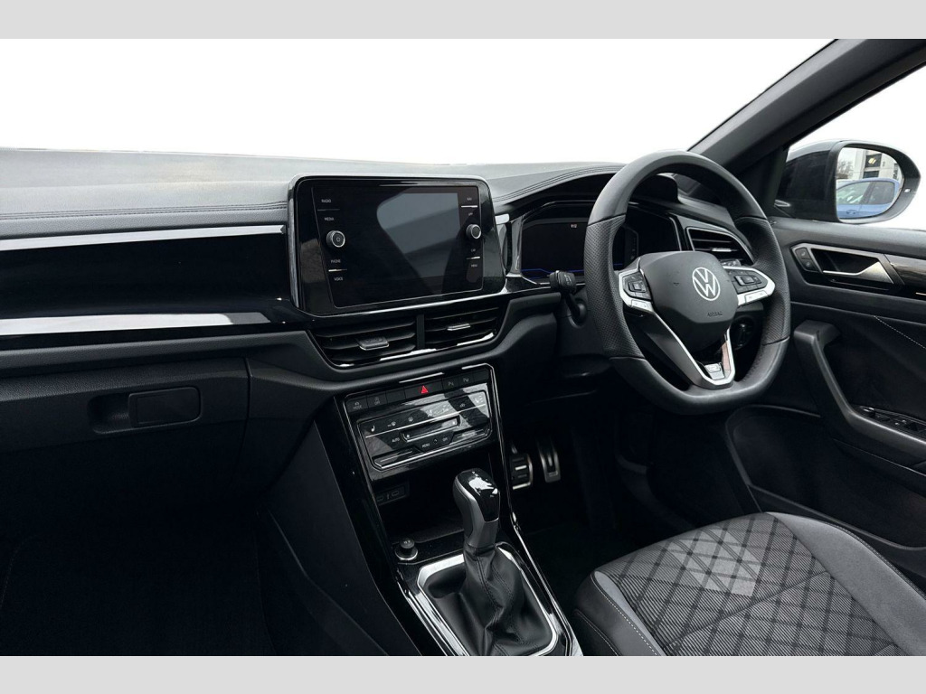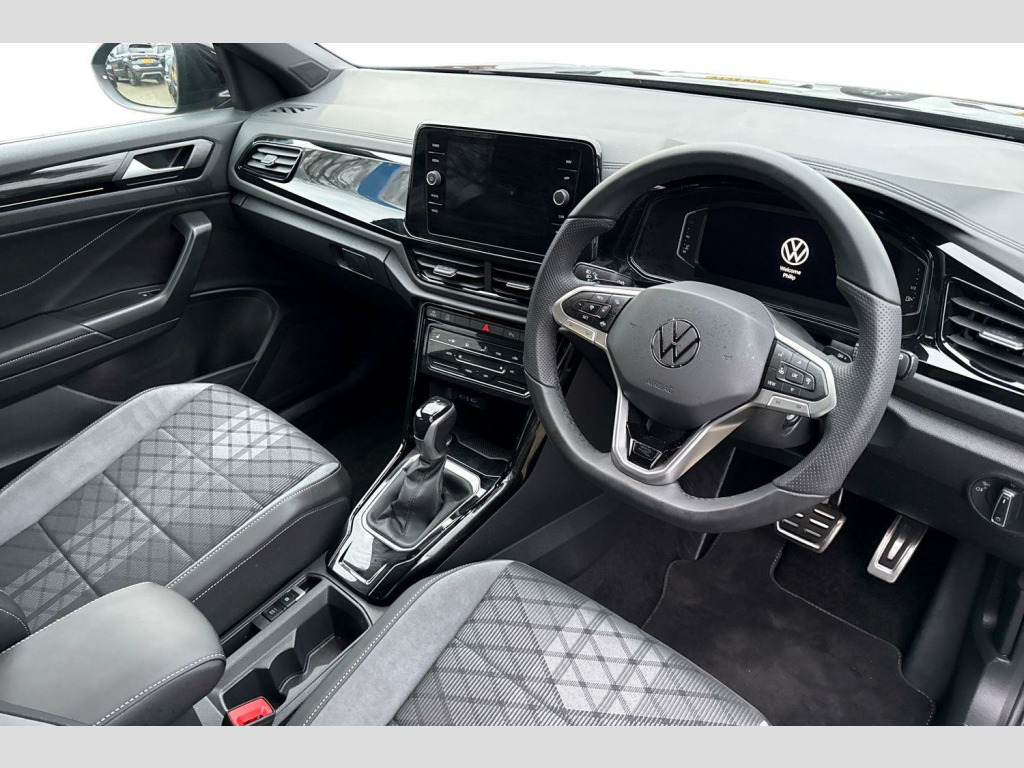 Volkswagen T-Roc 1.5 TSI Black Edition 5dr DSG Front windscreen wiper with intermittent wipe and 4 position delay, Heated rear window, Power windows with comfort operation and circuit breaker, Rain sensor, Rear wash/wipe with intermittent wipe setting, Rear shock absorption chassis with increased ride height, Extended roof spoiler, External USB type C socket and charging sockets, Illuminated front grille, R-Line design body coloured bumpers, Rear exhaust tailpipe, Rear side wing doors, Automatic hazard lights activation under emergency braking, Automatic headlight control with LED separate daytime running lights with coming/leaving home function, Dynamic cornering light, IQ LED matrix headlights, LED 3rd brake light, LED rear number plate lights, LED rear tail lights with dynamic turn signal, Light mode for poor weather, rain, fog or snow, Rear fog light on one side and reversing lights on both sides, ABS, City emergency braking and pedestrian monitoring, Electronic parking brake, Electronic Stability Control (ESC) inc EDL (Electronic Differential Lock) and ASR (Traction Control), Front disc brakes, Hill start assist, Rear disc brakes, Volkswagen roadside assistance, Advanced driver attention and drowsiness monitor, Lane keeping system Lane Assist, Modified key software - reduce switch off time for key status change to Long no motion, Park assist including front and rear parking sensors, Power assisted speed sensitive steering, Auto dimming interior rear view mirror, Electrically adjustable and heated door mirrors, Exterior mirrors aspherical on driver side, convex on front passenger side, Remote electrically foldable door mirrors, puddle lights and reverse activated passenger's door mirror, 3 point height adj front seatbelts + pretensioners, 3 point seatbelts in outer rear with ECE label, Child locks on rear doors, Driver and front passenger airbag with front passenger airbag deactivation, Driver and front passenger safety-optimised head restraints, Drivers seatbelt reminder, Front and rear passengers curtain airbag system including front side airbags, Predictive pedestrian protection, Two tone horn, Tyre pressure loss indicator, Front + rear carpet mats, Air care climatronic air conditoning system with active combination filter and 2-zone temperature control, 12V power socket in centre console, 4 load lashing points in luggage compartment, Artvelours cloth upholstery, Black roof lining, Chrome plated radiator grille inserts, air vent surrounds and light switch surrounds, Door and side trim panel with leatherette insert, Drawer under drivers seat, Front centre armrest, Front cupholders x 2, Front scuff plates with R Line logo, Glove compartment door with light, Leather gearshift handle, Leather wrapped multifunction steering wheel with paddle shift, Load-through provision with cup holder when folded down ('Unsplit rear seat bench, split folding backrest, with centre armrest), Stainless steel pedals, Storage compartment in left and right luggage area, Storage compartment in rear doors, Storage compartments in driver and front passenger doors, Variable boot floor, height adjustable and removable, Front footwell illumination, Front reading light, Instrument lighting, white adjustable panel illumination, Interior ambient lighting and surround lighting, Interior light delay, Luggage compartment lighting, Sunvisors with illuminated vanity mirrors, Mobile phone interface, Online services, Wireless app connect, DAB Digital radio, Diversity antenna for FM reception, Front and rear 6 speakers, Music playback - MP3, WMA and AAC files, Premium USB cable in choice of either Apple or Android smartphone compatibility, SD card slot, Simultaneous pairing of 2 compatible mobile devices, Title and cover art display, We Connect and We Connect Plus functionality, Tailgate/trunk lid release from outside, 10.25" Digital cockpit pro, Emergency call service, Service interval indicator, Think blue trainer driver tips and journey analysis, Warning sound and light for front seatbelts unfastened, Bat