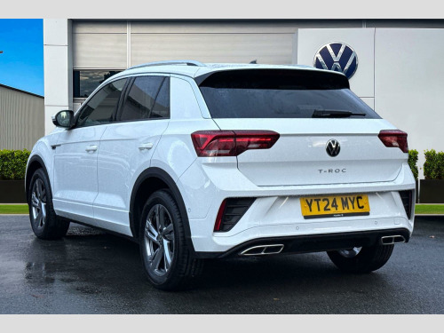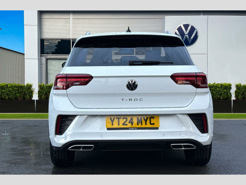 Front windscreen wiper with intermittent wipe and 4 position delay, Heated rear window, Power windows with comfort operation and circuit breaker, Rain sensor, Rear wash/wipe with intermittent wipe setting, Extended roof spoiler, External USB type C socket and charging sockets, R-Line design body coloured bumpers, Rear exhaust tailpipe, Rear side wing doors, 3rd brake light, Automatic hazard lights activation under emergency braking, Automatic headlight control with LED separate daytime running lights with coming/leaving home function, LED rear combination lamps, LED rear number plate lights, Rear fog light on one side and reversing lights on both sides, ABS, City emergency braking and pedestrian monitoring, Electronic parking brake, Electronic Stability Control (ESC) inc EDL (Electronic Differential Lock) and ASR (Traction Control), Hill start assist, Rear disc brakes, Volkswagen roadside assistance, Advanced driver attention and drowsiness monitor, Lane keeping system Lane Assist, Modified key software - reduce switch off time for key status change to Long no motion, Park assist including front and rear parking sensors, Auto dimming interior rear view mirror, Electrically adjustable and heated door mirrors, Exterior mirrors aspherical on driver side, convex on front passenger side, Remote electrically foldable door mirrors, puddle lights and reverse activated passenger's door mirror, 3 point height adj front seatbelts + pretensioners, 3 point seatbelts in outer rear with ECE label, Child locks on rear doors, Driver and front passenger airbag with front passenger airbag deactivation, Driver and front passenger safety-optimised head restraints, Drivers seatbelt reminder, Front and rear passengers curtain airbag system including front side airbags, Predictive pedestrian protection, Two tone horn, Tyre pressure loss indicator, Front + rear carpet mats, Air care climatronic air conditoning system with active combination filter and 2-zone temperature control, 12V power socket in centre console, 4 load lashing points in luggage compartment, Black roof lining, Chrome plated radiator grille inserts, air vent surrounds and light switch surrounds, Door and side trim panel with leatherette insert, Front centre armrest, Front cupholders x 2, Front scuff plates with R Line logo, Glove compartment door with light, Leather gearshift handle, Load-through provision with cup holder when folded down ('Unsplit rear seat bench, split folding backrest, with centre armrest), Stainless steel pedals, Storage compartment in left and right luggage area, Storage compartment in rear doors, Storage compartments in driver and front passenger doors, Variable boot floor, height adjustable and removable, Front footwell illumination, Front reading light, Instrument lighting, white adjustable panel illumination, Interior ambient lighting and surround lighting, Interior light delay, Luggage compartment lighting, Sunvisors with illuminated vanity mirrors, Bluetooth mobile phone interface, Online services, Wireless app connect, Diversity antenna for FM reception, Music playback - MP3, WMA and AAC files, Premium USB cable in choice of either Apple or Android smartphone compatibility, SD card slot, Simultaneous pairing of 2 compatible mobile devices, Title and cover art display, We Connect and We Connect Plus functionality, Tailgate/trunk lid release from outside, 10.25" Digital cockpit pro, Emergency call service, Service interval indicator, Think blue trainer driver tips and journey analysis, Warning sound and light for front seatbelts unfastened, Battery regeneration during braking, Start/stop function with battery regeneration, Driver assistance pack without proactive passenger protection - T-Roc, 3 rear head restraints, 3 seat bench in 2nd row, Front seat back storage pockets, Isofix child seat preparation, Single front passenger seat, Anti-theft alarm system with interior monitoring, backup horn, and towing protection, Remote central locking with SAFELOCK, radi