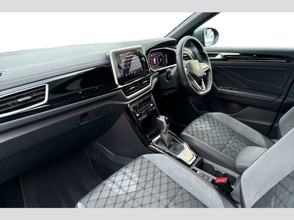 Tilting and Sliding Panoramic Sunroof with Rear Panoramic Sunroof, Front windscreen wiper with intermittent wipe and 4 position delay, Heated rear window, Power windows with comfort operation and circuit breaker, Rain sensor, Rear wash/wipe with intermittent wipe setting, Extended roof spoiler, External USB type C socket and charging sockets, R-Line design body coloured bumpers, Rear exhaust tailpipe, Rear side wing doors, 3rd brake light, Automatic hazard lights activation under emergency braking, Automatic headlight control with LED separate daytime running lights with coming/leaving home function, LED rear combination lamps, LED rear number plate lights, LED tail lamp rear comination lamps, Rear fog light on one side and reversing lights on both sides, ABS, Electronic parking brake, Electronic Stability Control (ESC) inc EDL (Electronic Differential Lock) and ASR (Traction Control), Front assist with city emergency braking and pedestrian monitoring, Hill start assist, Rear disc brakes, Volkswagen roadside assistance, Driver alert system with fatigue detection, Lane keeping system Lane Assist, Modified key software - reduce switch off time for key status change to Long no motion, Park assist including front and rear parking sensors, Auto dimming interior rear view mirror, Exterior mirrors aspherical on driver side, convex on front passenger side, Remote electrically foldable door mirrors, puddle lights and reverse activated passenger's door mirror, 3 point height adj front seatbelts + pretensioners, 3 point seatbelts in outer rear with ECE label, Child locks on rear doors, Driver and front passenger airbag with front passenger airbag deactivation, Driver and front passenger safety-optimised head restraints, Drivers seatbelt reminder, Front and rear passengers curtain airbag system including front side airbags, Front seat side impact airbags, Predictive pedestrian protection, Single tone horn, Tyre pressure loss indicator, Front + rear carpet mats, Air care climatronic air conditoning system with active combination filter and 2-zone temperature control, 12V power socket in centre console, 4 load lashing points in luggage compartment, Black roof lining, Chrome plated radiator grille inserts, air vent surrounds and light switch surrounds, Door and side trim panel with leatherette insert, Drawer under drivers seat, Front centre armrest, Front cupholders x 2, Front scuff plates with R logo, Leather gearshift handle, Load-through provision with cup holder when folded down ('Unsplit rear seat bench, split folding backrest, with centre armrest), Stainless steel pedals, Storage compartment in left and right luggage area, Storage compartment in rear doors, Storage compartments in driver and front passenger doors, Variable boot floor, height adjustable and removable, Front footwell illumination, Front reading light, Instrument lighting, white adjustable panel illumination, Interior ambient lighting and surround lighting, Interior light delay, Luggage compartment lighting, Sunvisors with illuminated vanity mirrors, Bluetooth mobile phone interface, Online services, Wireless app connect, Diversity antenna for FM reception, Music playback - MP3, WMA and AAC files, Premium USB cable in choice of either Apple or Android smartphone compatibility, SD card slot, Simultaneous pairing of 2 compatible mobile devices, Title and cover art display, We Connect and We Connect Plus functionality, Tailgate/trunk lid release from outside, 10.25" Digital cockpit pro, Driver tips and journey analysis, Emergency call service, Service interval indicator, Think blue trainer driver tips and journey analysis, Warning sound and light for front seatbelts unfastened, Battery regeneration during braking, Start/stop function with battery regeneration, Driver assistance pack without proactive passenger protection - T-Roc, 3 rear head restraints, 3 seat bench in 2nd row, Isofix child seat preparation, Single front passenger seat, Anti-theft alarm system with interior monitoring, backup horn, and towing protection, Remote central lock