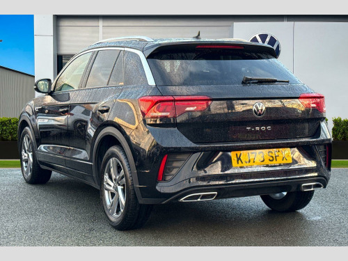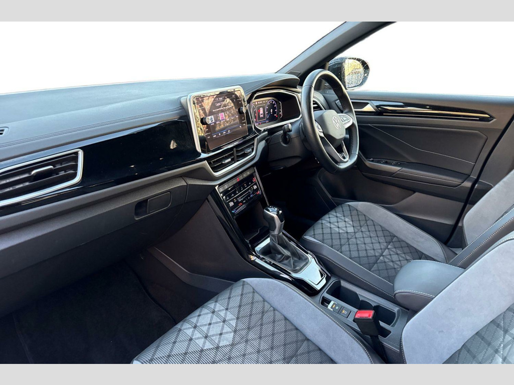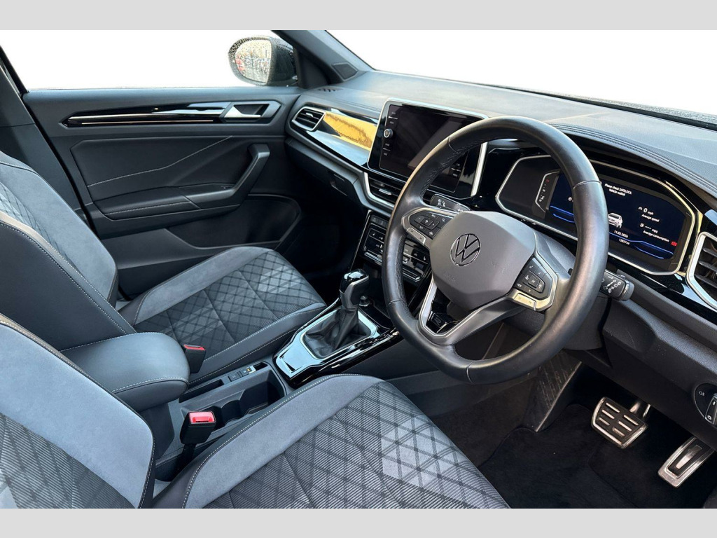 Rear View Camera, Front windscreen wiper with intermittent wipe and 4 position delay, Heated rear window, Power windows with comfort operation and circuit breaker, Rain sensor, Rear wash/wipe with intermittent wipe setting, Extended roof spoiler, External USB type C socket and charging sockets, R-Line design body coloured bumpers, Rear exhaust tailpipe, Rear side wing doors, 3rd brake light, Automatic hazard lights activation under emergency braking, Automatic headlight control with LED separate daytime running lights with coming/leaving home function, LED rear combination lamps, LED rear number plate lights, Rear fog light on one side and reversing lights on both sides, ABS, City emergency braking and pedestrian monitoring, Electronic parking brake, Electronic Stability Control (ESC) inc EDL (Electronic Differential Lock) and ASR (Traction Control), Hill start assist, Rear disc brakes, Volkswagen roadside assistance, Advanced driver attention and drowsiness monitor, Lane keeping system Lane Assist, Modified key software - reduce switch off time for key status change to Long no motion, Park assist including front and rear parking sensors, Auto dimming interior rear view mirror, Electrically adjustable and heated door mirrors, Exterior mirrors aspherical on driver side, convex on front passenger side, Remote electrically foldable door mirrors, puddle lights and reverse activated passenger's door mirror, 3 point height adj front seatbelts + pretensioners, 3 point seatbelts in outer rear with ECE label, Child locks on rear doors, Driver and front passenger airbag with front passenger airbag deactivation, Driver and front passenger safety-optimised head restraints, Drivers seatbelt reminder, Front and rear passengers curtain airbag system including front side airbags, Predictive pedestrian protection, Two tone horn, Tyre pressure loss indicator, Front + rear carpet mats, Air care climatronic air conditoning system with active combination filter and 2-zone temperature control, 12V power socket in centre console, 4 load lashing points in luggage compartment, Black roof lining, Chrome plated radiator grille inserts, air vent surrounds and light switch surrounds, Door and side trim panel with leatherette insert, Front centre armrest, Front cupholders x 2, Front scuff plates with R Line logo, Glove compartment door with light, Leather gearshift handle, Load-through provision with cup holder when folded down ('Unsplit rear seat bench, split folding backrest, with centre armrest), Stainless steel pedals, Storage compartment in left and right luggage area, Storage compartment in rear doors, Storage compartments in driver and front passenger doors, Variable boot floor, height adjustable and removable, Front footwell illumination, Front reading light, Instrument lighting, white adjustable panel illumination, Interior ambient lighting and surround lighting, Interior light delay, Luggage compartment lighting, Sunvisors with illuminated vanity mirrors, Bluetooth mobile phone interface, Online services, Wireless app connect, Diversity antenna for FM reception, Music playback - MP3, WMA and AAC files, Premium USB cable in choice of either Apple or Android smartphone compatibility, SD card slot, Simultaneous pairing of 2 compatible mobile devices, Title and cover art display, We Connect and We Connect Plus functionality, Tailgate/trunk lid release from outside, 10.25" Digital cockpit pro, Emergency call service, Service interval indicator, Think blue trainer driver tips and journey analysis, Warning sound and light for front seatbelts unfastened, Battery regeneration during braking, Start/stop function with battery regeneration, Driver assistance pack without proactive passenger protection - T-Roc, 3 rear head restraints, 3 seat bench in 2nd row, Front seat back storage pockets, Isofix child seat preparation, Single front passenger seat, Anti-theft alarm system with interior monitoring, backup horn, and towing protection, Remote central locking with SAFELOCK, radi