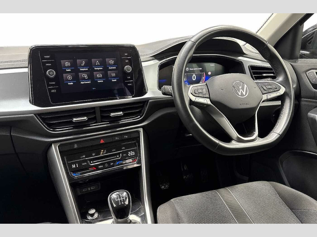 Have a look at this Volkswagen T-Roc Life that is available to purchase at Wrexham Volkswagen. Powering this T-Roc is a 1.5 TSI 150PS engine with manual transmission. The exterior is finished in the Deep Black Pearl paintwork, which is complimented by the 16in Chester alloy wheels to the side. The 'Life' trim on the T-Roc comes with a range of features as standard such as LED headlights that provide exceptional visibility, adaptive cruise control, roof rails, front and rear parking sensors that assist with maneuvering, and a range of driver assistance features.