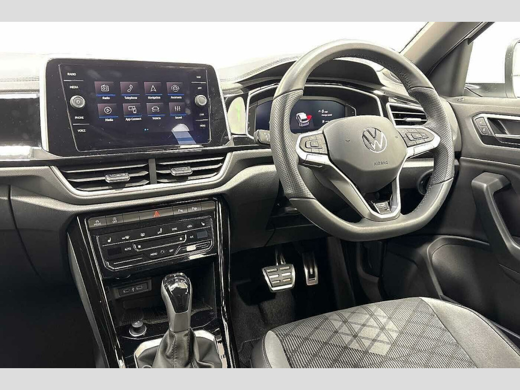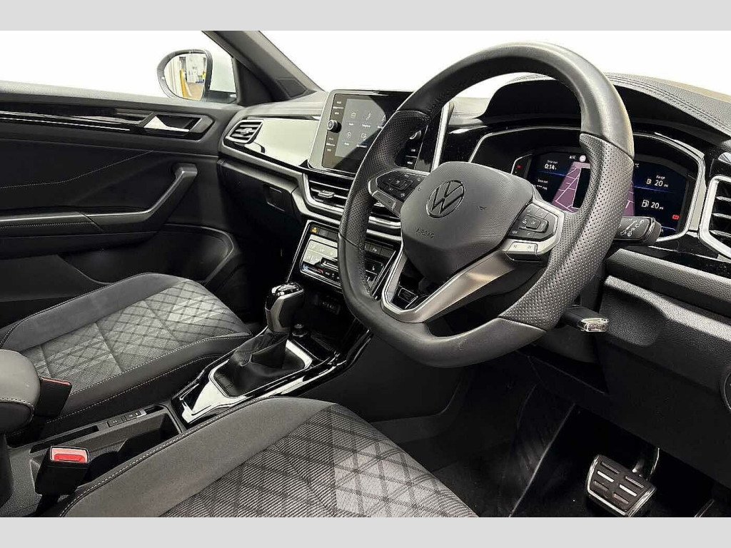 Special solid - Pure white, Art velours microfleece cloth - Soul-Flint Grey/Titanium Black/Black/Titanium Black, Front windscreen wiper with intermittent wipe and 4 position delay, Heated rear window, Power windows with comfort operation and circuit breaker, Privacy glass for rear side windows and rear window, Rain sensor, Rear wash/wipe with intermittent wipe setting, Body coloured exterior mirror housings and door handles, Extended roof spoiler, External USB type C socket and charging sockets, R-Line design body coloured bumpers, Rear exhaust tailpipe, Rear side wing doors, Automatic hazard lights activation under emergency braking, Automatic headlight control with LED separate daytime running lights with coming/leaving home function, LED 3rd brake light, LED rear combination lamps, LED rear number plate lights, Rear fog light on one side and reversing lights on both sides, ABS, City emergency braking and pedestrian monitoring, Electronic parking brake, Electronic Stability Control (ESC) inc EDL (Electronic Differential Lock) and ASR (Traction Control), Hill start assist, Rear disc brakes, Volkswagen roadside assistance, Advanced driver attention and drowsiness monitor, Dynamic road sign display, Lane keeping system Lane Assist, Modified key software - reduce switch off time for key status change to Long no motion, Park assist including front and rear parking sensors, Auto dimming interior rear view mirror, Electrically adjustable and heated door mirrors, Exterior mirrors aspherical on driver side, convex on front passenger side, Remote electrically foldable door mirrors, puddle lights and reverse activated passenger's door mirror, 3 point height adj front seatbelts + pretensioners, 3 point seatbelts in outer rear with ECE label, Child locks on rear doors, Driver and front passenger airbag with front passenger airbag deactivation, Driver and front passenger safety-optimised head restraints, Drivers seatbelt reminder, Front and rear passengers curtain airbag system including front side airbags, Predictive pedestrian protection, Two tone horn, Tyre pressure loss indicator, Front + rear carpet mats, Air care climatronic air conditoning system with active combination filter and 2-zone temperature control, 12V power socket in centre console, 4 load lashing points in luggage compartment, Black roof lining, Chrome plated decorative trims, Chrome plated radiator grille inserts, air vent surrounds and light switch surrounds, Door and side trim panel with leatherette insert, Front centre armrest, Front cupholders x 2, Front scuff plates with R Line logo, Glove compartment door with light, Leather gearshift handle, Load-through provision with cup holder when folded down ('Unsplit rear seat bench, split folding backrest, with centre armrest), Stainless steel pedals, Storage compartment in left and right luggage area, Storage compartment in rear doors, Storage compartments in driver and front passenger doors, Variable boot floor, height adjustable and removable, Front footwell illumination, Front reading light, Instrument lighting, white adjustable panel illumination, Interior ambient lighting and surround lighting, Interior light delay, Luggage compartment lighting, Sunvisors with illuminated vanity mirrors, Mobile phone interface, Online services, Wireless app connect, DAB Digital radio, Diversity antenna for FM reception, Front and rear 6 speakers, Music playback - MP3, WMA and AAC files, Premium USB cable in choice of either Apple or Android smartphone compatibility, SD card slot, Simultaneous pairing of 2 compatible mobile devices, Title and cover art display, We Connect and We Connect Plus functionality, Tailgate/trunk lid release from outside, 10.25" Digital cockpit pro, Emergency call service, Service interval indicator, Think blue trainer driver tips and journey analysis, Warning sound and light for front seatbelts unfastened, Battery regeneration during braking, Start/stop function with battery regeneration, Piano black decorat