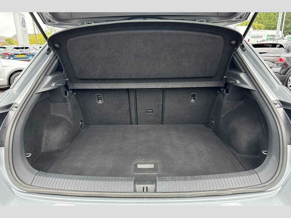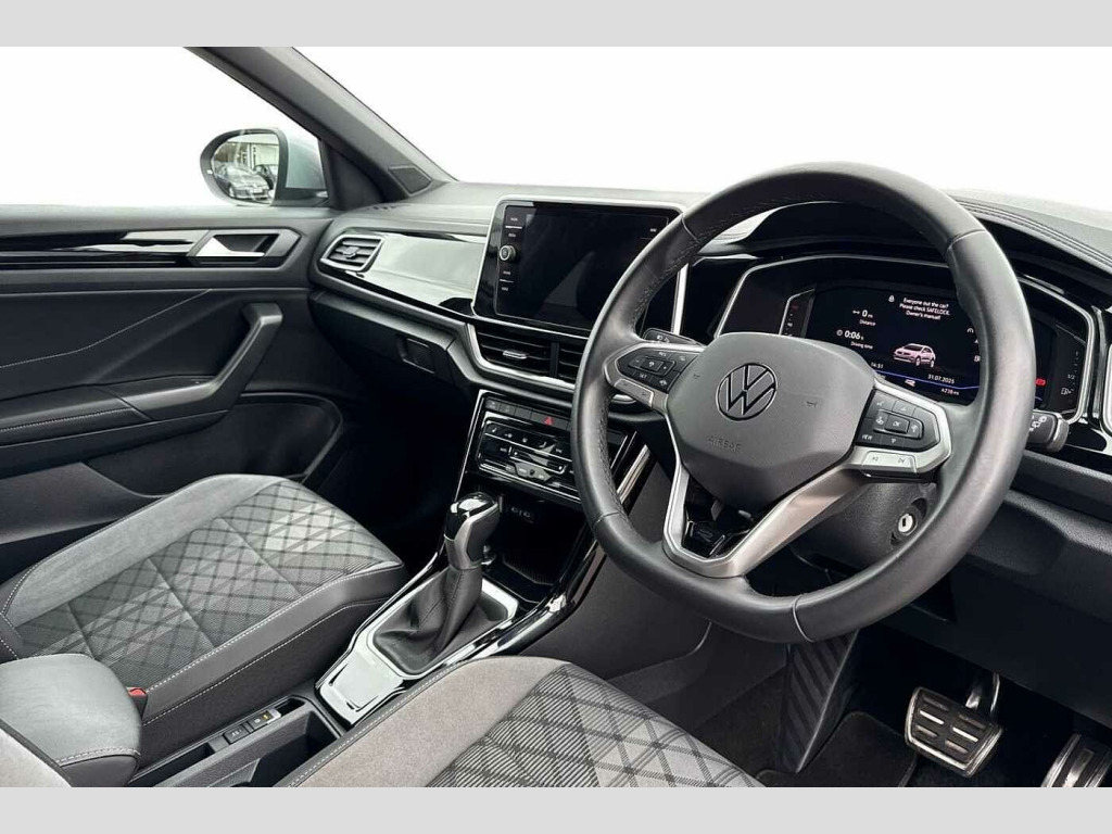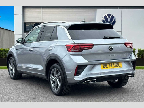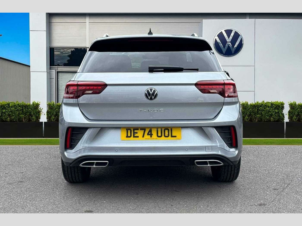Metallic - Pyrite Silver, Art velours microfleece cloth - Soul-Flint Grey/Titanium Black/Black/Titanium Black, Front windscreen wiper with intermittent wipe and 4 position delay, Heated rear window, Power windows with comfort operation and circuit breaker, Rain sensor, Rear wash/wipe with intermittent wipe setting, Extended roof spoiler, External USB type C socket and charging sockets, R-Line design body coloured bumpers, Rear exhaust tailpipe, Rear side wing doors, Automatic hazard lights activation under emergency braking, Automatic headlight control with LED separate daytime running lights with coming/leaving home function, LED 3rd brake light, LED rear combination lamps, LED rear number plate lights, Rear fog light on one side and reversing lights on both sides, ABS, City emergency braking and pedestrian monitoring, Electronic parking brake, Electronic Stability Control (ESC) inc EDL (Electronic Differential Lock) and ASR (Traction Control), Hill start assist, Rear disc brakes, Volkswagen roadside assistance, Advanced driver attention and drowsiness monitor, Dynamic road sign display, Lane keeping system Lane Assist, Modified key software - reduce switch off time for key status change to Long no motion, Park assist including front and rear parking sensors, Auto dimming interior rear view mirror, Electrically adjustable and heated door mirrors, Exterior mirrors aspherical on driver side, convex on front passenger side, Remote electrically foldable door mirrors, puddle lights and reverse activated passenger's door mirror, 3 point height adj front seatbelts + pretensioners, 3 point seatbelts in outer rear with ECE label, Child locks on rear doors, Driver and front passenger airbag with front passenger airbag deactivation, Driver and front passenger safety-optimised head restraints, Drivers seatbelt reminder, Front and rear passengers curtain airbag system including front side airbags, Predictive pedestrian protection, Two tone horn, Tyre pressure loss indicator, Front + rear carpet mats, Air care climatronic air conditoning system with active combination filter and 2-zone temperature control, 12V power socket in centre console, 4 load lashing points in luggage compartment, Black roof lining, Chrome plated radiator grille inserts, air vent surrounds and light switch surrounds, Door and side trim panel with leatherette insert, Front centre armrest, Front cupholders x 2, Front scuff plates with R Line logo, Glove compartment door with light, Leather gearshift handle, Load-through provision with cup holder when folded down ('Unsplit rear seat bench, split folding backrest, with centre armrest), Stainless steel pedals, Storage compartment in left and right luggage area, Storage compartment in rear doors, Storage compartments in driver and front passenger doors, Variable boot floor, height adjustable and removable, Front footwell illumination, Front reading light, Instrument lighting, white adjustable panel illumination, Interior ambient lighting and surround lighting, Interior light delay, Luggage compartment lighting, Sunvisors with illuminated vanity mirrors, Mobile phone interface, Online services, Wireless app connect, Wireless Smartphone charger, DAB Digital radio, Diversity antenna for FM reception, Front and rear 6 speakers, Music playback - MP3, WMA and AAC files, Premium USB cable in choice of either Apple or Android smartphone compatibility, SD card slot, Simultaneous pairing of 2 compatible mobile devices, Title and cover art display, We Connect and We Connect Plus functionality, Tailgate/trunk lid release from outside, 10.25" Digital cockpit pro, Emergency call service, Service interval indicator, Think blue trainer driver tips and journey analysis, Warning sound and light for front seatbelts unfastened, Battery regeneration during braking, Start/stop function with battery regeneration, Driver assistance pack without proactive passenger protection - T-Roc, 3 rear head restraints, 3 seat bench in 2nd row, Front seat bac