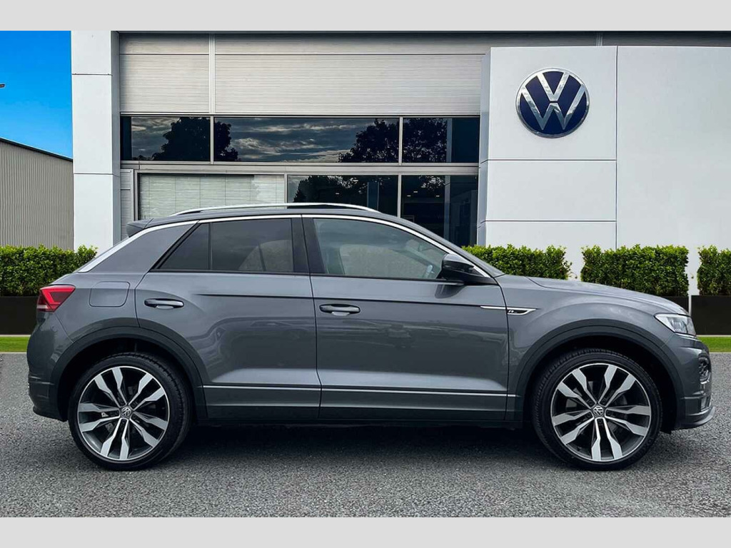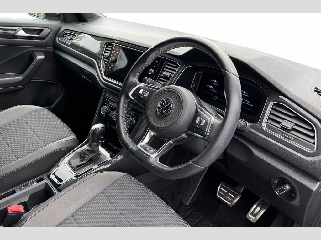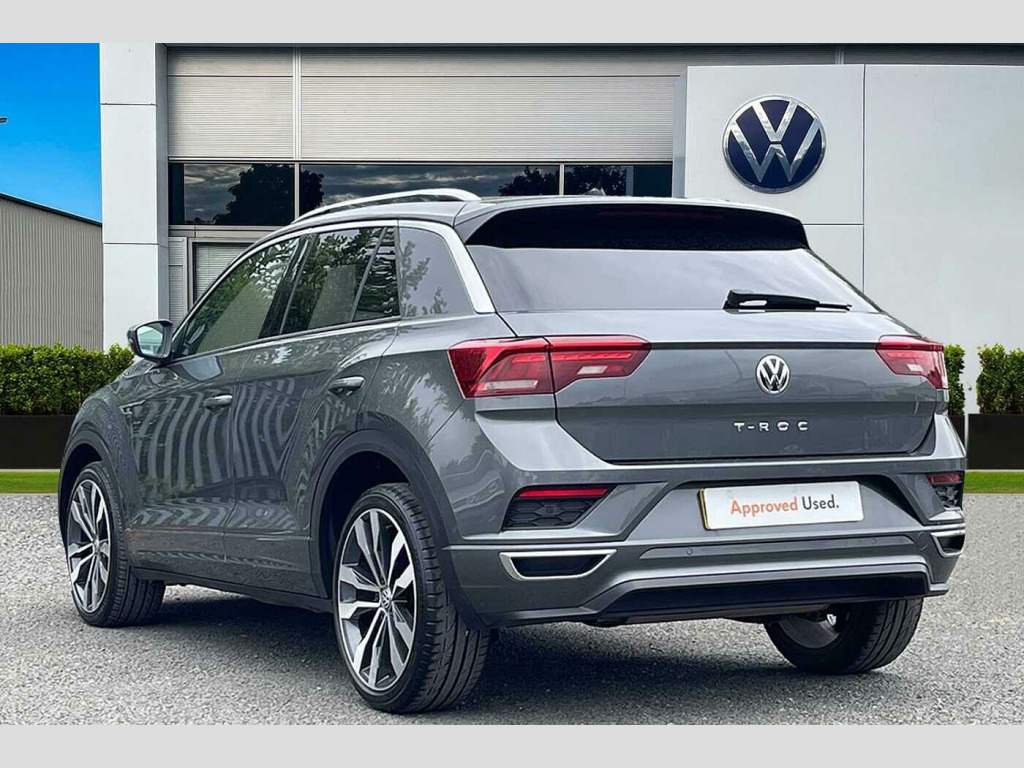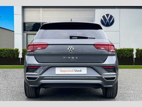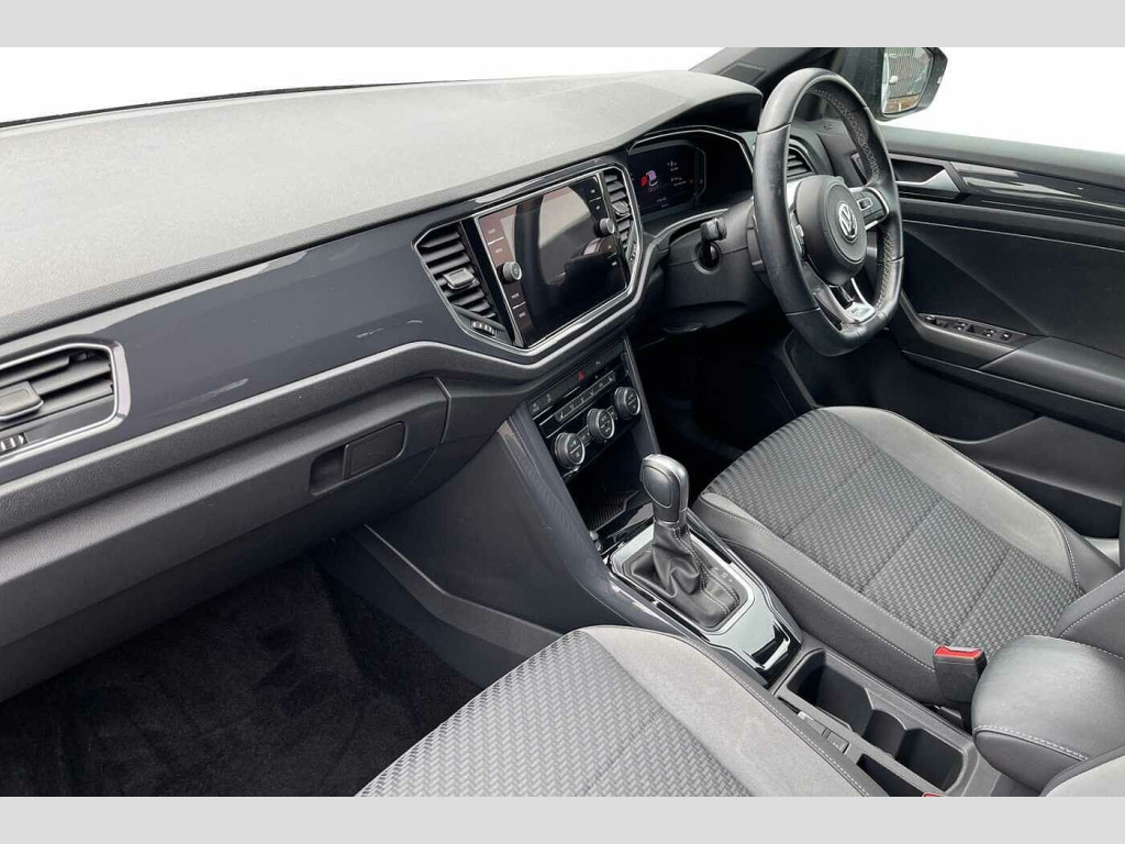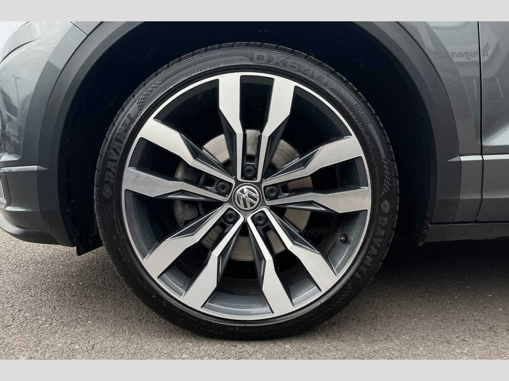 Have a look at this Volkswagen T-Roc R-Line that is available to purchase at Wrexham Volkswagen. Powering this T-ROC is a 2.0 TDI 150PS engine with automatic transmission. The exterior, which is finished in the 'Indium Grey' paintwork, has a range of features on offer. To the front of the car you'll find the automatic headlights that provide exceptional visibility, and to the side the rear tinted windows for passenger privacy and the 19in Suzuka alloy wheels. For added convenience this T-ROC also features roof rails, and front and rear parking sensors that assist with maneuvering.