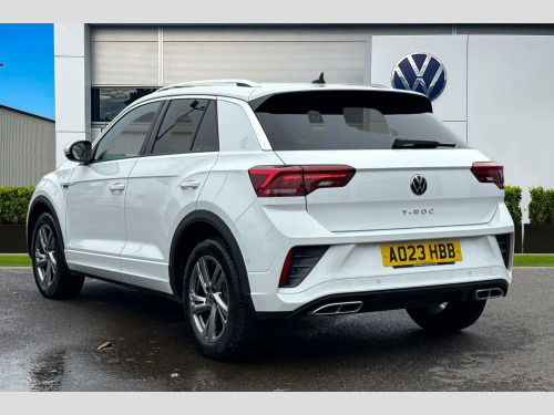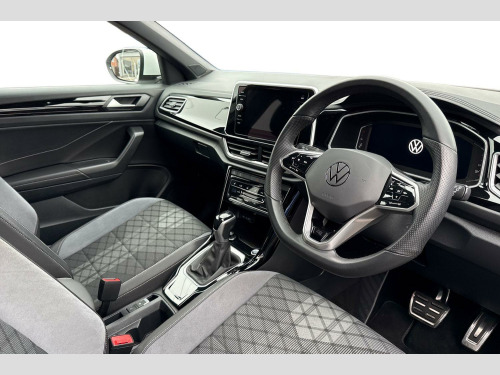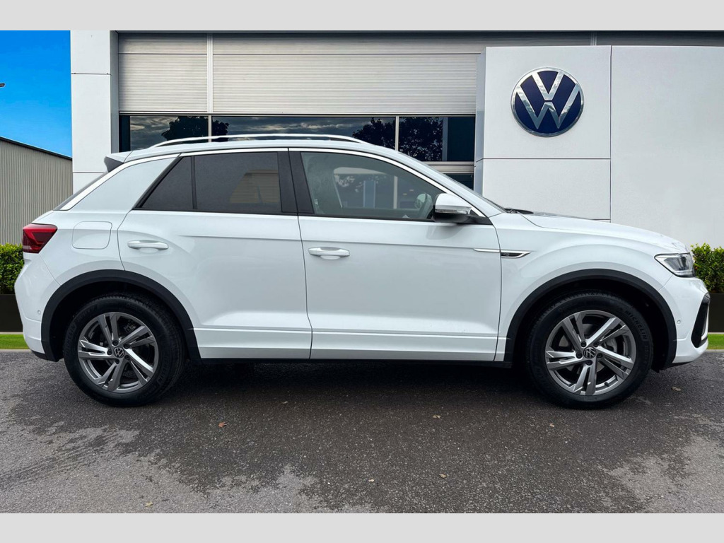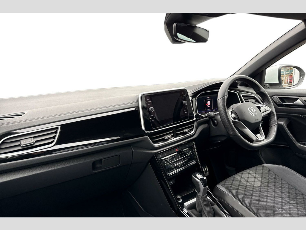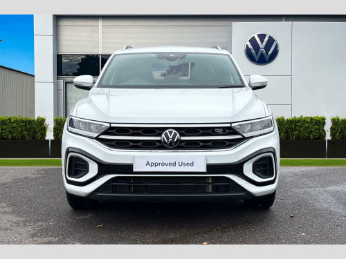 Now available to purchase at Wrexham Volkswagen is this Volkswagen T-Roc R-Line. This T-Roc is powered by a 1.5 TSI 150PS engine with automatic transmission. The exterior, which is finished in a Pure White paintwork, has a range of features available. To the front of the vehicle you'll find the LED headlights that keep the roads well lit, and to the side the rear tinted windows for passenger privacy and the 17in Valencia alloy wheels. For convenience, this T-Roc also features a set of roof rails, keyless entry and starting for quick accessibility, and parking sensors that assist with maneuvering alongside the rear view camera.