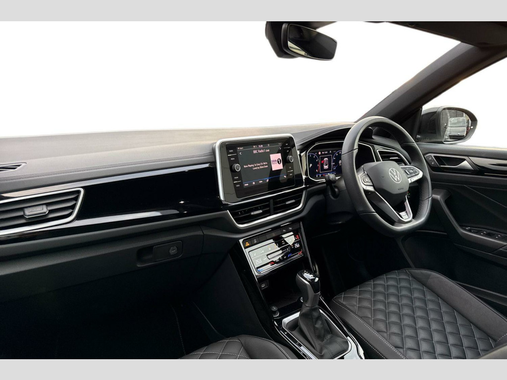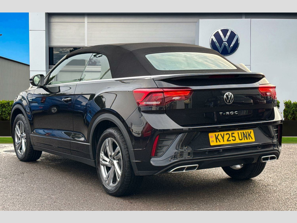 Have a look at this Volkswagen T-ROC Cabriolet R-Line that is available to purchase at Wrexham Volkswagen. Powering this T-ROC is a 1.5 TSI 150PS engine with automatic transmission. The exterior is finished in the 'Deep Black Pearl' paintwork, which is complimented by the 17in Valencia alloy wheels to the side. This T-ROC comes with a range of features on offer such as the LED Performance headlamps that provide exceptional visibility, keyless entry and starting for quick accessibility, parking sensors that assist with maneuvering alongside the rear view camera, and a range of driver assistance systems such as adaptive cruise control and lane assist.