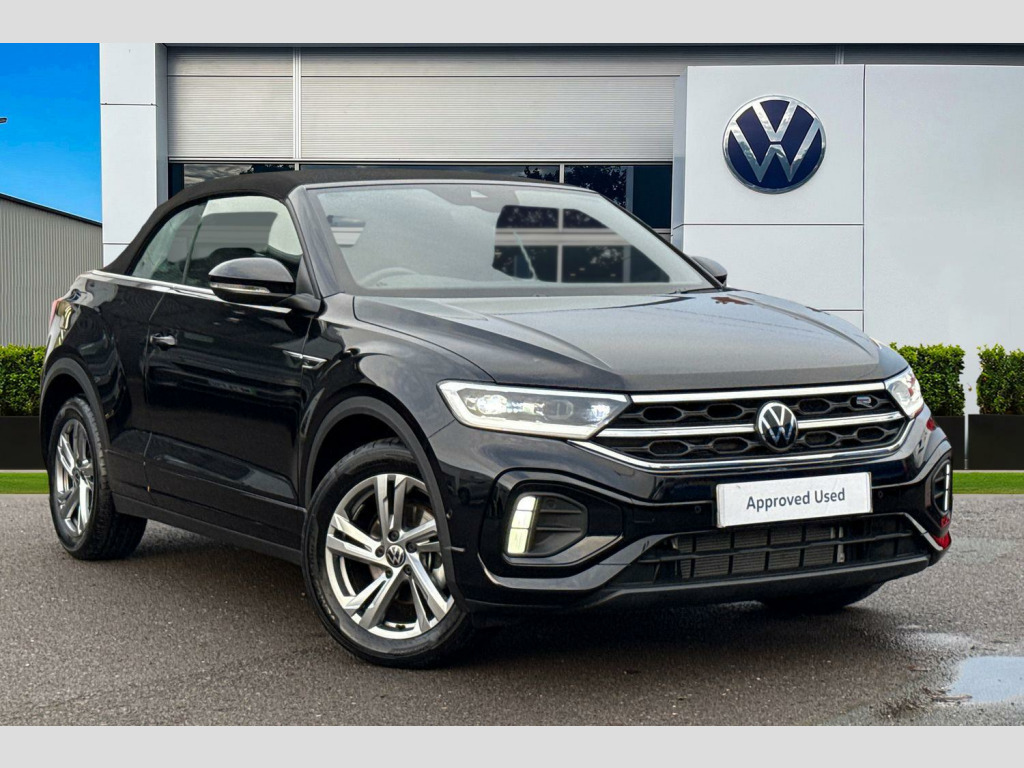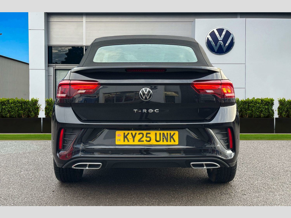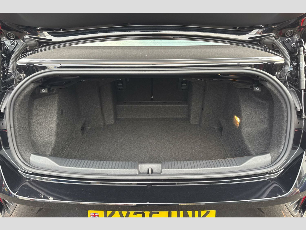 Vienna Leather - Titan Black, Rear View Camera System, Keyless Entry, Wind Deflector, Carbon Flag Cloth - Titan Black-Flint Grey, Wind deflector, Rear view camera, Keyless entry, Pearl - Deep black, Vienna leather pack - Titan black/titanium black when bought with piano black glossy dashboard, Heat insulating glass windscreen, Power windows with comfort operation and circuit breaker, Rain sensor, Windscreen wiper with intermittent wipe light, Black roof, Body colour door handles, Body colour rear boot spoiler, Chrome effect left and right trapezoid exhaust tailpipe fascia surround, Chrome trim on upper and lower radiator grille, Power operated canvas convertible top, R-Line design body coloured bumpers, Rear boot, Rear exhaust tailpipe, Volkswagen roundel, Ambient lighting with logo projection, Automatic hazard lights activation under emergency braking, Automatic headlight control with LED separate daytime running lights with coming/leaving home function, Dark red rear combination lamps in LED technology, Dusk sensor, LED 3rd brake light, LED rear number plate lights, Rear fog light on one side and reversing lights on both sides, Without exterior ambient lighting, Electronic parking brake, Electronic Stability Control (ESC) including ABS, ASR and EDL, Front and rear disc brakes, Front assist with autonomous emergency braking, Volkswagen roadside assistance, Adaptive cruise control and speed limiter, Advanced driver attention and drowsiness monitor, Modified key software - reduce switch off time for key status change to Long no motion, Multifunction front facing camera, Park assist including front and rear parking sensors, Auto dimming interior rear view mirror, Exterior mirrors aspherical on driver side, convex on front passenger side, Remote electrically foldable door mirrors, puddle lights and reverse activated passenger door mirror, 2 x 3-point seatbelts/outer rear seats with ECE label, Driver and front passenger airbag with front passenger airbag deactivation, Driver and front passenger safety-optimised head restraints, Drivers seatbelt reminder, Pedestrian monitoring, Predictive pedestrian protection, Rigid safety cell with front and rear crumple zones, Side airbag/thorax airbag system, for front passengers, Three point height adjust front seatbelts + pretensioners, Two tone horn, Tyre pressure loss indicator, Front and rear carpet mats with black stitching, Air care climatronic air conditoning system with active combination filter and 2-zone temperature control, 12V socket in centre console storage area, Black door lower parts with chrome trim, Chrome plated surround to light, mirror and window switch, Door and side trim panel with leatherette insert, Front centre armrest, Front cupholders x 2, Front door pockets, Heated leather wrapped multi function sports steering wheel with tiptronic, Height/reach adjust steering wheel, Inserts of front seats and outer rear seats in ArtVelours titan black, Lockable glove compartment with light, Stainless steel pedals, Unique R Line door sill protectors, 2 LED front reading lights, Instrument lighting, white adjustable panel illumination, Interior light delay, Interior light in footwell, Interior lighting with switch off delay and contact switches on all doors, Interior white ambient lighting and surround lighting, Luggage compartment lighting, Sun visors with illuminated vanity mirrors, Online services, Diversity antenna for FM reception, Mobile phone interface with inductive charging feature, Music playback - MP3, WMA and AAC files, SMS functionality - read, compose and send SMS messages using touch-screen display, Title and cover art display, USB-C Interface and USB charging socket, We Connect and We Connect Plus functionality, Start/stop system with brake energy recovery, Tailgate/trunk lid release from outside, Brake pad wear indicator, Car information display, Digital Cockpit Pro with 10.25" Display, Driver tips and journey analysis, Emergency call service, Multifunction computer with visual gear change recommendation for fuel consumption, Speedo and rev counter, electronic odometer, trip, service interval