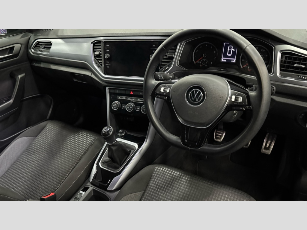 Volkswagen T-Roc 1.0 TSI 110 Active 5dr 'Lights On' Reminder warning buzzer, Adaptive cruise control, Bluetooth telephone and audio connection for compatible devices, Car information display, Driver tips and journey analysis, Electric bootlid, Electric operated opening and closing tailgate, Emergency call service, Lane assist with warning text instrument cluster, Modified key software - reduce switch off time for key status change to Long no motion, Multifunction camera, Multifunction computer with visual gear change recommendation for fuel consumption, Navigation system discover media including streaming and internet, Service interval indicator, Think blue trainer driver tips and journey analysis, Traffic sign recognition, Unique 'Active' logo on B pillar, Warning sound and light for front seatbelts unfastened, Wireless app connect for apple carPlay, Battery regeneration during braking, Start/stop function with battery regeneration, DAB Digital radio, Diversity antenna for FM reception, Music playback - MP3, WMA and AAC files, Premium USB cable in choice of either Apple or Android smartphone compatibility, SD card slot, Simultaneous pairing of 2 compatible mobile devices, Single CD player, glovebox mounted, SMS functionality - read, compose and send SMS messages using touch-screen display, Storage compartment with longitudinal and height adjustable in armrest and two rear air vents, Title and cover art display, USB-C Interface and USB charging socket, Auto dimming interior rear view mirror, Automatic coming/leaving home lighting function and daytime running lights, Automatic hazard lights activation under emergency braking, Black grained lower door protectors, Black grained wheel arches, Body colour door handles, Body coloured bumpers and radiator grille with chrome trim and front fog lamps with chrome bezel, Body coloured door mirrors with integrated indicators, Chrome trim on upper and lower radiator grille, Door sill protectors with special trim design, Dusk sensor, Electrically foldable, adjustable and heated door mirrors with puddle lights and reverse activated kerb-view adjustment on passenger's door mirror, External USB type C socket and charging sockets, Front and rear electric windows, Front fog lights with static cornering function, Front windscreen wiper with intermittent wipe and 4 position delay, Fully galvanised body, Heated rear window, Heated windscreen washer jets, High level 3rd brake light, LED rear number plate lights, LED tail lamp rear comination lamps, Rain sensor, Rear tinted glass from B-pillar backwards approx 65% tinted, Rear wash/wipe with intermittent wipe setting, Volkswagen roundel, 12V socket in centre console storage area, 3 rear head restraints, 4 load lashing points in luggage compartment, Climate control - 2 zone electronic air conditioning with automatic air recirculation and allergy filter, Door and side trim panel, Drawer under drivers seat, Front + rear carpet mats, Front centre armrest, Front comfort seats with manual height adjustment, Front cupholders x 2, Front reading light, Front seat back storage pockets, Glovebox, Heated front seats, Height adjustable front seats, Height/reach adjust steering wheel, Instrument lighting, white adjustable panel illumination, Interior light delay, Isofix easy fit child seat preparation for 2 outer rear seats, Load through provision with single cup holder when folded down, Luggage compartment cover, removable, Luggage compartment lighting, Split folding rear seat backrests with centre armrest, Stainless steel pedals, Storage compartment in left and right luggage area, Storage compartment in rear doors, Storage compartments in driver and front passenger doors, Sunvisors with illuminated vanity mirrors, Trapeze cloth upholstery, 3 rear three point seatbelts, ABS, Curtain airbags, Driver and front passenger safety-optimised head restraints, Drivers and front passengers airbags with passengers deactivation switch, Drivers seatbelt reminder, Electronic parking brake with auto hold, Electronic stability control (ESC) includes ASR, EDL, EDTC and trailer stabilisation function, Front assist with city emergency braking and pedestrian monitoring, Front seat side impact airbags, Predictive pedestrian protection, Rigid safety cell with front and rear crumple zones, Single tone horn, Three point height adjust front seatbelts + pretensioners, Tyre pressure loss indicator, Ventilated front and rear disc brakes, Volkswagen roadside assistance, Alarm with remote central locking and interior protection, Electronic engine immobiliser, Remote central locking with SAFELOCK, radio remote control with 2 remote control folding keys, Decorative inserts in for special trims, 17" Galway alloy wheels with super low rolling resistance tyres and anti theft wheel bolts