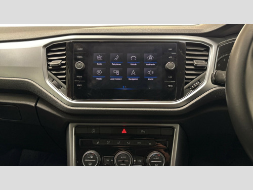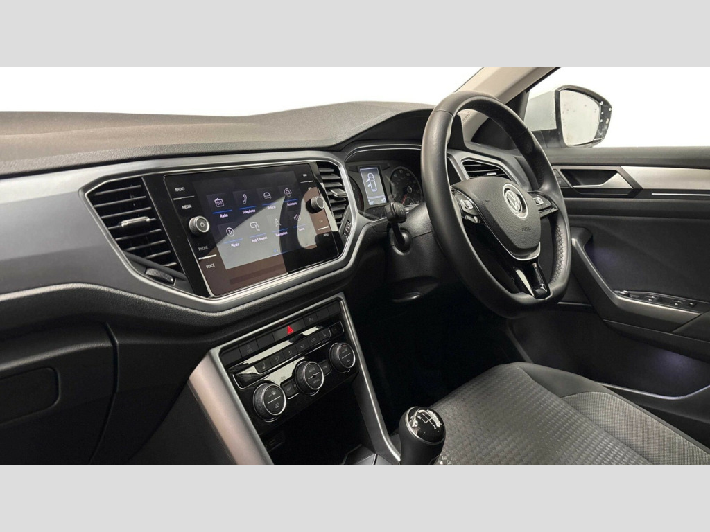 Volkswagen T-Roc 1.0 TSI 110 Active 5dr 'Lights On' Reminder warning buzzer, Adaptive cruise control, Bluetooth telephone and audio connection for compatible devices, Car information display, Driver tips and journey analysis, Electric bootlid, Electric operated opening and closing tailgate, Emergency call service, Lane assist with warning text instrument cluster, Modified key software - reduce switch off time for key status change to Long no motion, Multifunction camera, Multifunction computer with visual gear change recommendation for fuel consumption, Navigation system discover media including streaming and internet, Service interval indicator, Think blue trainer driver tips and journey analysis, Traffic sign recognition, Unique 'Active' logo on B pillar, Warning sound and light for front seatbelts unfastened, Wireless app connect for apple carPlay, Battery regeneration during braking, Start/stop function with battery regeneration, DAB Digital radio, Diversity antenna for FM reception, Music playback - MP3, WMA and AAC files, Premium USB cable in choice of either Apple or Android smartphone compatibility, SD card slot, Simultaneous pairing of 2 compatible mobile devices, Single CD player, glovebox mounted, SMS functionality - read, compose and send SMS messages using touch-screen display, Storage compartment with longitudinal and height adjustable in armrest and two rear air vents, Title and cover art display, USB-C Interface and USB charging socket, Auto dimming interior rear view mirror, Automatic coming/leaving home lighting function and daytime running lights, Automatic hazard lights activation under emergency braking, Black grained lower door protectors, Black grained wheel arches, Body colour door handles, Body coloured bumpers and radiator grille with chrome trim and front fog lamps with chrome bezel, Body coloured door mirrors with integrated indicators, Chrome trim on upper and lower radiator grille, Door sill protectors with special trim design, Dusk sensor, Electrically foldable, adjustable and heated door mirrors with puddle lights and reverse activated kerb-view adjustment on passenger's door mirror, External USB type C socket and charging sockets, Front and rear electric windows, Front fog lights with static cornering function, Front windscreen wiper with intermittent wipe and 4 position delay, Fully galvanised body, Heated rear window, Heated windscreen washer jets, High level 3rd brake light, LED rear number plate lights, LED tail lamp rear comination lamps, Rain sensor, Rear tinted glass from B-pillar backwards approx 65% tinted, Rear wash/wipe with intermittent wipe setting, Volkswagen roundel, 12V socket in centre console storage area, 3 rear head restraints, 4 load lashing points in luggage compartment, Climate control - 2 zone electronic air conditioning with automatic air recirculation and allergy filter, Door and side trim panel, Drawer under drivers seat, Front + rear carpet mats, Front centre armrest, Front comfort seats with manual height adjustment, Front cupholders x 2, Front reading light, Front seat back storage pockets, Glovebox, Heated front seats, Height adjustable front seats, Height/reach adjust steering wheel, Instrument lighting, white adjustable panel illumination, Interior light delay, Isofix easy fit child seat preparation for 2 outer rear seats, Load through provision with single cup holder when folded down, Luggage compartment cover, removable, Luggage compartment lighting, Split folding rear seat backrests with centre armrest, Stainless steel pedals, Storage compartment in left and right luggage area, Storage compartment in rear doors, Storage compartments in driver and front passenger doors, Sunvisors with illuminated vanity mirrors, Trapeze cloth upholstery, 3 rear three point seatbelts, ABS, Curtain airbags, Driver and front passenger safety-optimised head restraints, Drivers and front passengers airbags with passengers deactivation switch, Drivers seatbelt reminder, Electronic parking brake with auto hold, Electronic stability control (ESC) includes ASR, EDL, EDTC and trailer stabilisation function, Front assist with city emergency braking and pedestrian monitoring, Front seat side impact airbags, Predictive pedestrian protection, Rigid safety cell with front and rear crumple zones, Single tone horn, Three point height adjust front seatbelts + pretensioners, Tyre pressure loss indicator, Ventilated front and rear disc brakes, Volkswagen roadside assistance, Alarm with remote central locking and interior protection, Electronic engine immobiliser, Remote central locking with SAFELOCK, radio remote control with 2 remote control folding keys, Decorative inserts in for special trims, 17" Galway alloy wheels with super low rolling resistance tyres and anti theft wheel bolts