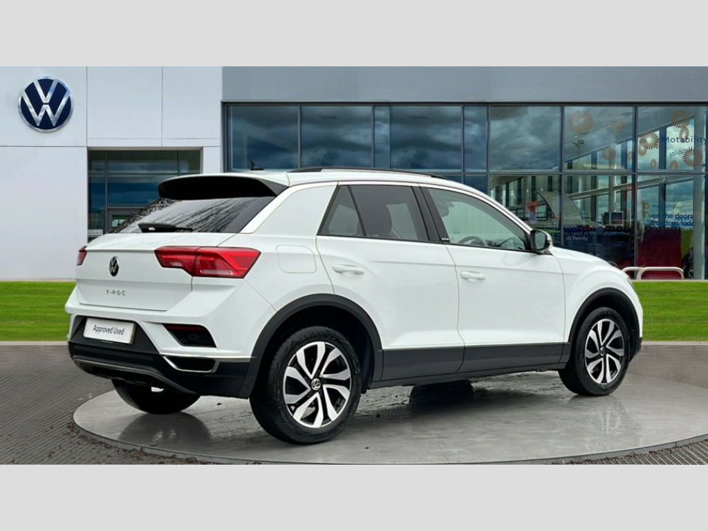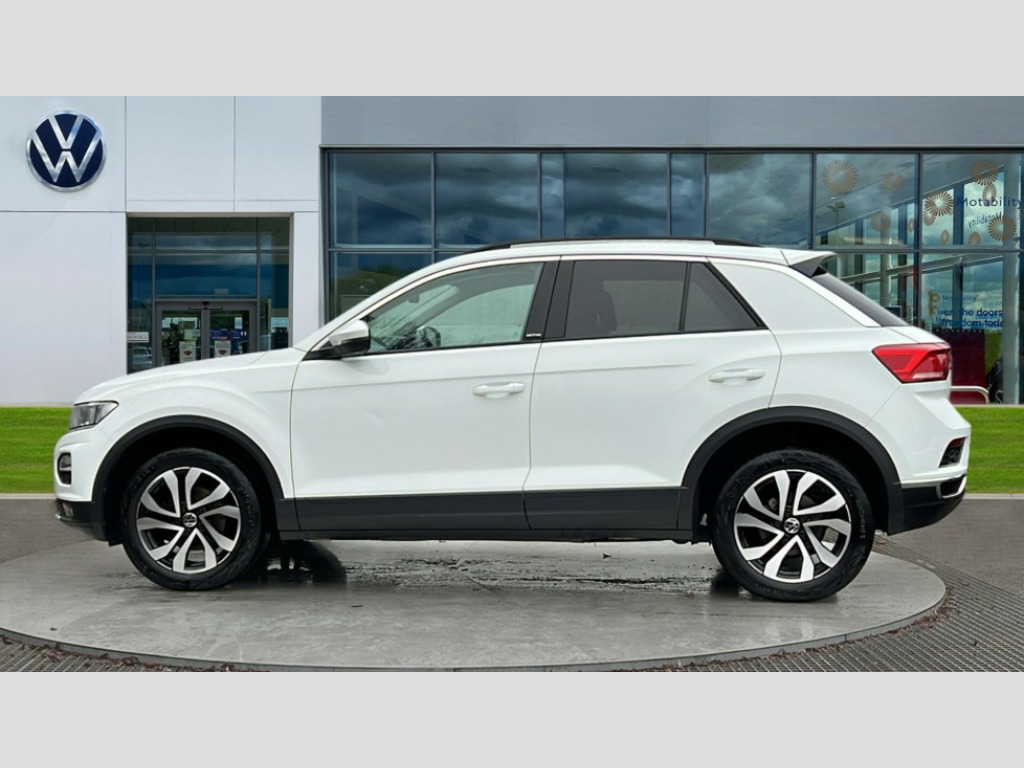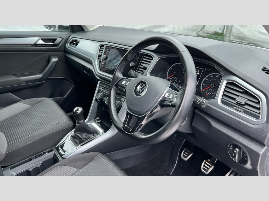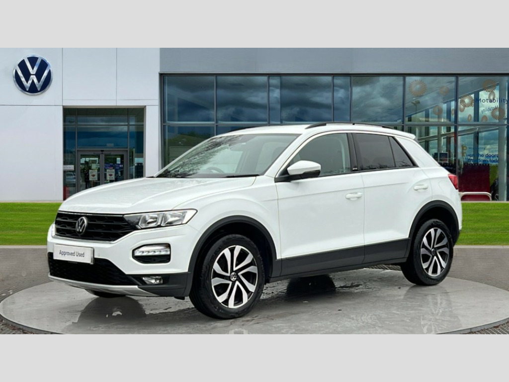 Volkswagen T-Roc 1.0 TSI 110 Active 5dr 'Lights On' Reminder warning buzzer, Adaptive cruise control, Bluetooth telephone and audio connection for compatible devices, Car information display, Driver tips and journey analysis, Electric bootlid, Electric operated opening and closing tailgate, Emergency call service, Lane assist with warning text instrument cluster, Modified key software - reduce switch off time for key status change to Long no motion, Multifunction camera, Multifunction computer with visual gear change recommendation for fuel consumption, Navigation system discover media including streaming and internet, Service interval indicator, Think blue trainer driver tips and journey analysis, Traffic sign recognition, Unique 'Active' logo on B pillar, Warning sound and light for front seatbelts unfastened, Wireless app connect for apple carPlay, Battery regeneration during braking, Start/stop function with battery regeneration, DAB Digital radio, Diversity antenna for FM reception, Music playback - MP3, WMA and AAC files, Premium USB cable in choice of either Apple or Android smartphone compatibility, SD card slot, Simultaneous pairing of 2 compatible mobile devices, Single CD player, glovebox mounted, SMS functionality - read, compose and send SMS messages using touch-screen display, Storage compartment with longitudinal and height adjustable in armrest and two rear air vents, Title and cover art display, USB-C Interface and USB charging socket, Auto dimming interior rear view mirror, Automatic coming/leaving home lighting function and daytime running lights, Automatic hazard lights activation under emergency braking, Black grained lower door protectors, Black grained wheel arches, Body colour door handles, Body coloured bumpers and radiator grille with chrome trim and front fog lamps with chrome bezel, Body coloured door mirrors with integrated indicators, Chrome trim on upper and lower radiator grille, Door sill protectors with special trim design, Dusk sensor, Electrically foldable, adjustable and heated door mirrors with puddle lights and reverse activated kerb-view adjustment on passenger's door mirror, External USB type C socket and charging sockets, Front and rear electric windows, Front fog lights with static cornering function, Front windscreen wiper with intermittent wipe and 4 position delay, Fully galvanised body, Heated rear window, Heated windscreen washer jets, High level 3rd brake light, LED rear number plate lights, LED tail lamp rear comination lamps, Rain sensor, Rear tinted glass from B-pillar backwards approx 65% tinted, Rear wash/wipe with intermittent wipe setting, Volkswagen roundel, 12V socket in centre console storage area, 3 rear head restraints, 4 load lashing points in luggage compartment, Climate control - 2 zone electronic air conditioning with automatic air recirculation and allergy filter, Door and side trim panel, Drawer under drivers seat, Front + rear carpet mats, Front centre armrest, Front comfort seats with manual height adjustment, Front cupholders x 2, Front reading light, Front seat back storage pockets, Glovebox, Heated front seats, Height adjustable front seats, Height/reach adjust steering wheel, Instrument lighting, white adjustable panel illumination, Interior light delay, Isofix easy fit child seat preparation for 2 outer rear seats, Load through provision with single cup holder when folded down, Luggage compartment cover, removable, Luggage compartment lighting, Split folding rear seat backrests with centre armrest, Stainless steel pedals, Storage compartment in left and right luggage area, Storage compartment in rear doors, Storage compartments in driver and front passenger doors, Sunvisors with illuminated vanity mirrors, Trapeze cloth upholstery, 3 rear three point seatbelts, ABS, Curtain airbags, Driver and front passenger safety-optimised head restraints, Drivers and front passengers airbags with passengers deactivation switch, Drivers seatbelt reminder, Electronic parking brake with auto hold, Electronic stability control (ESC) includes ASR, EDL, EDTC and trailer stabilisation function, Front assist with city emergency braking and pedestrian monitoring, Front seat side impact airbags, Predictive pedestrian protection, Rigid safety cell with front and rear crumple zones, Single tone horn, Three point height adjust front seatbelts + pretensioners, Tyre pressure loss indicator, Ventilated front and rear disc brakes, Volkswagen roadside assistance, Alarm with remote central locking and interior protection, Electronic engine immobiliser, Remote central locking with SAFELOCK, radio remote control with 2 remote control folding keys, Decorative inserts in for special trims, 17" Galway alloy wheels with super low rolling resistance tyres and anti theft wheel bolts