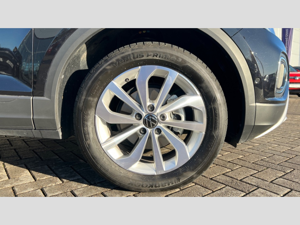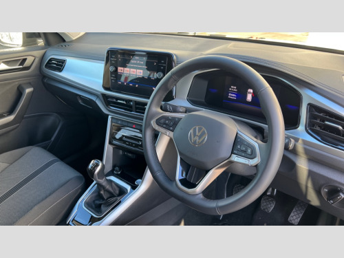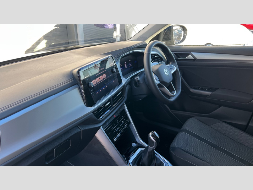 Volkswagen T-Roc 1.0 TSI 115 Match 5dr Advanced driver attention and drowsiness monitor, Dynamic road sign display, Emergency call service, Lane keeping system Lane Assist, Mobile phone interface, Modified key software - reduce switch off time for key status change to Long no motion, Online services, Park assist including front and rear parking sensors, Power assisted speed sensitive steering, Rear view camera, Service interval indicator, Tailgate/trunk lid release from outside, Think blue trainer driver tips and journey analysis, Warning sound and light for front seatbelts unfastened, Wireless app connect, Battery regeneration during braking, Front shock absorption, Rear shock absorption chassis with increased ride height, Start/stop function with battery regeneration, DAB Digital radio, Diversity antenna for FM reception, Music playback - MP3, WMA and AAC files, Premium USB cable in choice of either Apple or Android smartphone compatibility, SD card slot, Simultaneous pairing of 2 compatible mobile devices, Title and cover art display, We Connect and We Connect Plus functionality, Auto dimming interior rear view mirror, Automatic hazard lights activation under emergency braking, Automatic headlight control with LED separate daytime running lights with coming/leaving home function, Black roof rails, Body coloured bumpers and radiator grille with chrome trim and front fog lamps with chrome bezel, Body coloured exterior mirror housings and door handles, Electrically adjustable and heated door mirrors, Extended roof spoiler, Exterior mirrors aspherical on driver side, convex on front passenger side, External USB type C socket and charging sockets, Front windscreen wiper with intermittent wipe and 4 position delay, Heated rear window, LED 3rd brake light, LED rear combination lamps, LED rear number plate lights, Power windows with comfort operation and circuit breaker, Privacy glass for rear side windows and rear window, Rain sensor, Rear exhaust tailpipe, Rear fog light on one side and reversing lights on both sides, Rear side wing doors, Rear wash/wipe with intermittent wipe setting, Remote electrically foldable door mirrors, puddle lights and reverse activated passenger's door mirror, 12V power socket in centre console, 3 rear head restraints, 3 seat bench in 2nd row, 4 load lashing points in luggage compartment, Air care climatronic air conditoning system with active combination filter and 2-zone temperature control, Black stitching for floor mats, Ceramique roof liner, Cloth upholstery, Door and side trim panel in cloth, Drawer under drivers seat, Driver/front passenger seat height adjustment, Front centre armrest, Front comfort sports seats, Front cupholders x 2, Front reading light, Front seat back storage pockets, Glove compartment door with light, Instrument lighting, white adjustable panel illumination, Interior ambient lighting and surround lighting, Interior light delay, Isofix child seat preparation, Leather gearshift handle, Load-through provision with cup holder when folded down ('Unsplit rear seat bench, split folding backrest, with centre armrest), Luggage compartment lighting, Lumbar support for driver's and front passengers seat, Non-folding front passenger seat backrest, Single front passenger seat, Storage compartment in left and right luggage area, Storage compartment in rear doors, Storage compartments in driver and front passenger doors, Sunvisors with illuminated vanity mirrors, Variable boot floor, height adjustable and removable, Driver assistance pack without proactive passenger protection - T-Roc Life/Match, 3 point height adj front seatbelts + pretensioners, 3 point seatbelts in outer rear with ECE label, ABS, Child locks on rear doors, City emergency braking and pedestrian monitoring, Driver and front passenger airbag with front passenger airbag deactivation, Driver and front passenger safety-optimised head restraints, Drivers seatbelt reminder, Electronic parking brake, Electronic Stability Control (ESC) inc EDL (Electronic Differential Lock) and ASR (Traction Control), Front and rear passengers curtain airbag system including front side airbags, Front disc brakes, Hill start assist, Predictive pedestrian protection, Rear disc brakes, Two tone horn, Tyre pressure loss indicator, Volkswagen roadside assistance, Alarm with interior protection, Keyless locking and starting system keyless access with safelock, Pewter matt decorative inserts for intrument panel, centre console and door panels at the front, Trims for alloy wheels