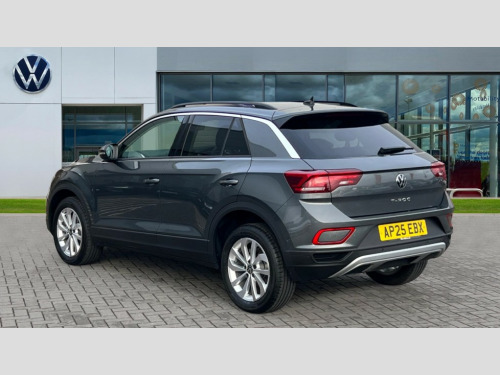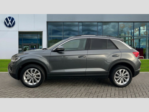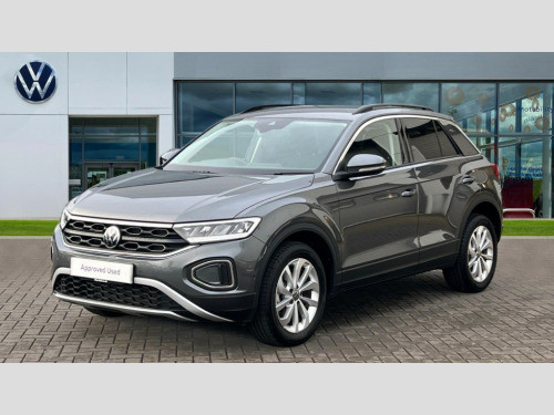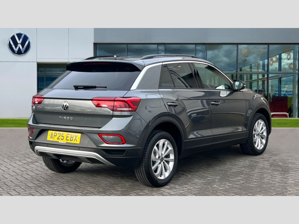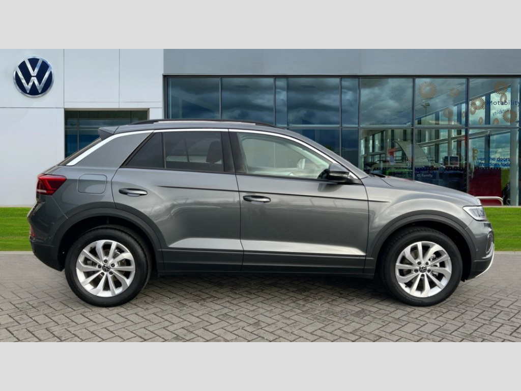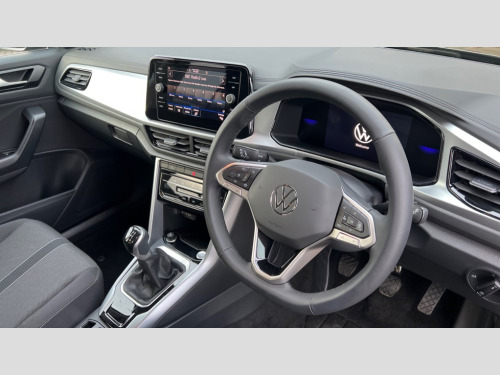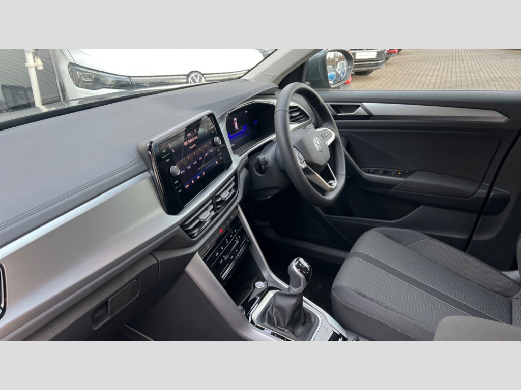 Volkswagen T-Roc 1.0 TSI 115 Match 5dr Advanced driver attention and drowsiness monitor, Dynamic road sign display, Emergency call service, Lane keeping system Lane Assist, Mobile phone interface, Modified key software - reduce switch off time for key status change to Long no motion, Online services, Park assist including front and rear parking sensors, Power assisted speed sensitive steering, Rear view camera, Service interval indicator, Tailgate/trunk lid release from outside, Think blue trainer driver tips and journey analysis, Warning sound and light for front seatbelts unfastened, Wireless app connect, Battery regeneration during braking, Front shock absorption, Rear shock absorption chassis with increased ride height, Start/stop function with battery regeneration, DAB Digital radio, Diversity antenna for FM reception, Music playback - MP3, WMA and AAC files, Premium USB cable in choice of either Apple or Android smartphone compatibility, SD card slot, Simultaneous pairing of 2 compatible mobile devices, Title and cover art display, We Connect and We Connect Plus functionality, Auto dimming interior rear view mirror, Automatic hazard lights activation under emergency braking, Automatic headlight control with LED separate daytime running lights with coming/leaving home function, Black roof rails, Body coloured bumpers and radiator grille with chrome trim and front fog lamps with chrome bezel, Body coloured exterior mirror housings and door handles, Electrically adjustable and heated door mirrors, Extended roof spoiler, Exterior mirrors aspherical on driver side, convex on front passenger side, External USB type C socket and charging sockets, Front windscreen wiper with intermittent wipe and 4 position delay, Heated rear window, LED 3rd brake light, LED rear combination lamps, LED rear number plate lights, Power windows with comfort operation and circuit breaker, Privacy glass for rear side windows and rear window, Rain sensor, Rear exhaust tailpipe, Rear fog light on one side and reversing lights on both sides, Rear side wing doors, Rear wash/wipe with intermittent wipe setting, Remote electrically foldable door mirrors, puddle lights and reverse activated passenger's door mirror, 12V power socket in centre console, 3 rear head restraints, 3 seat bench in 2nd row, 4 load lashing points in luggage compartment, Air care climatronic air conditoning system with active combination filter and 2-zone temperature control, Black stitching for floor mats, Ceramique roof liner, Cloth upholstery, Door and side trim panel in cloth, Drawer under drivers seat, Driver/front passenger seat height adjustment, Front centre armrest, Front comfort sports seats, Front cupholders x 2, Front reading light, Front seat back storage pockets, Glove compartment door with light, Instrument lighting, white adjustable panel illumination, Interior ambient lighting and surround lighting, Interior light delay, Isofix child seat preparation, Leather gearshift handle, Load-through provision with cup holder when folded down ('Unsplit rear seat bench, split folding backrest, with centre armrest), Luggage compartment lighting, Lumbar support for driver's and front passengers seat, Non-folding front passenger seat backrest, Single front passenger seat, Storage compartment in left and right luggage area, Storage compartment in rear doors, Storage compartments in driver and front passenger doors, Sunvisors with illuminated vanity mirrors, Variable boot floor, height adjustable and removable, Driver assistance pack without proactive passenger protection - T-Roc Life/Match, 3 point height adj front seatbelts + pretensioners, 3 point seatbelts in outer rear with ECE label, ABS, Child locks on rear doors, City emergency braking and pedestrian monitoring, Driver and front passenger airbag with front passenger airbag deactivation, Driver and front passenger safety-optimised head restraints, Drivers seatbelt reminder, Electronic parking brake, Electronic Stability Control (ESC) inc EDL (Electronic Differential Lock) and ASR (Traction Control), Front and rear passengers curtain airbag system including front side airbags, Front disc brakes, Hill start assist, Predictive pedestrian protection, Rear disc brakes, Two tone horn, Tyre pressure loss indicator, Volkswagen roadside assistance, Alarm with interior protection, Keyless locking and starting system keyless access with safelock, Pewter matt decorative inserts for intrument panel, centre console and door panels at the front, Trims for alloy wheels