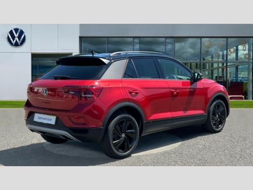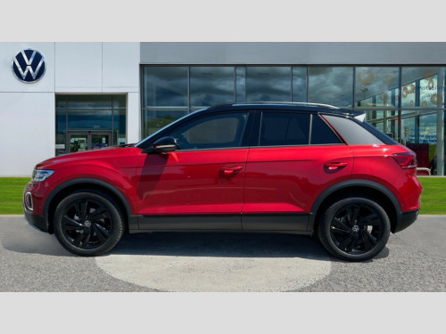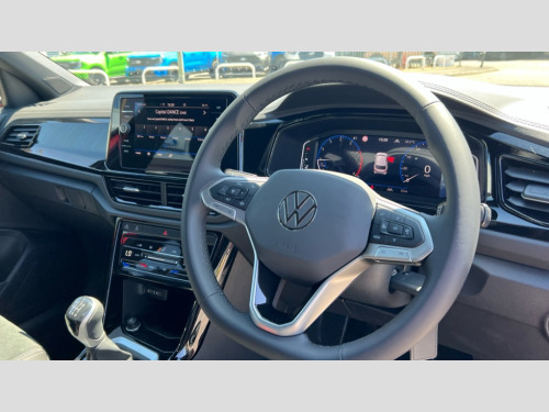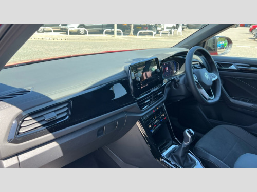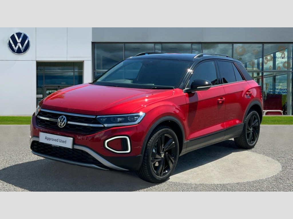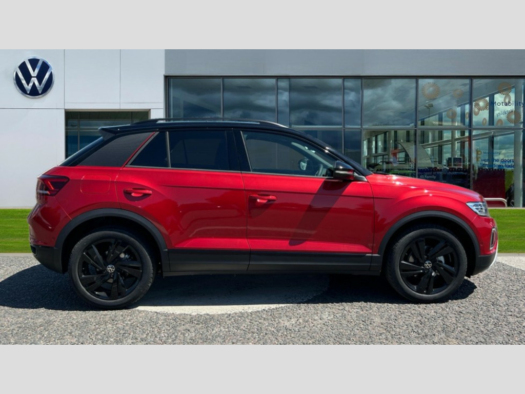 Volkswagen T-Roc 1.0 TSI 115 Style 5dr 10.25" Digital cockpit pro, Advanced driver attention and drowsiness monitor, Emergency call service, Lane keeping system Lane Assist, Mobile phone interface, Modified key software - reduce switch off time for key status change to Long no motion, Online services, Park assist including front and rear parking sensors, Power assisted speed sensitive steering, Service interval indicator, Tailgate/trunk lid release from outside, Think blue trainer driver tips and journey analysis, Warning sound and light for front seatbelts unfastened, Wireless app connect, Battery regeneration during braking, Start/stop function with battery regeneration, DAB Digital radio, Diversity antenna for FM reception, Front and rear 6 speakers, Music playback - MP3, WMA and AAC files, SD card slot, Simultaneous pairing of 2 compatible mobile devices, Title and cover art display, We Connect and We Connect Plus functionality, Auto dimming interior rear view mirror, Automatic hazard lights activation under emergency braking, Automatic headlight control with LED separate daytime running lights with coming/leaving home function, Body colour sports bumpers with silver metallic underbody fascia, Body coloured exterior mirror housings and door handles, Dynamic headlight range control with self adjusting whilst driving, Electrically adjustable and heated door mirrors, Extended roof spoiler, Exterior mirrors aspherical on driver side, convex on front passenger side, External USB type C socket and charging sockets, Front windscreen wiper with intermittent wipe and 4 position delay, Heated rear window, LED 3rd brake light, LED rear combination lamps, LED rear number plate lights, Light mode for poor weather, rain, fog or snow, Power windows with comfort operation and circuit breaker, Privacy glass for rear side windows and rear window, Rain sensor, Rear exhaust tailpipe, Rear fog light on one side and reversing lights on both sides, Rear side wing doors, Rear wash/wipe with intermittent wipe setting, Remote electrically foldable door mirrors, puddle lights and reverse activated passenger's door mirror, 12V power socket in centre console, 3 rear head restraints, 3 seat bench in 2nd row, 4 load lashing points in luggage compartment, Air care climatronic air conditoning system with active combination filter and 2-zone temperature control, Chrome plated radiator grille inserts, air vent surrounds and light switch surrounds, Door and side trim panel with leatherette insert, Drawer under drivers seat, Front + rear carpet mats, Front centre armrest, Front comfort sports seats, Front cupholders x 2, Front footwell illumination, Front seat back storage pockets, Glove compartment door with light, Instrument lighting, white adjustable panel illumination, Interior ambient lighting and surround lighting, Interior light delay, Isofix child seat preparation, Leather gearshift handle, LED interior light with switch off delay/dimmer and 2 front/rear LED reading lights, Load-through provision with cup holder when folded down ('Unsplit rear seat bench, split folding backrest, with centre armrest), Luggage compartment lighting, Non-folding front passenger seat backrest, Single front passenger seat, Storage compartment in left and right luggage area, Storage compartment in rear doors, Storage compartments in driver and front passenger doors, Sunvisors with illuminated vanity mirrors, Variable boot floor, height adjustable and removable, Driver assistance pack without proactive passenger protection - T-Roc, 3 point height adj front seatbelts + pretensioners, 3 point seatbelts in outer rear with ECE label, ABS, Child locks on rear doors, City emergency braking and pedestrian monitoring, Driver and front passenger airbag with front passenger airbag deactivation, Driver and front passenger safety-optimised head restraints, Drivers seatbelt reminder, Electronic parking brake, Electronic Stability Control (ESC) inc EDL (Electronic Differential Lock) and ASR (Traction Control), Front and rear passengers curtain airbag system including front side airbags, Predictive pedestrian protection, Rear disc brakes, Two tone horn, Tyre pressure loss indicator, Volkswagen roadside assistance, Deep iron grey decorative inserts in dashboard, centre console and front door trim panels, Trims for alloy wheels
