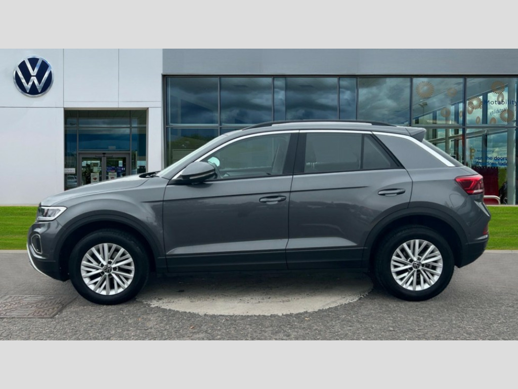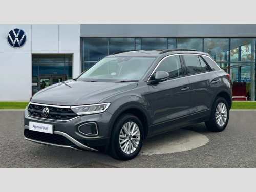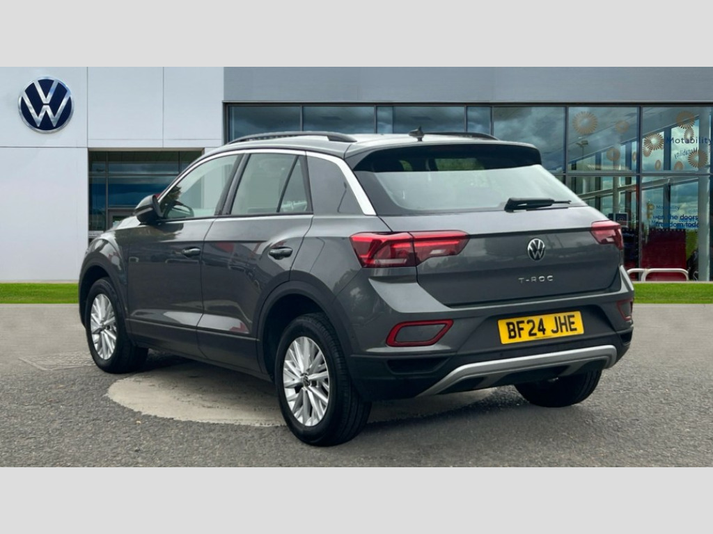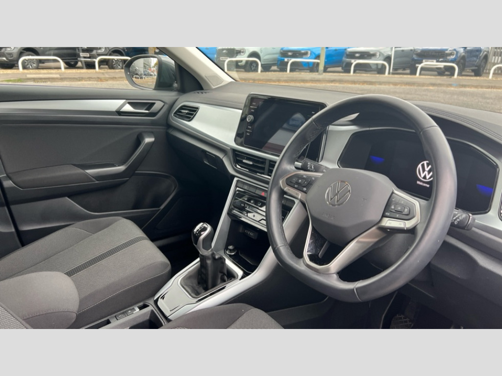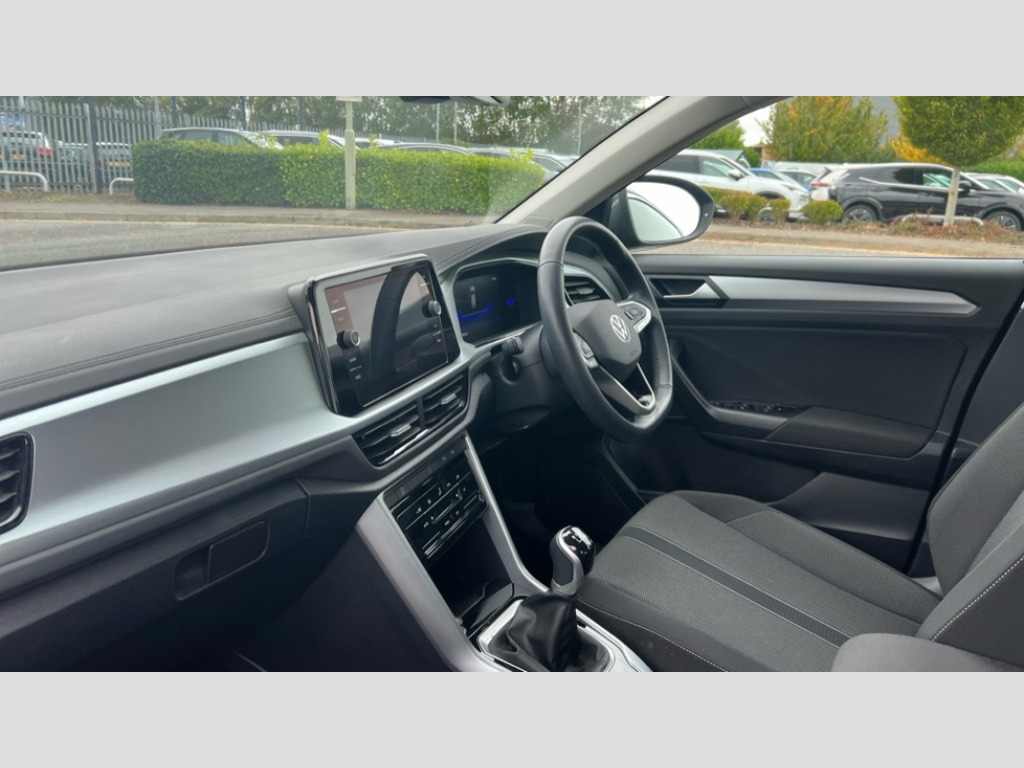 Volkswagen T-Roc 1.0 TSI Life 5dr Bluetooth mobile phone interface, Driver alert system with fatigue detection, Driver tips and journey analysis, Emergency call service, Lane keeping system Lane Assist, Modified key software - reduce switch off time for key status change to Long no motion, Online services, Park assist including front and rear parking sensors, Power assisted speed sensitive steering, Service interval indicator, Tailgate/trunk lid release from outside, Think blue trainer driver tips and journey analysis, Warning sound and light for front seatbelts unfastened, Wireless app connect, Battery regeneration during braking, Front shock absorption, Rear shock absorption chassis with increased ride height, Start/stop function with battery regeneration, DAB Digital radio, Diversity antenna for FM reception, Music playback - MP3, WMA and AAC files, Premium USB cable in choice of either Apple or Android smartphone compatibility, SD card slot, Simultaneous pairing of 2 compatible mobile devices, Title and cover art display, We Connect and We Connect Plus functionality, 3rd brake light, Auto dimming interior rear view mirror, Automatic hazard lights activation under emergency braking, Automatic headlight control with LED separate daytime running lights with coming/leaving home function, Black roof rails, Body coloured bumpers and radiator grille with chrome trim and front fog lamps with chrome bezel, Body coloured exterior mirror housings and door handles, Extended roof spoiler, Exterior mirrors aspherical on driver side, convex on front passenger side, External USB type C socket and charging sockets, Front windscreen wiper with intermittent wipe and 4 position delay, Heated rear window, LED rear combination lamps, LED rear number plate lights, LED tail lamp rear comination lamps, Power windows with comfort operation and circuit breaker, Rain sensor, Rear exhaust tailpipe, Rear fog light on one side and reversing lights on both sides, Rear side wing doors, Rear wash/wipe with intermittent wipe setting, Remote electrically foldable door mirrors, puddle lights and reverse activated passenger's door mirror, 12V power socket in centre console, 3 rear head restraints, 3 seat bench in 2nd row, 4 load lashing points in luggage compartment, Air care climatronic air conditoning system with active combination filter and 2-zone temperature control, Ambient lighting with mirror logo projection, Cloth upholstery, Door and side trim panel in cloth, Drawer under drivers seat, Driver/front passenger seat height adjustment, Front centre armrest, Front comfort sports seats, Front cupholders x 2, Front reading light, Instrument lighting, white adjustable panel illumination, Interior light delay, Isofix child seat preparation, Leather gearshift handle, Load-through provision with cup holder when folded down ('Unsplit rear seat bench, split folding backrest, with centre armrest), Luggage compartment lighting, Lumbar support for driver's and front passengers seat, Non-folding front passenger seat backrest, Single front passenger seat, Storage compartment in left and right luggage area, Storage compartment in rear doors, Storage compartments in driver and front passenger doors, Sunvisors with illuminated vanity mirrors, Variable boot floor, height adjustable and removable, Driver assistance pack without proactive passenger protection - T-Roc, 3 point height adj front seatbelts + pretensioners, 3 point seatbelts in outer rear with ECE label, ABS, Child locks on rear doors, Driver and front passenger airbag with front passenger airbag deactivation, Driver and front passenger safety-optimised head restraints, Drivers seatbelt reminder, Electronic parking brake, Electronic Stability Control (ESC) inc EDL (Electronic Differential Lock) and ASR (Traction Control), Front and rear passengers curtain airbag system including front side airbags, Front assist with city emergency braking and pedestrian monitoring, Front disc brakes, Front seat side impact airbags, Hill start assist, Predictive pedestrian protection, Rear disc brakes, Single tone horn, Tyre pressure loss indicator, Volkswagen roadside assistance, Alarm with interior protection, Anti-theft alarm system with interior monitoring, backup horn, and towing protection, Remote central locking with SAFELOCK, radio remote control with 2 remote control folding keys, Pewter matt decorative inserts for intrument panel, centre console and door panels at the front, Trims for alloy wheels