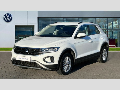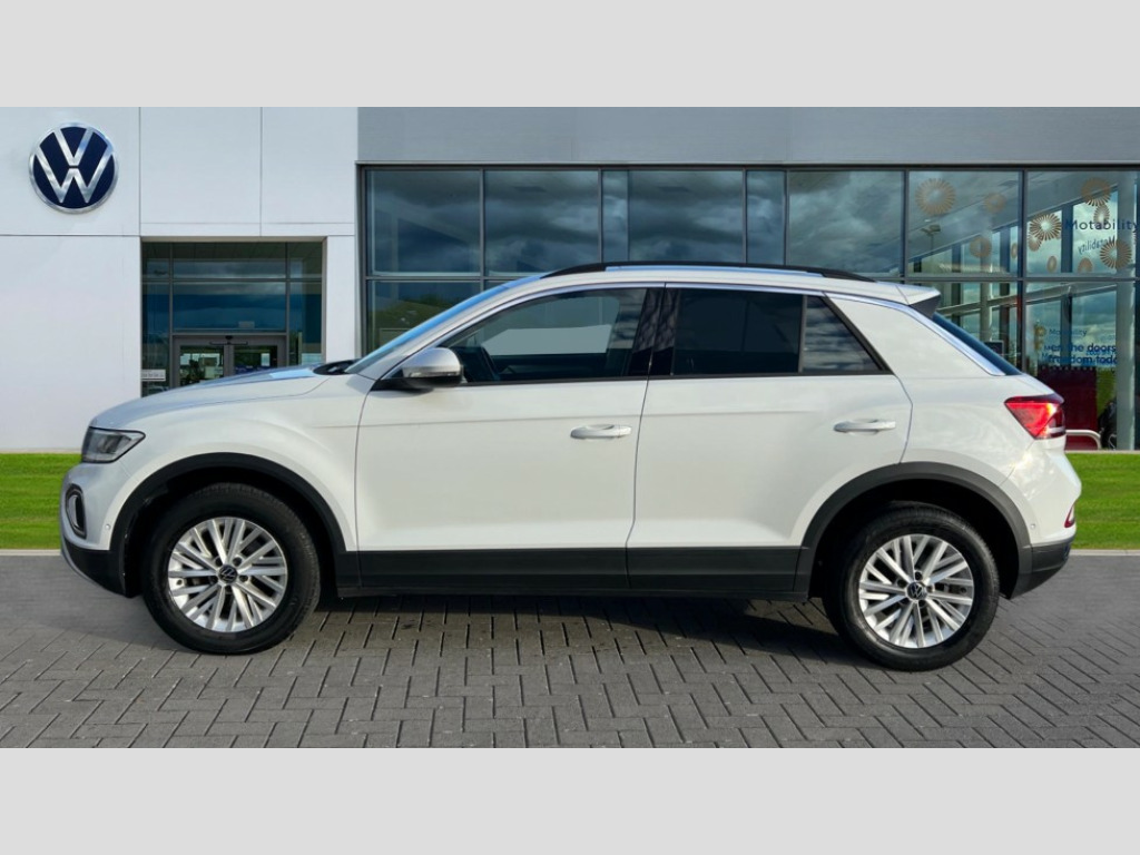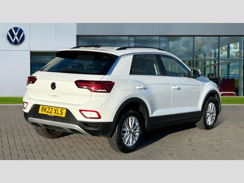 Volkswagen T-Roc 1.0 TSI Life 5dr Bluetooth mobile phone interface, Driver alert system with fatigue detection, Driver tips and journey analysis, Emergency call service, Lane keeping system Lane Assist, Modified key software - reduce switch off time for key status change to Long no motion, Online services, Park assist including front and rear parking sensors, Power assisted speed sensitive steering, Service interval indicator, Tailgate/trunk lid release from outside, Think blue trainer driver tips and journey analysis, Warning sound and light for front seatbelts unfastened, Wireless app connect, Battery regeneration during braking, Front shock absorption, Rear shock absorption chassis with increased ride height, Start/stop function with battery regeneration, DAB Digital radio, Diversity antenna for FM reception, Front and rear 6 speakers, Music playback - MP3, WMA and AAC files, Premium USB cable in choice of either Apple or Android smartphone compatibility, SD card slot, Simultaneous pairing of 2 compatible mobile devices, Title and cover art display, We Connect and We Connect Plus functionality, 3rd brake light, Auto dimming interior rear view mirror, Automatic hazard lights activation under emergency braking, Automatic headlight control with LED separate daytime running lights with coming/leaving home function, Black roof rails, Body coloured bumpers and radiator grille with chrome trim and front fog lamps with chrome bezel, Body coloured exterior mirror housings and door handles, Extended roof spoiler, Exterior mirrors aspherical on driver side, convex on front passenger side, External USB type C socket and charging sockets, Front windscreen wiper with intermittent wipe and 4 position delay, Heated rear window, LED Headlights, LED rear combination lamps, LED rear number plate lights, LED tail lamp rear comination lamps, Power windows with comfort operation and circuit breaker, Rain sensor, Rear exhaust tailpipe, Rear fog light on one side and reversing lights on both sides, Rear side wing doors, Rear wash/wipe with intermittent wipe setting, Remote electrically foldable door mirrors, puddle lights and reverse activated passenger's door mirror, 12V power socket in centre console, 3 rear head restraints, 3 seat bench in 2nd row, 4 load lashing points in luggage compartment, Air care climatronic air conditoning system with active combination filter and 2-zone temperature control, Ambient lighting with mirror logo projection, Cloth upholstery, Door and side trim panel in cloth, Drawer under drivers seat, Driver/front passenger seat height adjustment, Front centre armrest, Front comfort sports seats, Front cupholders x 2, Front reading light, Instrument lighting, white adjustable panel illumination, Interior light delay, Isofix child seat preparation, Leather gearshift handle, Load-through provision with cup holder when folded down ('Unsplit rear seat bench, split folding backrest, with centre armrest), Luggage compartment lighting, Lumbar support for driver's and front passengers seat, Non-folding front passenger seat backrest, Single front passenger seat, Storage compartment in left and right luggage area, Storage compartment in rear doors, Storage compartments in driver and front passenger doors, Sunvisors with illuminated vanity mirrors, Variable boot floor, height adjustable and removable, Driver assistance pack - T-Roc, 3 point height adj front seatbelts + pretensioners, 3 point seatbelts in outer rear with ECE label, ABS, Child locks on rear doors, Driver and front passenger airbag with front passenger airbag deactivation, Driver and front passenger safety-optimised head restraints, Drivers seatbelt reminder, Electronic parking brake, Electronic Stability Control (ESC) inc EDL (Electronic Differential Lock) and ASR (Traction Control), Front and rear passengers curtain airbag system including front side airbags, Front assist with city emergency braking and pedestrian monitoring, Front disc brakes, Front seat side impact airbags, Hill start assist, Predictive pedestrian protection, Rear disc brakes, Single tone horn, Tyre pressure loss indicator, Volkswagen roadside assistance, Alarm with interior protection, Anti-theft alarm system with interior monitoring, backup horn, and towing protection, Remote central locking with SAFELOCK, radio remote control with 2 remote control folding keys, Pewter matt decorative inserts for intrument panel, centre console and door panels at the front, Trims for alloy wheels