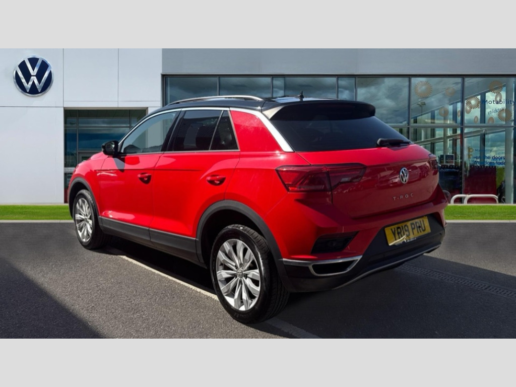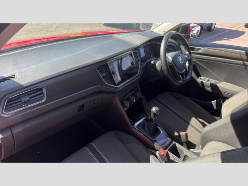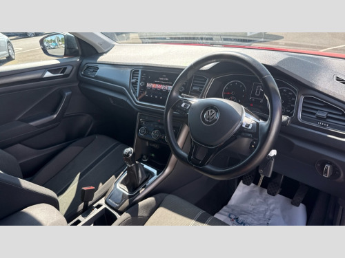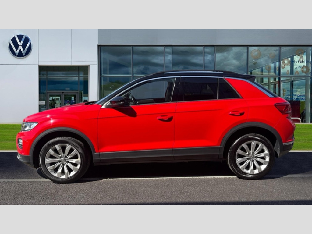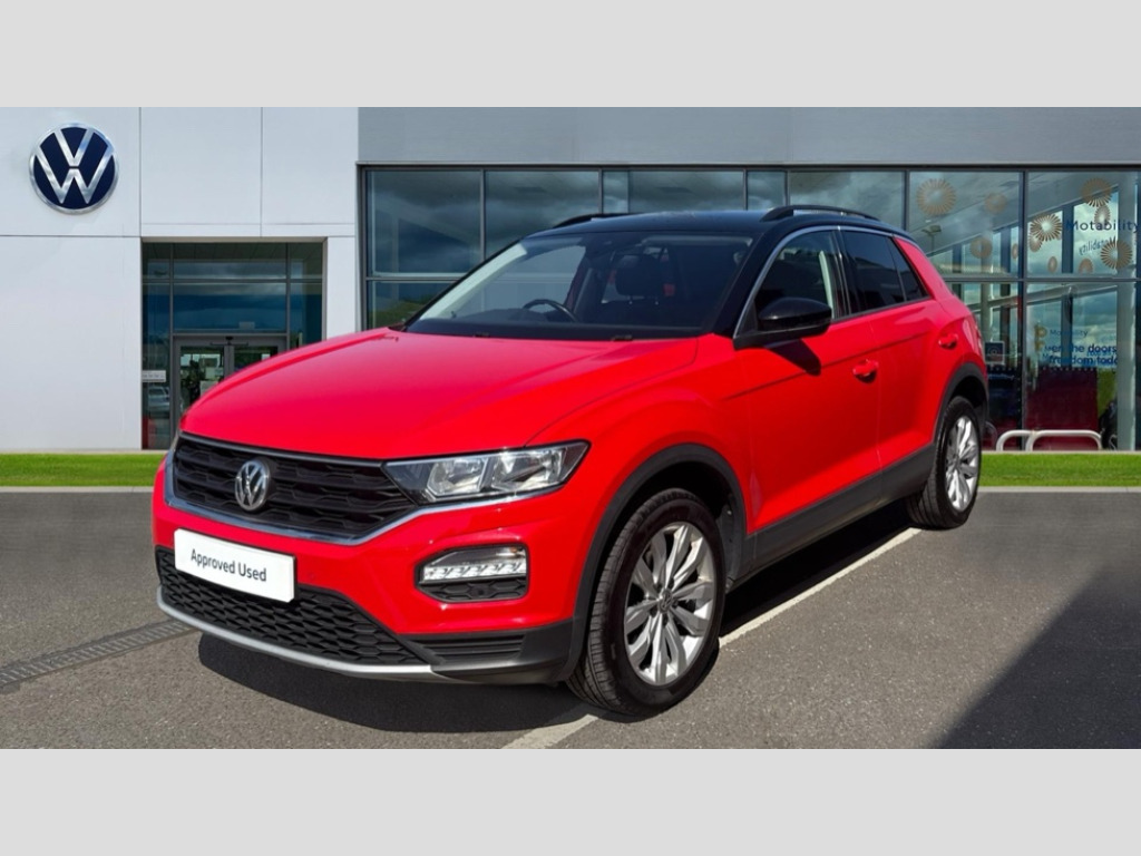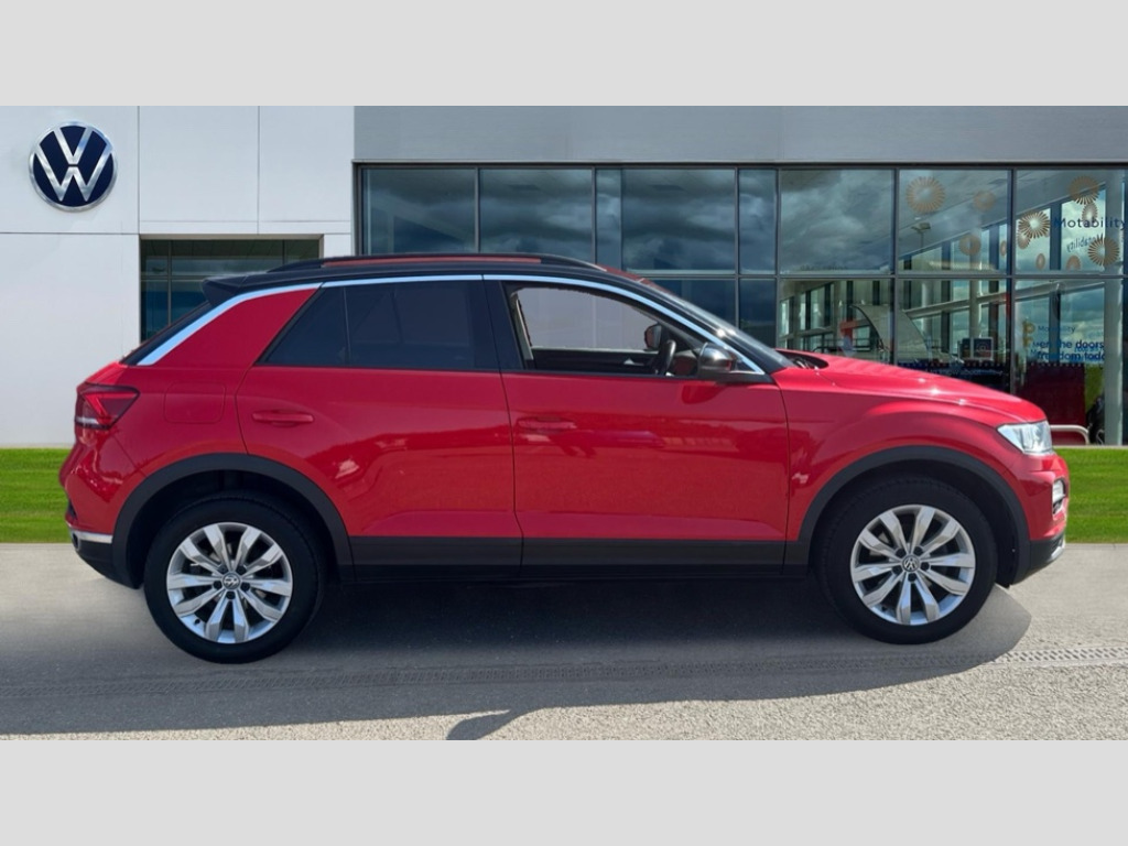 Volkswagen T-Roc 1.0 TSI SE 5dr 2 USB connection charging sockets, Adaptive cruise control, App-Connect, Automatic start/stop system, Bluetooth telephone and audio connection for compatible devices, Car information display, Front assist, radar sensor controlled distance monitor, city emergency braking + predictive pedestrian protection, Lane assist, Multifunction computer with visual gear change recommendation for fuel consumption, Power assisted speed sensitive steering, Service interval indicator, Think blue trainer driver tips and journey analysis, Warning sound and light for doors and tailgate open, Warning sound and light for front seatbelts unfastened, We Connect Go Dongle, Battery regeneration during braking, Bluetooth - Simultaneous pairing of 2 compatible mobile devices, DAB Digital radio, Multi device interface (MDI) with USB connection, Music playback - MP3, WMA and AAC files, Premium USB cable in choice of either Apple or Android smartphone compatibility, SD card slot, SMS functionality - read, compose and send SMS messages using touch-screen display, Title and cover art display, Auto dimming interior rear view mirror, Automatic hazard lights activation under emergency braking, Black grained lower door protectors, Black grained wheel arches, Body colour bumpers with silver metallic underbody fascia, Body colour door handles, Chrome trim on upper and lower radiator grille, Door mirror integrated indicators, Dusk sensor, Electrically foldable, adjustable and heated door mirrors with puddle lights and reverse activated kerb-view adjustment on passenger's door mirror, Front and rear electric windows, Front windscreen wiper with intermittent wipe and 4 position delay, Fully galvanised body, Heated rear window, High level 3rd brake light, LED rear number plate lights, Manual coming/automatic leaving home lighting function, Rain sensor, Rear windscreen washer and wiper with interval delay, 12V socket in centre console storage area, 2 front reading lights, 3 rear head restraints, 4 load lashing points in luggage compartment, Climate control - 2 zone electronic air conditioning with automatic air recirculation and allergy filter, Drawer under drivers seat, Front centre armrest with storage compartment, longitudinal and height adjustable and two rear air vents, Front cupholders x 2, Front seat back storage pockets, Glovebox, Height adjustable front seats, Height/reach adjust steering wheel, Illuminated vanity mirrors, Instrument lighting, white adjustable panel illumination, Interior light delay, Isofix easy fit child seat preparation for 2 outer rear seats, Load through provision with single cup holder when folded down, Luggage compartment cover, removable, Luggage compartment lighting, Split folding rear seat backrests with centre armrest, Storage compartment in left and right luggage area, Storage compartment in rear doors, Storage compartments in driver and front passenger doors, 3 rear three point seatbelts, ABS, Driver and front passenger safety-optimised head restraints, Electronic parking brake with auto hold, ESC with EDL, ASR, EDTC and trailer stabilisation function, Front and rear curtain airbags, driver and front passenger airbags with passenger deactivation switch and front side impact airbags, Rigid safety cell with front and rear crumple zones, Three point height adjust front seatbelts + pretensioners, Tyre pressure loss indicator, Ventilated front and rear disc brakes, Volkswagen roadside assistance, Alarm with remote central locking and interior protection, Electronic engine immobiliser, Remote central locking with 2 remote folding keys, Dark oak brown decorative inserts in dash and door panel, Steel space saver spare wheel