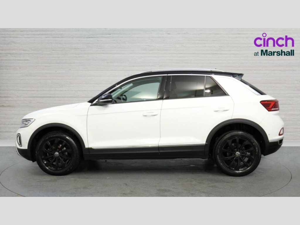 Volkswagen T-Roc 1.0 TSI Style 5dr 10.25" Digital cockpit pro, Bluetooth mobile phone interface, Driver alert system with fatigue detection, Driver tips and journey analysis, Dynamic road sign display, Emergency call service, Lane keeping system Lane Assist, Modified key software - reduce switch off time for key status change to Long no motion, Online services, Park assist including front and rear parking sensors, Power assisted speed sensitive steering, Service interval indicator, Tailgate/trunk lid release from outside, Think blue trainer driver tips and journey analysis, Warning sound and light for front seatbelts unfastened, Wireless app connect, Battery regeneration during braking, Front shock absorption, Rear shock absorption chassis with increased ride height, Start/stop function with battery regeneration, Diversity antenna for FM reception, Music playback - MP3, WMA and AAC files, Premium USB cable in choice of either Apple or Android smartphone compatibility, SD card slot, Simultaneous pairing of 2 compatible mobile devices, Title and cover art display, We Connect and We Connect Plus functionality, 3rd brake light, Auto dimming interior rear view mirror, Automatic hazard lights activation under emergency braking, Automatic headlight control with LED separate daytime running lights with coming/leaving home function, Body colour sports bumpers with silver metallic underbody fascia, Dynamic headlight range control with self adjusting whilst driving, Extended roof spoiler, Exterior mirrors aspherical on driver side, convex on front passenger side, External USB type C socket and charging sockets, Front windscreen wiper with intermittent wipe and 4 position delay, Heated rear window, LED rear combination lamps, LED rear number plate lights, LED tail lamp rear comination lamps, Light mode for poor weather, rain, fog or snow, Power windows with comfort operation and circuit breaker, Rain sensor, Rear exhaust tailpipe, Rear fog light on one side and reversing lights on both sides, Rear side wing doors, Rear wash/wipe with intermittent wipe setting, Remote electrically foldable door mirrors, puddle lights and reverse activated passenger's door mirror, 12V power socket in centre console, 3 rear head restraints, 3 seat bench in 2nd row, 4 load lashing points in luggage compartment, Air care climatronic air conditoning system with active combination filter and 2-zone temperature control, Chrome plated radiator grille inserts, air vent surrounds and light switch surrounds, Door and side trim panel with leatherette insert, Drawer under drivers seat, Front + rear carpet mats, Front centre armrest, Front comfort sports seats, Front cupholders x 2, Front footwell illumination, Instrument lighting, white adjustable panel illumination, Interior ambient lighting and surround lighting, Interior light delay, Isofix child seat preparation, Leather gearshift handle, LED interior light with switch off delay/dimmer and 2 front/rear LED reading lights, Load-through provision with cup holder when folded down ('Unsplit rear seat bench, split folding backrest, with centre armrest), Luggage compartment lighting, Non-folding front passenger seat backrest, Single front passenger seat, Storage compartment in left and right luggage area, Storage compartment in rear doors, Storage compartments in driver and front passenger doors, Sunvisors with illuminated vanity mirrors, Variable boot floor, height adjustable and removable, Driver assistance pack without proactive passenger protection - T-Roc, 3 point height adj front seatbelts + pretensioners, 3 point seatbelts in outer rear with ECE label, ABS, Child locks on rear doors, Driver and front passenger airbag with front passenger airbag deactivation, Driver and front passenger safety-optimised head restraints, Drivers seatbelt reminder, Electronic parking brake, Electronic Stability Control (ESC) inc EDL (Electronic Differential Lock) and ASR (Traction Control), Front and rear passengers curtain airbag system including front side airbags, Front assist with city emergency braking and pedestrian monitoring, Front disc brakes, Front seat side impact airbags, Predictive pedestrian protection, Rear disc brakes, Single tone horn, Tyre pressure loss indicator, Volkswagen roadside assistance, Anti-theft alarm system with interior monitoring, backup horn, and towing protection, Remote central locking with SAFELOCK, radio remote control with 2 remote control folding keys, Trims for alloy wheels
