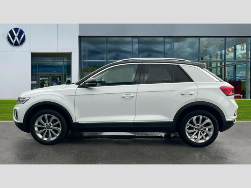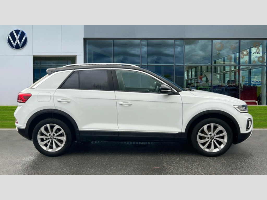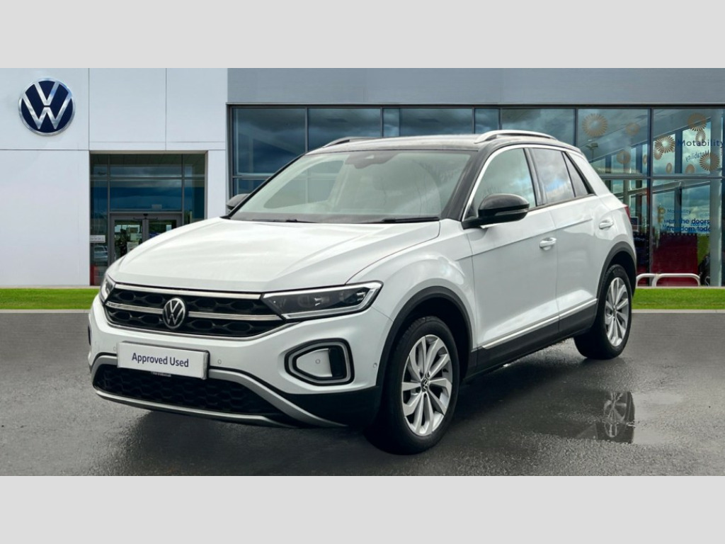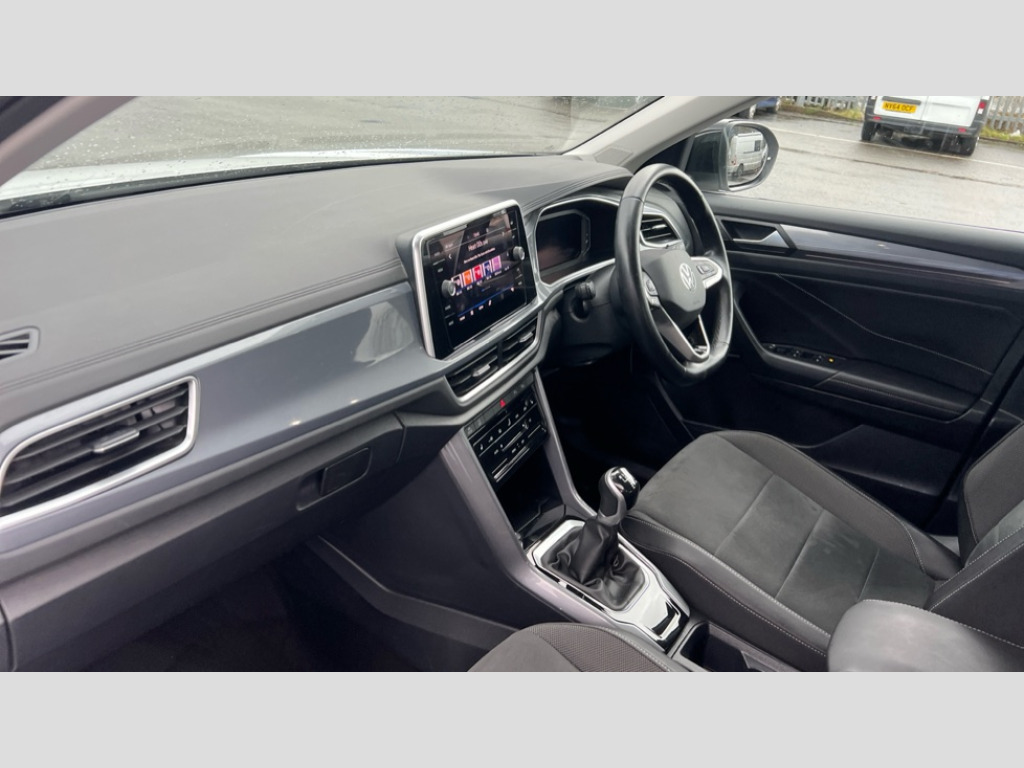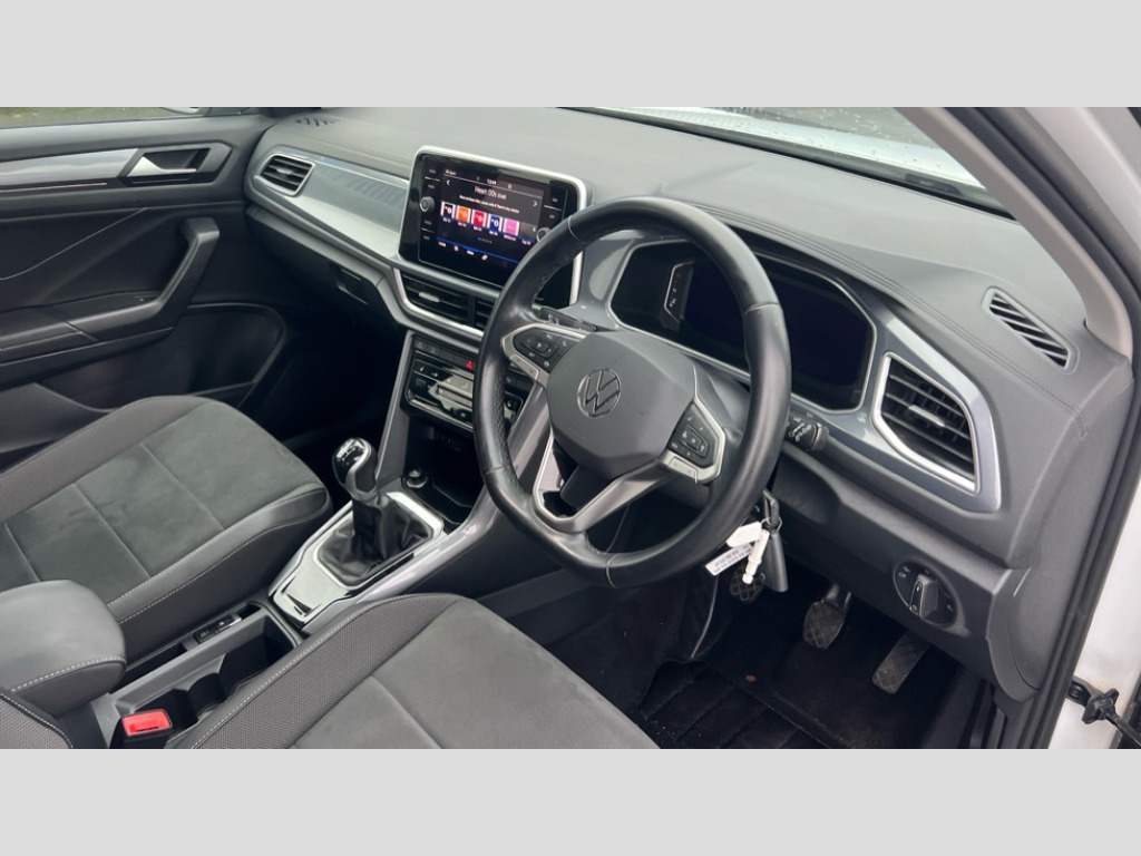 Volkswagen T-Roc 1.0 TSI Style 5dr 10.25" Digital cockpit pro, Bluetooth mobile phone interface, Driver alert system with fatigue detection, Driver tips and journey analysis, Dynamic road sign display, Emergency call service, Lane keeping system Lane Assist, Modified key software - reduce switch off time for key status change to Long no motion, Online services, Park assist including front and rear parking sensors, Power assisted speed sensitive steering, Service interval indicator, Tailgate/trunk lid release from outside, Think blue trainer driver tips and journey analysis, Warning sound and light for front seatbelts unfastened, Wireless app connect, Battery regeneration during braking, Front shock absorption, Rear shock absorption chassis with increased ride height, Start/stop function with battery regeneration, Diversity antenna for FM reception, Front and rear 6 speakers, Music playback - MP3, WMA and AAC files, Premium USB cable in choice of either Apple or Android smartphone compatibility, SD card slot, Simultaneous pairing of 2 compatible mobile devices, Title and cover art display, We Connect and We Connect Plus functionality, 3rd brake light, Auto dimming interior rear view mirror, Automatic hazard lights activation under emergency braking, Automatic headlight control with LED separate daytime running lights with coming/leaving home function, Body colour sports bumpers with silver metallic underbody fascia, Dynamic headlight range control with self adjusting whilst driving, Extended roof spoiler, Exterior mirrors aspherical on driver side, convex on front passenger side, External USB type C socket and charging sockets, Front windscreen wiper with intermittent wipe and 4 position delay, Heated rear window, LED Plus headlamps, LED rear combination lamps, LED rear number plate lights, LED tail lamp rear comination lamps, Light mode for poor weather, rain, fog or snow, Power windows with comfort operation and circuit breaker, Rain sensor, Rear exhaust tailpipe, Rear fog light on one side and reversing lights on both sides, Rear side wing doors, Rear wash/wipe with intermittent wipe setting, Remote electrically foldable door mirrors, puddle lights and reverse activated passenger's door mirror, 12V power socket in centre console, 3 rear head restraints, 3 seat bench in 2nd row, 4 load lashing points in luggage compartment, Air care climatronic air conditoning system with active combination filter and 2-zone temperature control, Chrome plated radiator grille inserts, air vent surrounds and light switch surrounds, Door and side trim panel with leatherette insert, Drawer under drivers seat, Front + rear carpet mats, Front centre armrest, Front comfort sports seats, Front cupholders x 2, Front footwell illumination, Instrument lighting, white adjustable panel illumination, Interior ambient lighting and surround lighting, Interior light delay, Isofix child seat preparation, Leather gearshift handle, LED interior light with switch off delay/dimmer and 2 front/rear LED reading lights, Load-through provision with cup holder when folded down ('Unsplit rear seat bench, split folding backrest, with centre armrest), Luggage compartment lighting, Non-folding front passenger seat backrest, Single front passenger seat, Storage compartment in left and right luggage area, Storage compartment in rear doors, Storage compartments in driver and front passenger doors, Sunvisors with illuminated vanity mirrors, Variable boot floor, height adjustable and removable, Driver assistance pack without proactive passenger protection - T-Roc, 3 point height adj front seatbelts + pretensioners, 3 point seatbelts in outer rear with ECE label, ABS, Child locks on rear doors, Driver and front passenger airbag with front passenger airbag deactivation, Driver and front passenger safety-optimised head restraints, Drivers seatbelt reminder, Electronic parking brake, Electronic Stability Control (ESC) inc EDL (Electronic Differential Lock) and ASR (Traction Control), Front and rear passengers curtain airbag system including front side airbags, Front assist with city emergency braking and pedestrian monitoring, Front disc brakes, Front seat side impact airbags, Predictive pedestrian protection, Rear disc brakes, Single tone horn, Tyre pressure loss indicator, Volkswagen roadside assistance, Alarm with interior protection, Anti-theft alarm system with interior monitoring, backup horn, and towing protection, Remote central locking with SAFELOCK, radio remote control with 2 remote control folding keys, Trims for alloy wheels
