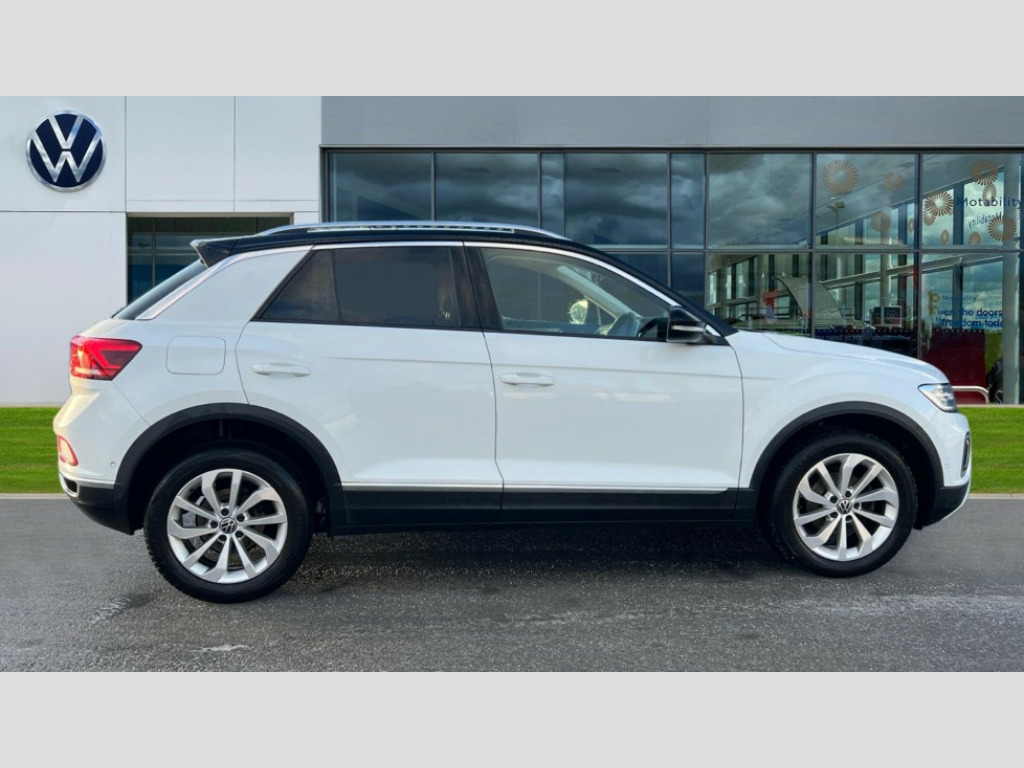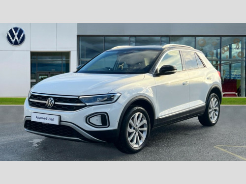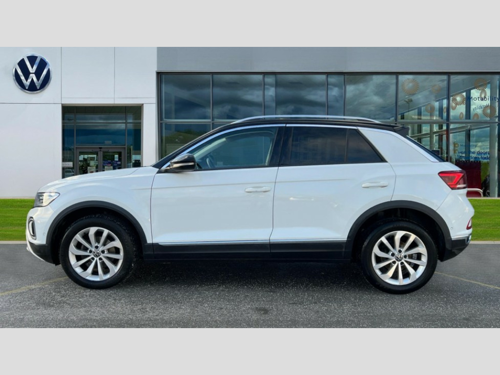 Volkswagen T-Roc 1.0 TSI Style 5dr 10.25" Digital cockpit pro, Bluetooth mobile phone interface, Driver alert system with fatigue detection, Driver tips and journey analysis, Dynamic road sign display, Emergency call service, Lane keeping system Lane Assist, Modified key software - reduce switch off time for key status change to Long no motion, Online services, Park assist including front and rear parking sensors, Power assisted speed sensitive steering, Service interval indicator, Tailgate/trunk lid release from outside, Think blue trainer driver tips and journey analysis, Warning sound and light for front seatbelts unfastened, Wireless app connect, Battery regeneration during braking, Front shock absorption, Rear shock absorption chassis with increased ride height, Start/stop function with battery regeneration, Diversity antenna for FM reception, Front and rear 6 speakers, Music playback - MP3, WMA and AAC files, Premium USB cable in choice of either Apple or Android smartphone compatibility, SD card slot, Simultaneous pairing of 2 compatible mobile devices, Title and cover art display, We Connect and We Connect Plus functionality, 3rd brake light, Auto dimming interior rear view mirror, Automatic hazard lights activation under emergency braking, Automatic headlight control with LED separate daytime running lights with coming/leaving home function, Body colour sports bumpers with silver metallic underbody fascia, Dynamic headlight range control with self adjusting whilst driving, Extended roof spoiler, Exterior mirrors aspherical on driver side, convex on front passenger side, External USB type C socket and charging sockets, Front windscreen wiper with intermittent wipe and 4 position delay, Heated rear window, LED Plus headlamps, LED rear combination lamps, LED rear number plate lights, LED tail lamp rear comination lamps, Light mode for poor weather, rain, fog or snow, Power windows with comfort operation and circuit breaker, Rain sensor, Rear exhaust tailpipe, Rear fog light on one side and reversing lights on both sides, Rear side wing doors, Rear wash/wipe with intermittent wipe setting, Remote electrically foldable door mirrors, puddle lights and reverse activated passenger's door mirror, 12V power socket in centre console, 3 rear head restraints, 3 seat bench in 2nd row, 4 load lashing points in luggage compartment, Air care climatronic air conditoning system with active combination filter and 2-zone temperature control, Chrome plated radiator grille inserts, air vent surrounds and light switch surrounds, Door and side trim panel with leatherette insert, Drawer under drivers seat, Front + rear carpet mats, Front centre armrest, Front comfort sports seats, Front cupholders x 2, Front footwell illumination, Instrument lighting, white adjustable panel illumination, Interior ambient lighting and surround lighting, Interior light delay, Isofix child seat preparation, Leather gearshift handle, LED interior light with switch off delay/dimmer and 2 front/rear LED reading lights, Load-through provision with cup holder when folded down ('Unsplit rear seat bench, split folding backrest, with centre armrest), Luggage compartment lighting, Non-folding front passenger seat backrest, Single front passenger seat, Storage compartment in left and right luggage area, Storage compartment in rear doors, Storage compartments in driver and front passenger doors, Sunvisors with illuminated vanity mirrors, Variable boot floor, height adjustable and removable, Driver assistance pack without proactive passenger protection - T-Roc, 3 point height adj front seatbelts + pretensioners, 3 point seatbelts in outer rear with ECE label, ABS, Child locks on rear doors, Driver and front passenger airbag with front passenger airbag deactivation, Driver and front passenger safety-optimised head restraints, Drivers seatbelt reminder, Electronic parking brake, Electronic Stability Control (ESC) inc EDL (Electronic Differential Lock) and ASR (Traction Control), Front and rear passengers curtain airbag system including front side airbags, Front assist with city emergency braking and pedestrian monitoring, Front disc brakes, Front seat side impact airbags, Predictive pedestrian protection, Rear disc brakes, Single tone horn, Tyre pressure loss indicator, Volkswagen roadside assistance, Alarm with interior protection, Anti-theft alarm system with interior monitoring, backup horn, and towing protection, Remote central locking with SAFELOCK, radio remote control with 2 remote control folding keys, Trims for alloy wheels