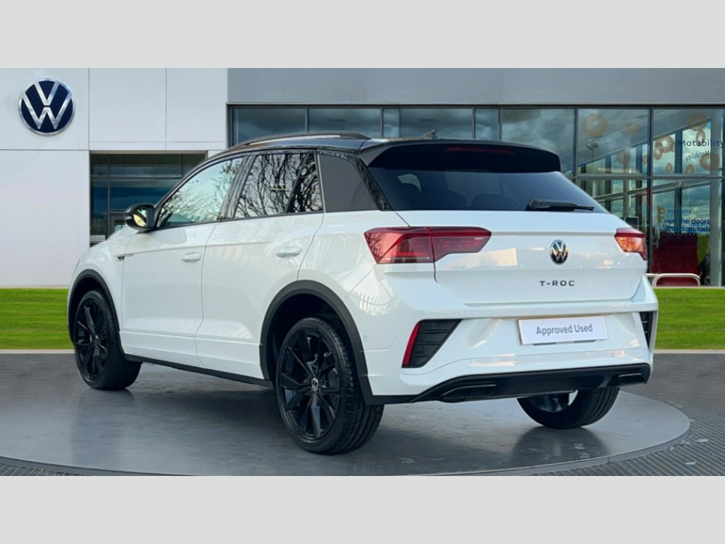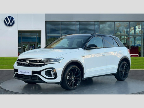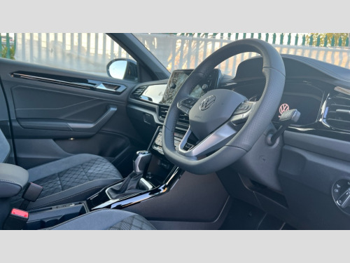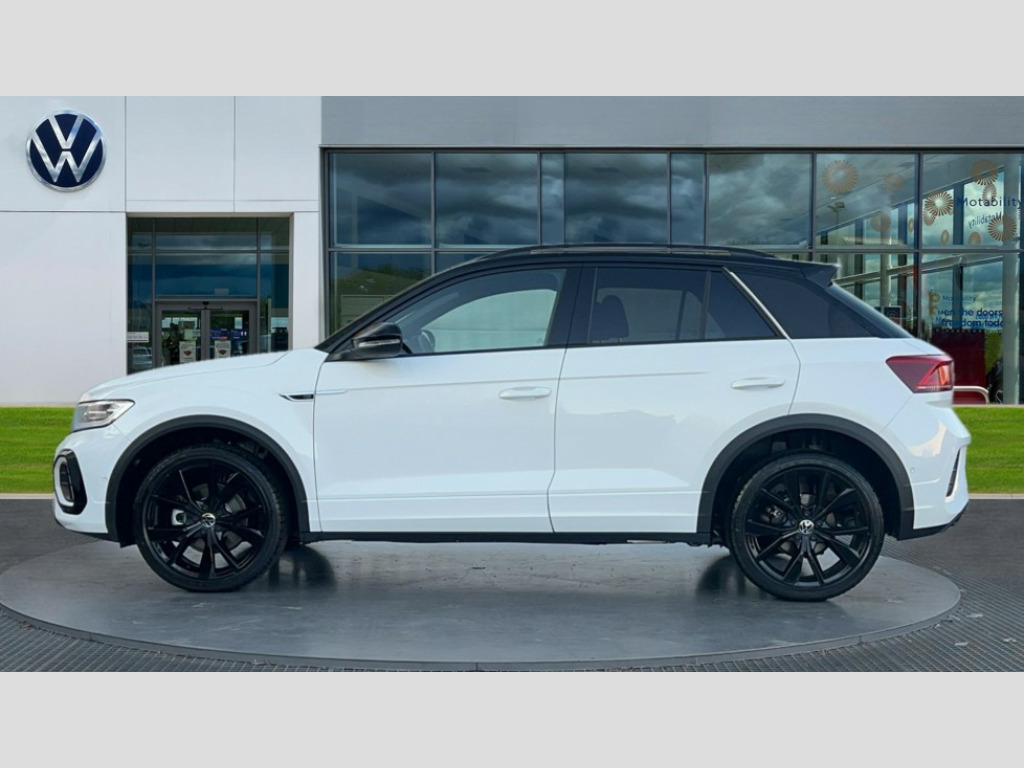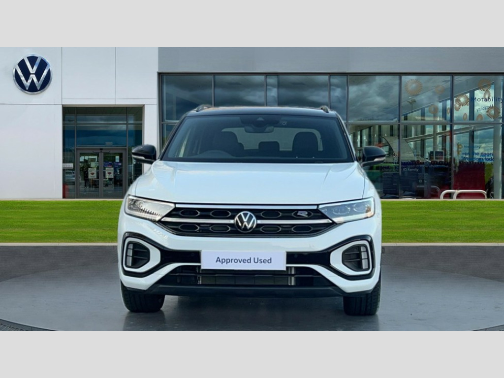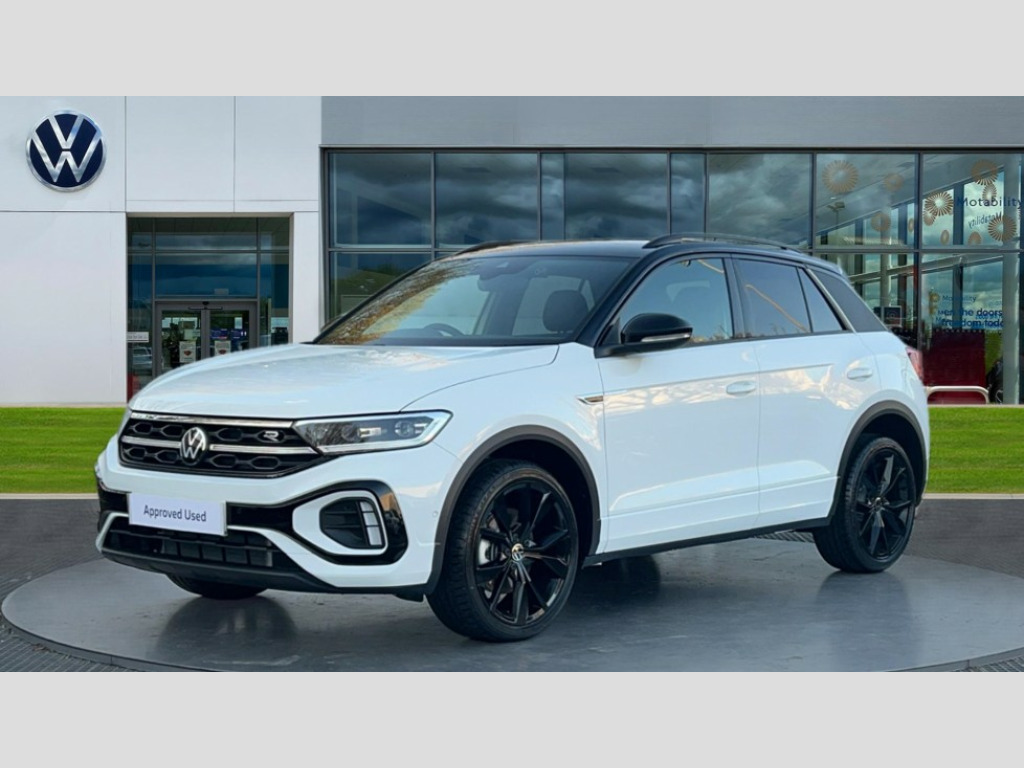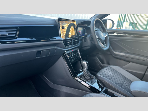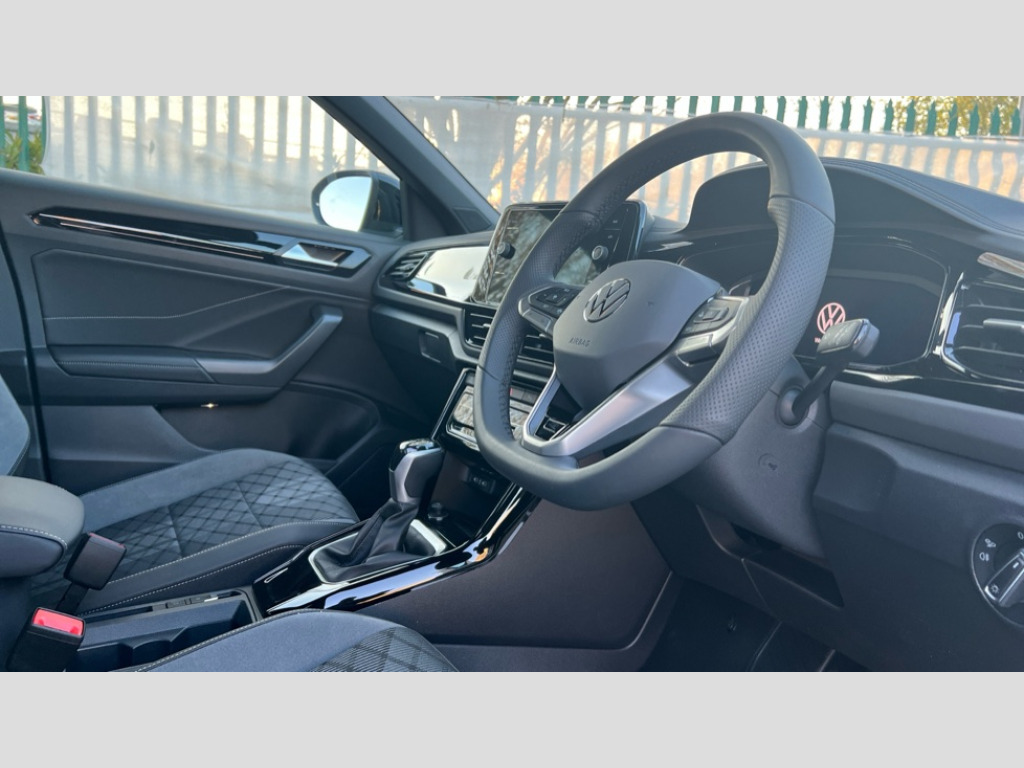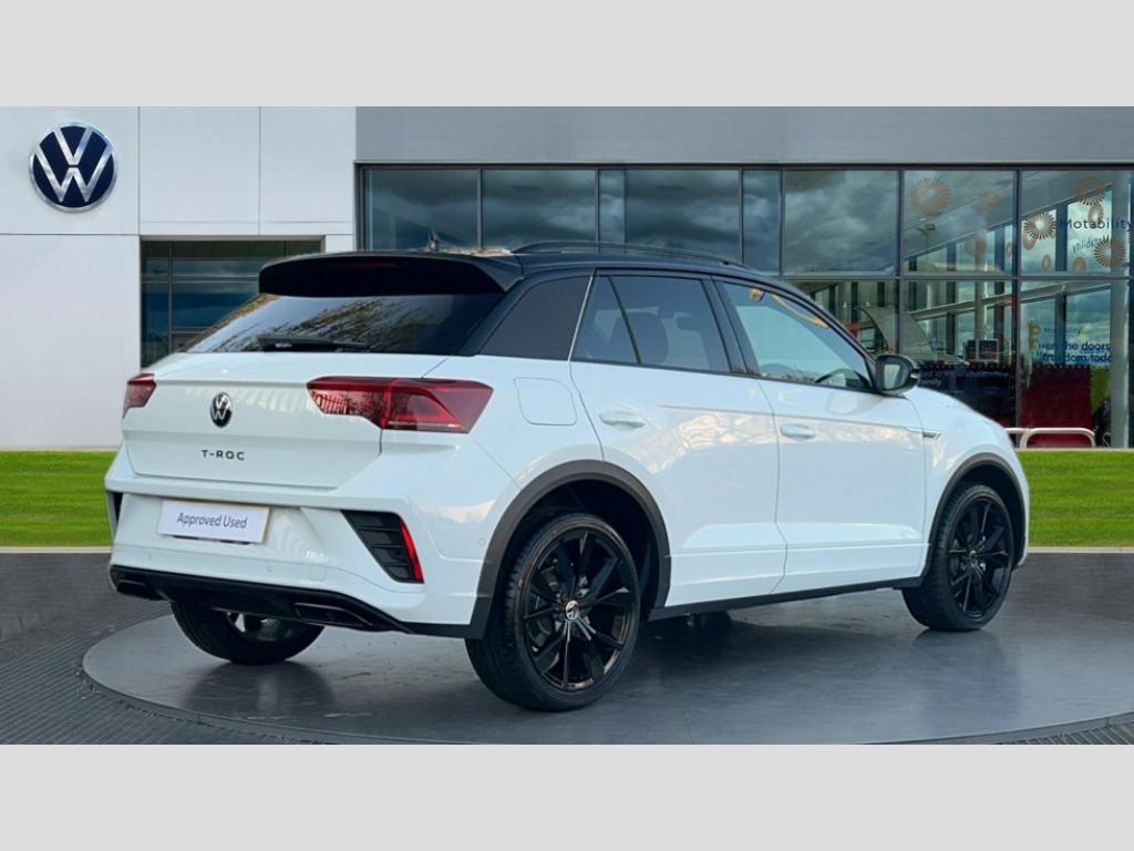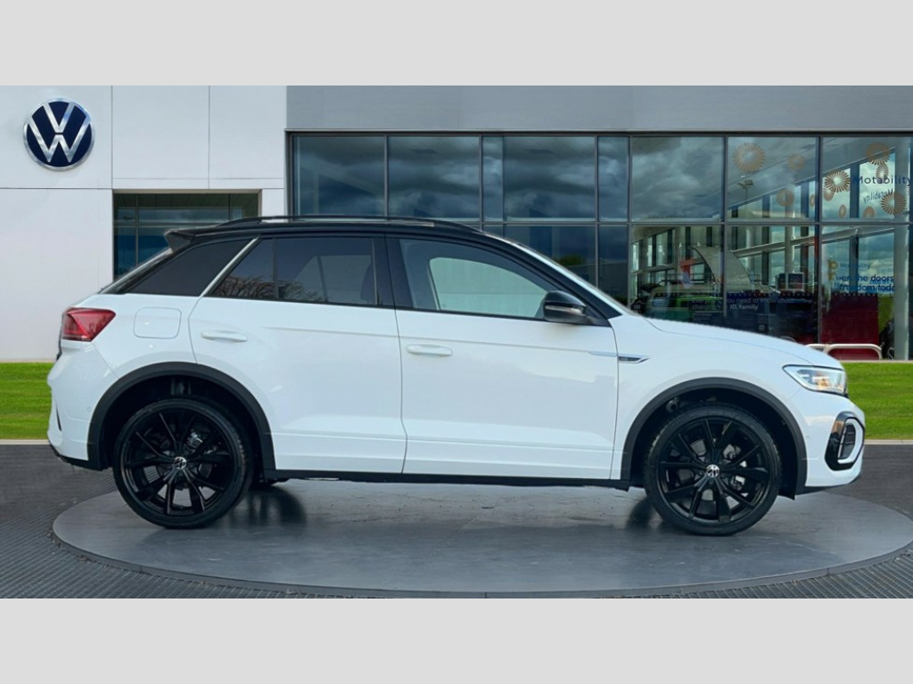 Volkswagen T-Roc 1.5 TSI Black Edition 5dr DSG 10.25" Digital cockpit pro, Advanced driver attention and drowsiness monitor, Emergency call service, Lane keeping system Lane Assist, Mobile phone interface, Modified key software - reduce switch off time for key status change to Long no motion, Online services, Park assist including front and rear parking sensors, Power assisted speed sensitive steering, Service interval indicator, Tailgate/trunk lid release from outside, Think blue trainer driver tips and journey analysis, Warning sound and light for front seatbelts unfastened, Wireless app connect, Battery regeneration during braking, Rear shock absorption chassis with increased ride height, Start/stop function with battery regeneration, DAB Digital radio, Diversity antenna for FM reception, Front and rear 6 speakers, Music playback - MP3, WMA and AAC files, Premium USB cable in choice of either Apple or Android smartphone compatibility, SD card slot, Simultaneous pairing of 2 compatible mobile devices, Title and cover art display, We Connect and We Connect Plus functionality, Auto dimming interior rear view mirror, Automatic hazard lights activation under emergency braking, Automatic headlight control with LED separate daytime running lights with coming/leaving home function, Dynamic cornering light, Electrically adjustable and heated door mirrors, Extended roof spoiler, Exterior mirrors aspherical on driver side, convex on front passenger side, External USB type C socket and charging sockets, Front windscreen wiper with intermittent wipe and 4 position delay, Heated rear window, Illuminated front grille, IQ LED matrix headlights, LED 3rd brake light, LED rear number plate lights, LED rear tail lights with dynamic turn signal, Light mode for poor weather, rain, fog or snow, Power windows with comfort operation and circuit breaker, R-Line design body coloured bumpers, Rain sensor, Rear exhaust tailpipe, Rear fog light on one side and reversing lights on both sides, Rear side wing doors, Rear wash/wipe with intermittent wipe setting, Remote electrically foldable door mirrors, puddle lights and reverse activated passenger's door mirror, 12V power socket in centre console, 3 rear head restraints, 3 seat bench in 2nd row, 4 load lashing points in luggage compartment, Air care climatronic air conditoning system with active combination filter and 2-zone temperature control, Artvelours cloth upholstery, Black roof lining, Chrome plated radiator grille inserts, air vent surrounds and light switch surrounds, Door and side trim panel with leatherette insert, Drawer under drivers seat, Driver seat height adjust, Driver's seat lumbar support, Front + rear carpet mats, Front centre armrest, Front comfort sports seats, Front cupholders x 2, Front footwell illumination, Front reading light, Front scuff plates with R Line logo, Front seat back storage pockets, Glove compartment door with light, Instrument lighting, white adjustable panel illumination, Interior ambient lighting and surround lighting, Interior light delay, Isofix child seat preparation, Leather gearshift handle, Leather wrapped multifunction steering wheel with paddle shift, Load-through provision with cup holder when folded down ('Unsplit rear seat bench, split folding backrest, with centre armrest), Luggage compartment lighting, Non-folding front passenger seat backrest, Passenger seat height adjuster, Passenger seat lumbar support, Single front passenger seat, Stainless steel pedals, Storage compartment in left and right luggage area, Storage compartment in rear doors, Storage compartments in driver and front passenger doors, Sunvisors with illuminated vanity mirrors, Variable boot floor, height adjustable and removable, Winter pack without heated windscreen washer jets - T-Roc, 3 point height adj front seatbelts + pretensioners, 3 point seatbelts in outer rear with ECE label, ABS, Child locks on rear doors, City emergency braking and pedestrian monitoring, Driver and front passenger airbag with front passenger airbag deactivation, Driver and front passenger safety-optimised head restraints, Drivers seatbelt reminder, Electronic parking brake, Electronic Stability Control (ESC) inc EDL (Electronic Differential Lock) and ASR (Traction Control), Front and rear passengers curtain airbag system including front side airbags, Front disc brakes, Hill start assist, Predictive pedestrian protection, Rear disc brakes, Two tone horn, Tyre pressure loss indicator, Volkswagen roadside assistance, Tool kit, Trims for alloy wheels, Tyre mobility kit including compressor and sealing foam