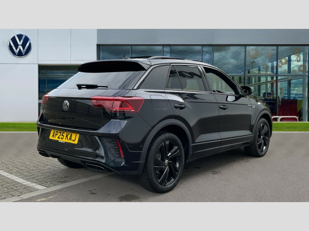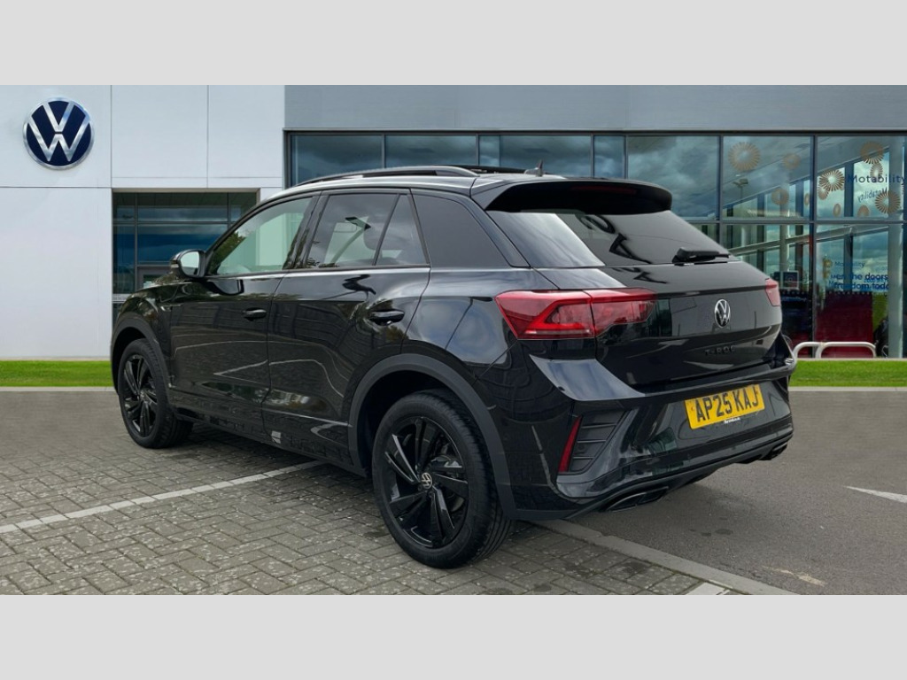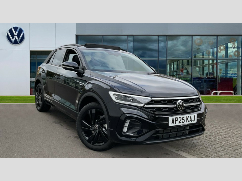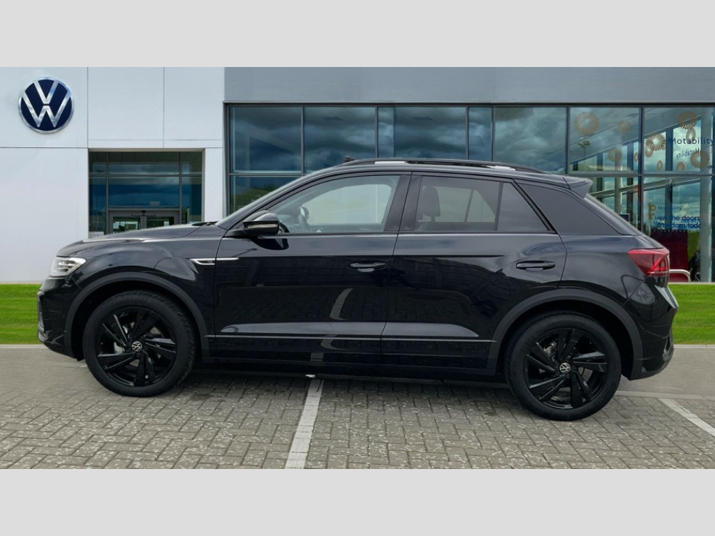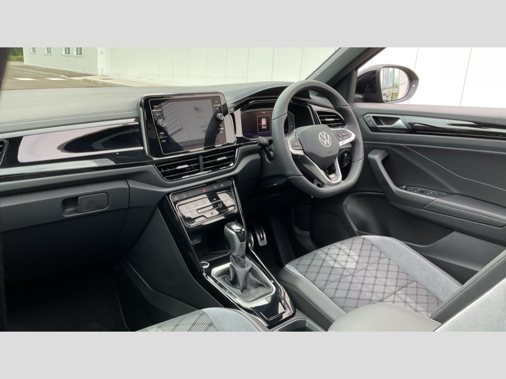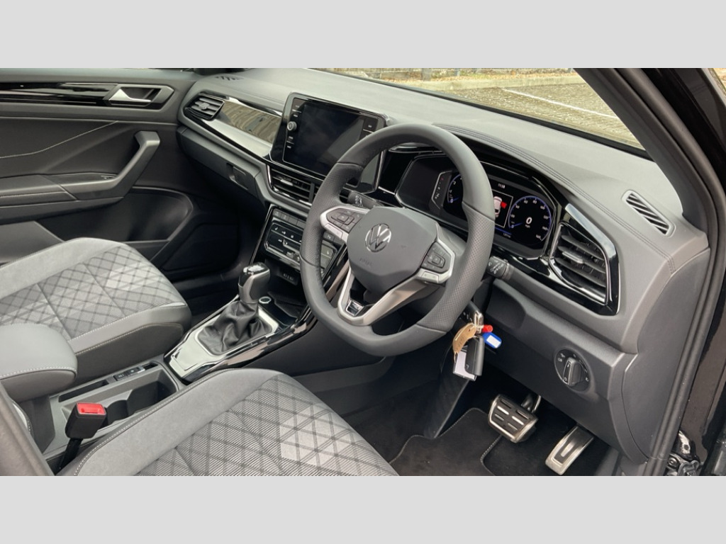 Volkswagen T-Roc 1.5 TSI Black Edition 5dr DSG 10.25" Digital cockpit pro, Advanced driver attention and drowsiness monitor, Emergency call service, Lane keeping system Lane Assist, Mobile phone interface, Modified key software - reduce switch off time for key status change to Long no motion, Online services, Park assist including front and rear parking sensors, Power assisted speed sensitive steering, Service interval indicator, Tailgate/trunk lid release from outside, Think blue trainer driver tips and journey analysis, Warning sound and light for front seatbelts unfastened, Wireless app connect, Battery regeneration during braking, Rear shock absorption chassis with increased ride height, Start/stop function with battery regeneration, DAB Digital radio, Diversity antenna for FM reception, Front and rear 6 speakers, Music playback - MP3, WMA and AAC files, Premium USB cable in choice of either Apple or Android smartphone compatibility, SD card slot, Simultaneous pairing of 2 compatible mobile devices, Title and cover art display, We Connect and We Connect Plus functionality, Auto dimming interior rear view mirror, Automatic hazard lights activation under emergency braking, Automatic headlight control with LED separate daytime running lights with coming/leaving home function, Dynamic cornering light, Electrically adjustable and heated door mirrors, Extended roof spoiler, Exterior mirrors aspherical on driver side, convex on front passenger side, External USB type C socket and charging sockets, Front windscreen wiper with intermittent wipe and 4 position delay, Heated rear window, Illuminated front grille, IQ LED matrix headlights, LED 3rd brake light, LED rear number plate lights, LED rear tail lights with dynamic turn signal, Light mode for poor weather, rain, fog or snow, Power windows with comfort operation and circuit breaker, R-Line design body coloured bumpers, Rain sensor, Rear exhaust tailpipe, Rear fog light on one side and reversing lights on both sides, Rear side wing doors, Rear wash/wipe with intermittent wipe setting, Remote electrically foldable door mirrors, puddle lights and reverse activated passenger's door mirror, 12V power socket in centre console, 3 rear head restraints, 3 seat bench in 2nd row, 4 load lashing points in luggage compartment, Air care climatronic air conditoning system with active combination filter and 2-zone temperature control, Artvelours cloth upholstery, Black roof lining, Chrome plated radiator grille inserts, air vent surrounds and light switch surrounds, Door and side trim panel with leatherette insert, Drawer under drivers seat, Driver seat height adjust, Driver's seat lumbar support, Front + rear carpet mats, Front centre armrest, Front comfort sports seats, Front cupholders x 2, Front footwell illumination, Front reading light, Front scuff plates with R Line logo, Front seat back storage pockets, Glove compartment door with light, Instrument lighting, white adjustable panel illumination, Interior ambient lighting and surround lighting, Interior light delay, Isofix child seat preparation, Leather gearshift handle, Leather wrapped multifunction steering wheel with paddle shift, Load-through provision with cup holder when folded down ('Unsplit rear seat bench, split folding backrest, with centre armrest), Luggage compartment lighting, Non-folding front passenger seat backrest, Passenger seat height adjuster, Passenger seat lumbar support, Single front passenger seat, Stainless steel pedals, Storage compartment in left and right luggage area, Storage compartment in rear doors, Storage compartments in driver and front passenger doors, Sunvisors with illuminated vanity mirrors, Variable boot floor, height adjustable and removable, Winter pack without heated windscreen washer jets - T-Roc, 3 point height adj front seatbelts + pretensioners, 3 point seatbelts in outer rear with ECE label, ABS, Child locks on rear doors, City emergency braking and pedestrian monitoring, Driver and front passenger airbag with front passenger airbag deactivation, Driver and front passenger safety-optimised head restraints, Drivers seatbelt reminder, Electronic parking brake, Electronic Stability Control (ESC) inc EDL (Electronic Differential Lock) and ASR (Traction Control), Front and rear passengers curtain airbag system including front side airbags, Front disc brakes, Hill start assist, Predictive pedestrian protection, Rear disc brakes, Two tone horn, Tyre pressure loss indicator, Volkswagen roadside assistance, Tool kit, Trims for alloy wheels, Tyre mobility kit including compressor and sealing foam