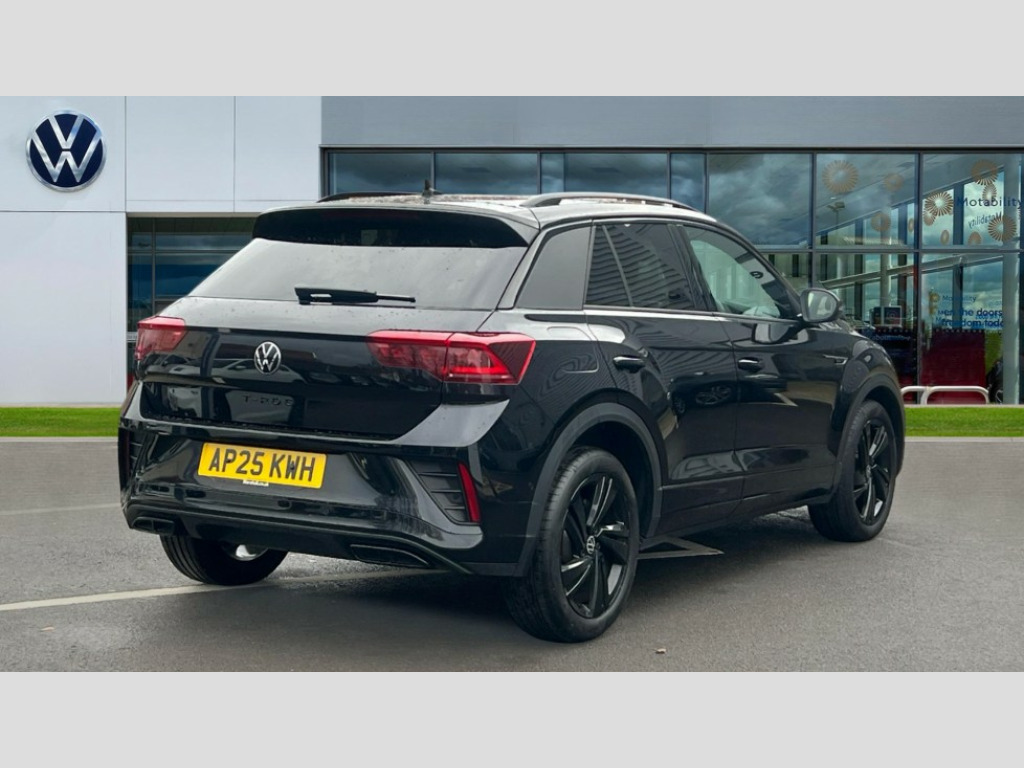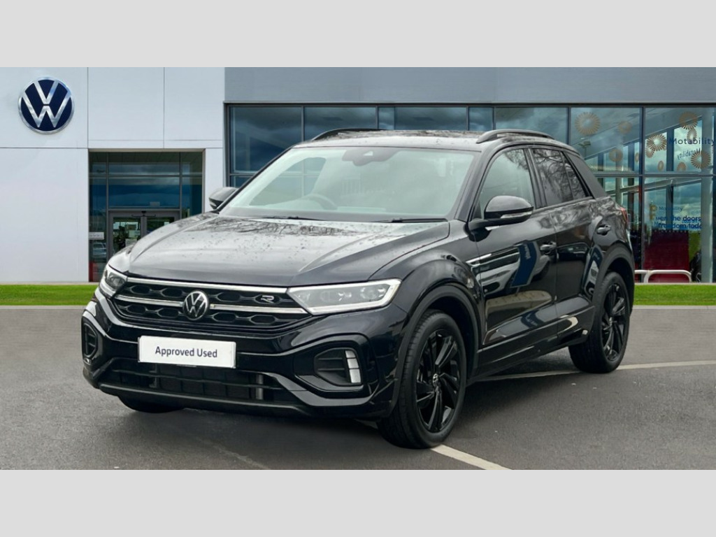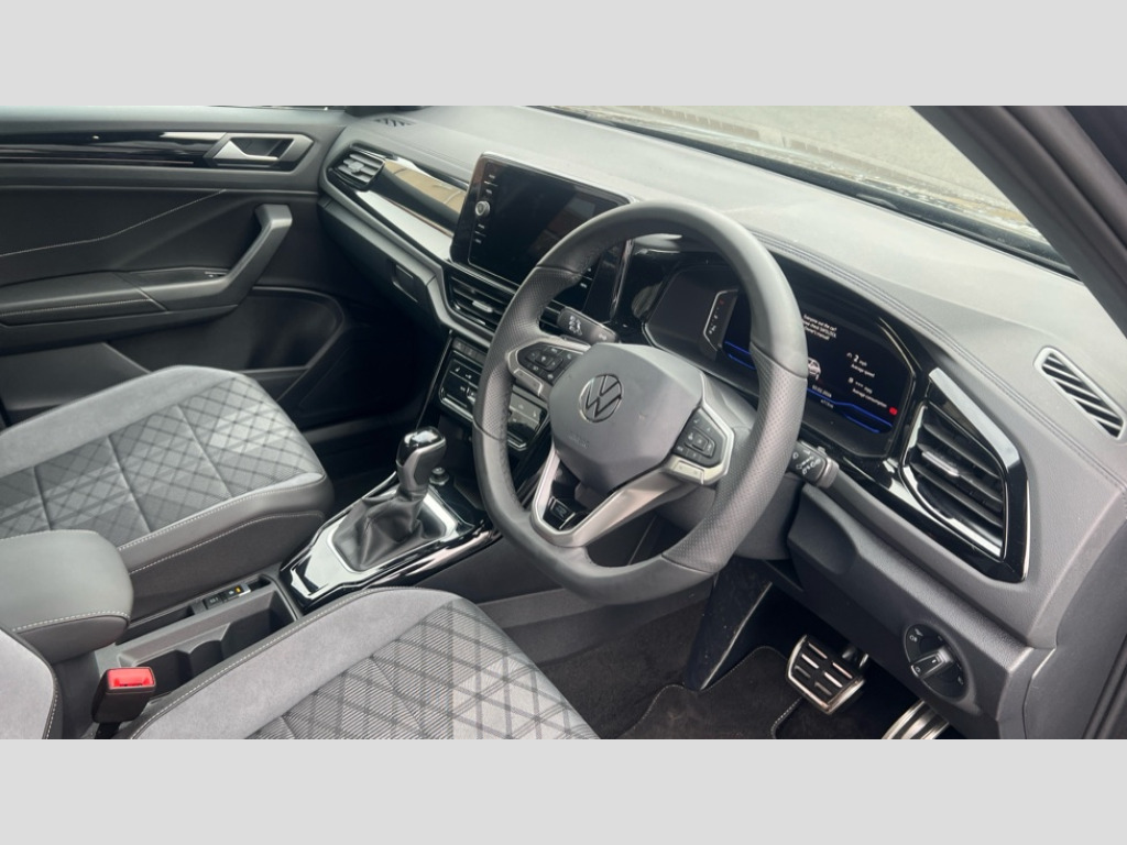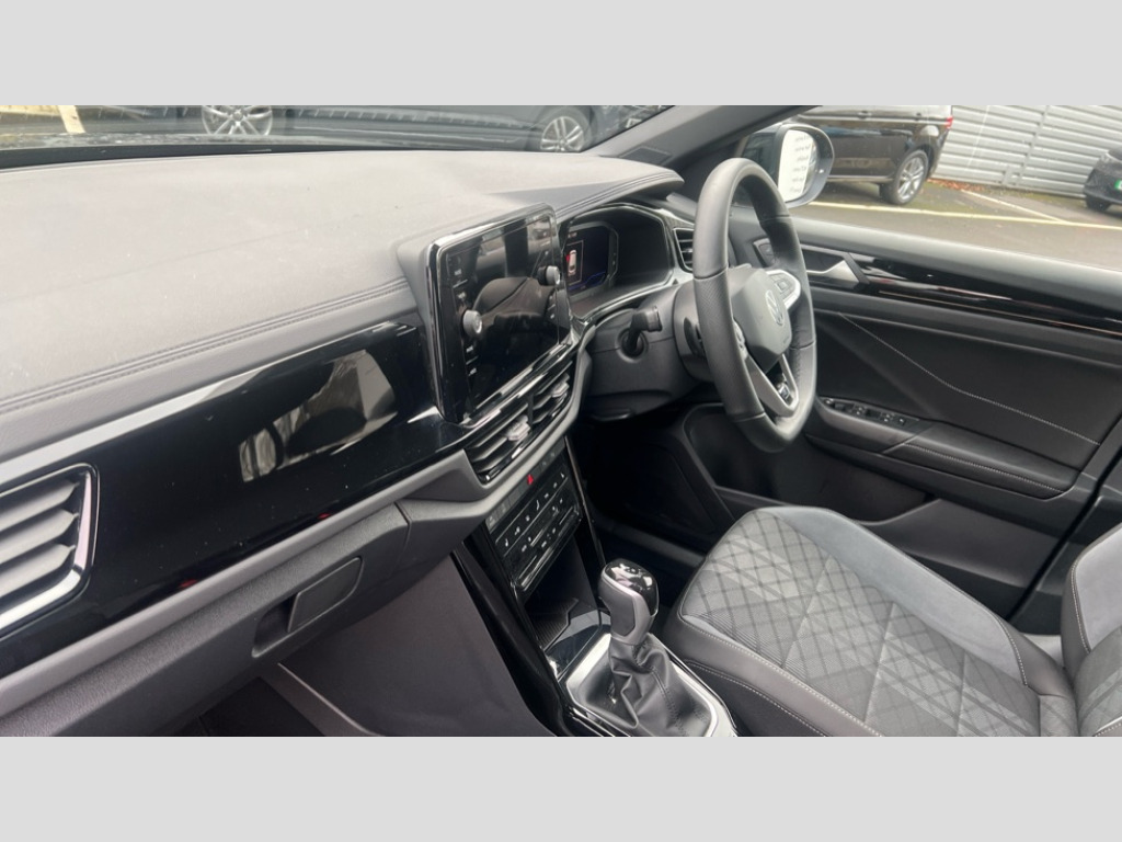 Volkswagen T-Roc 1.5 TSI Black Edition 5dr DSG 10.25" Digital cockpit pro, Advanced driver attention and drowsiness monitor, Emergency call service, Lane keeping system Lane Assist, Mobile phone interface, Modified key software - reduce switch off time for key status change to Long no motion, Online services, Park assist including front and rear parking sensors, Power assisted speed sensitive steering, Service interval indicator, Tailgate/trunk lid release from outside, Think blue trainer driver tips and journey analysis, Warning sound and light for front seatbelts unfastened, Wireless app connect, Battery regeneration during braking, Rear shock absorption chassis with increased ride height, Start/stop function with battery regeneration, DAB Digital radio, Diversity antenna for FM reception, Front and rear 6 speakers, Music playback - MP3, WMA and AAC files, Premium USB cable in choice of either Apple or Android smartphone compatibility, SD card slot, Simultaneous pairing of 2 compatible mobile devices, Title and cover art display, We Connect and We Connect Plus functionality, Auto dimming interior rear view mirror, Automatic hazard lights activation under emergency braking, Automatic headlight control with LED separate daytime running lights with coming/leaving home function, Dynamic cornering light, Electrically adjustable and heated door mirrors, Extended roof spoiler, Exterior mirrors aspherical on driver side, convex on front passenger side, External USB type C socket and charging sockets, Front windscreen wiper with intermittent wipe and 4 position delay, Heated rear window, Illuminated front grille, IQ LED matrix headlights, LED 3rd brake light, LED rear number plate lights, LED rear tail lights with dynamic turn signal, Light mode for poor weather, rain, fog or snow, Power windows with comfort operation and circuit breaker, R-Line design body coloured bumpers, Rain sensor, Rear exhaust tailpipe, Rear fog light on one side and reversing lights on both sides, Rear side wing doors, Rear wash/wipe with intermittent wipe setting, Remote electrically foldable door mirrors, puddle lights and reverse activated passenger's door mirror, 12V power socket in centre console, 3 rear head restraints, 3 seat bench in 2nd row, 4 load lashing points in luggage compartment, Air care climatronic air conditoning system with active combination filter and 2-zone temperature control, Artvelours cloth upholstery, Black roof lining, Chrome plated radiator grille inserts, air vent surrounds and light switch surrounds, Door and side trim panel with leatherette insert, Drawer under drivers seat, Driver seat height adjust, Driver's seat lumbar support, Front + rear carpet mats, Front centre armrest, Front comfort sports seats, Front cupholders x 2, Front footwell illumination, Front reading light, Front scuff plates with R Line logo, Front seat back storage pockets, Glove compartment door with light, Instrument lighting, white adjustable panel illumination, Interior ambient lighting and surround lighting, Interior light delay, Isofix child seat preparation, Leather gearshift handle, Leather wrapped multifunction steering wheel with paddle shift, Load-through provision with cup holder when folded down ('Unsplit rear seat bench, split folding backrest, with centre armrest), Luggage compartment lighting, Non-folding front passenger seat backrest, Passenger seat height adjuster, Passenger seat lumbar support, Single front passenger seat, Stainless steel pedals, Storage compartment in left and right luggage area, Storage compartment in rear doors, Storage compartments in driver and front passenger doors, Sunvisors with illuminated vanity mirrors, Variable boot floor, height adjustable and removable, Winter pack without heated windscreen washer jets - T-Roc, 3 point height adj front seatbelts + pretensioners, 3 point seatbelts in outer rear with ECE label, ABS, Child locks on rear doors, City emergency braking and pedestrian monitoring, Driver and front passenger airbag with front passenger airbag deactivation, Driver and front passenger safety-optimised head restraints, Drivers seatbelt reminder, Electronic parking brake, Electronic Stability Control (ESC) inc EDL (Electronic Differential Lock) and ASR (Traction Control), Front and rear passengers curtain airbag system including front side airbags, Front disc brakes, Hill start assist, Predictive pedestrian protection, Rear disc brakes, Two tone horn, Tyre pressure loss indicator, Volkswagen roadside assistance, Tool kit, Trims for alloy wheels, Tyre mobility kit including compressor and sealing foam