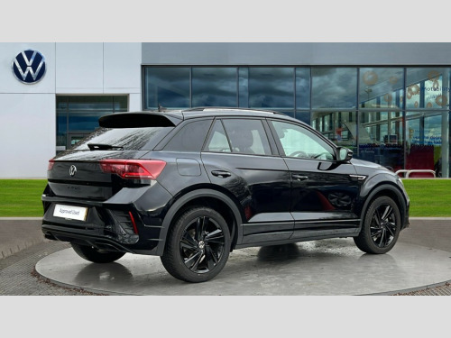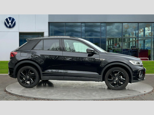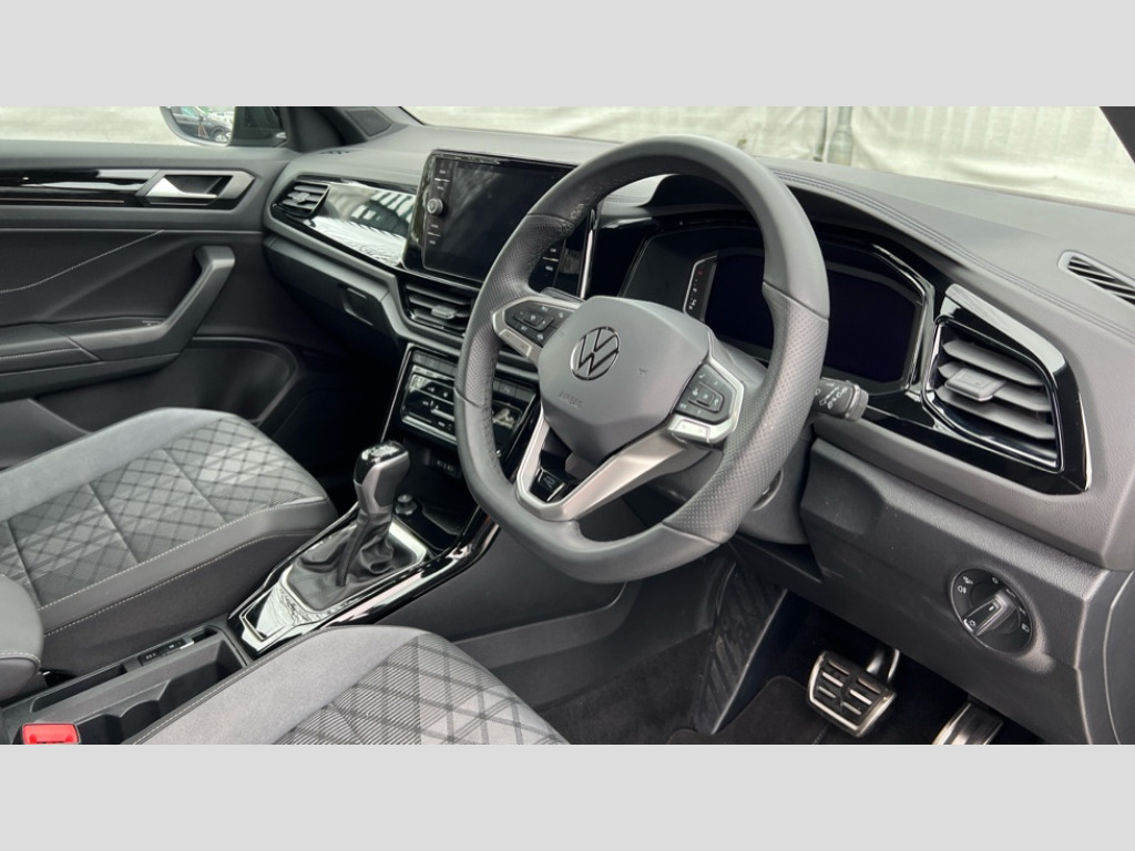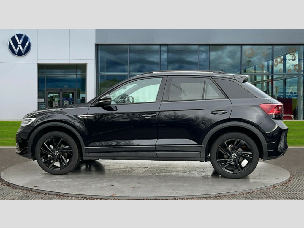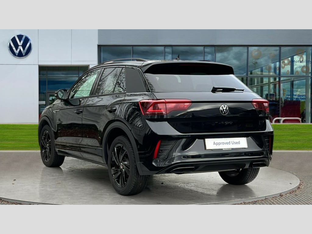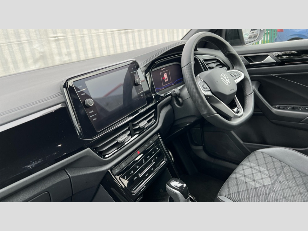 Volkswagen T-Roc 1.5 TSI Black Edition 5dr DSG 10.25" Digital cockpit pro, Advanced driver attention and drowsiness monitor, Emergency call service, Lane keeping system Lane Assist, Mobile phone interface, Modified key software - reduce switch off time for key status change to Long no motion, Online services, Park assist including front and rear parking sensors, Power assisted speed sensitive steering, Service interval indicator, Tailgate/trunk lid release from outside, Think blue trainer driver tips and journey analysis, Warning sound and light for front seatbelts unfastened, Wireless app connect, Battery regeneration during braking, Rear shock absorption chassis with increased ride height, Start/stop function with battery regeneration, DAB Digital radio, Diversity antenna for FM reception, Front and rear 6 speakers, Music playback - MP3, WMA and AAC files, Premium USB cable in choice of either Apple or Android smartphone compatibility, SD card slot, Simultaneous pairing of 2 compatible mobile devices, Title and cover art display, We Connect and We Connect Plus functionality, Auto dimming interior rear view mirror, Automatic hazard lights activation under emergency braking, Automatic headlight control with LED separate daytime running lights with coming/leaving home function, Dynamic cornering light, Electrically adjustable and heated door mirrors, Extended roof spoiler, Exterior mirrors aspherical on driver side, convex on front passenger side, External USB type C socket and charging sockets, Front windscreen wiper with intermittent wipe and 4 position delay, Heated rear window, Illuminated front grille, IQ LED matrix headlights, LED 3rd brake light, LED rear number plate lights, LED rear tail lights with dynamic turn signal, Light mode for poor weather, rain, fog or snow, Power windows with comfort operation and circuit breaker, R-Line design body coloured bumpers, Rain sensor, Rear exhaust tailpipe, Rear fog light on one side and reversing lights on both sides, Rear side wing doors, Rear wash/wipe with intermittent wipe setting, Remote electrically foldable door mirrors, puddle lights and reverse activated passenger's door mirror, 12V power socket in centre console, 3 rear head restraints, 3 seat bench in 2nd row, 4 load lashing points in luggage compartment, Air care climatronic air conditoning system with active combination filter and 2-zone temperature control, Artvelours cloth upholstery, Black roof lining, Chrome plated radiator grille inserts, air vent surrounds and light switch surrounds, Door and side trim panel with leatherette insert, Drawer under drivers seat, Driver seat height adjust, Driver's seat lumbar support, Front + rear carpet mats, Front centre armrest, Front comfort sports seats, Front cupholders x 2, Front footwell illumination, Front reading light, Front scuff plates with R Line logo, Front seat back storage pockets, Glove compartment door with light, Instrument lighting, white adjustable panel illumination, Interior ambient lighting and surround lighting, Interior light delay, Isofix child seat preparation, Leather gearshift handle, Leather wrapped multifunction steering wheel with paddle shift, Load-through provision with cup holder when folded down ('Unsplit rear seat bench, split folding backrest, with centre armrest), Luggage compartment lighting, Non-folding front passenger seat backrest, Passenger seat height adjuster, Passenger seat lumbar support, Single front passenger seat, Stainless steel pedals, Storage compartment in left and right luggage area, Storage compartment in rear doors, Storage compartments in driver and front passenger doors, Sunvisors with illuminated vanity mirrors, Variable boot floor, height adjustable and removable, Winter pack without heated windscreen washer jets - T-Roc, 3 point height adj front seatbelts + pretensioners, 3 point seatbelts in outer rear with ECE label, ABS, Child locks on rear doors, City emergency braking and pedestrian monitoring, Driver and front passenger airbag with front passenger airbag deactivation, Driver and front passenger safety-optimised head restraints, Drivers seatbelt reminder, Electronic parking brake, Electronic Stability Control (ESC) inc EDL (Electronic Differential Lock) and ASR (Traction Control), Front and rear passengers curtain airbag system including front side airbags, Front disc brakes, Hill start assist, Predictive pedestrian protection, Rear disc brakes, Two tone horn, Tyre pressure loss indicator, Volkswagen roadside assistance, Tool kit, Trims for alloy wheels, Tyre mobility kit including compressor and sealing foam