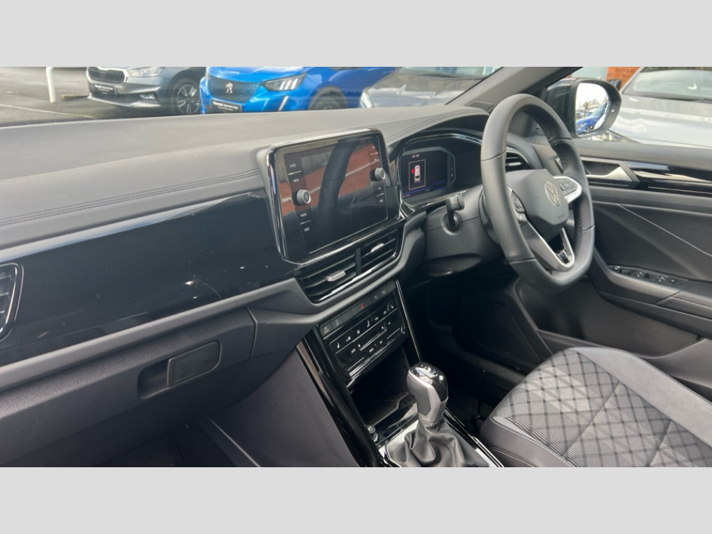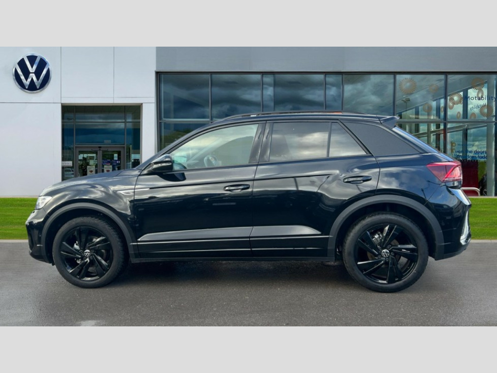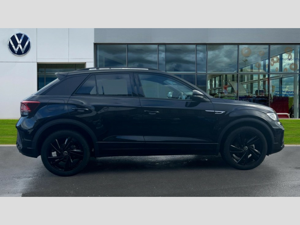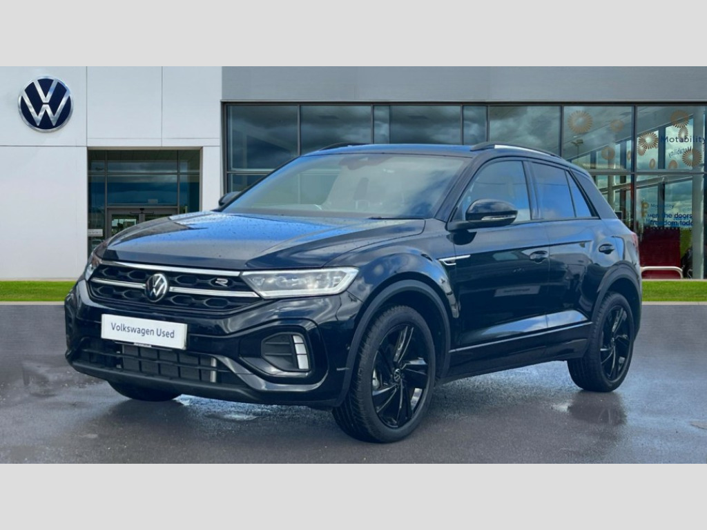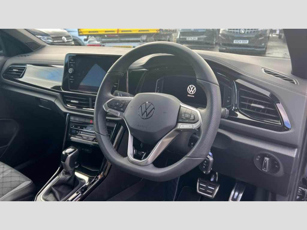 Volkswagen T-Roc 1.5 TSI Black Edition 5dr DSG 10.25" Digital cockpit pro, Advanced driver attention and drowsiness monitor, Emergency call service, Lane keeping system Lane Assist, Mobile phone interface, Modified key software - reduce switch off time for key status change to Long no motion, Online services, Park assist including front and rear parking sensors, Power assisted speed sensitive steering, Service interval indicator, Tailgate/trunk lid release from outside, Think blue trainer driver tips and journey analysis, Warning sound and light for front seatbelts unfastened, Wireless app connect, Battery regeneration during braking, Rear shock absorption chassis with increased ride height, Start/stop function with battery regeneration, DAB Digital radio, Diversity antenna for FM reception, Front and rear 6 speakers, Music playback - MP3, WMA and AAC files, Premium USB cable in choice of either Apple or Android smartphone compatibility, SD card slot, Simultaneous pairing of 2 compatible mobile devices, Title and cover art display, We Connect and We Connect Plus functionality, Auto dimming interior rear view mirror, Automatic hazard lights activation under emergency braking, Automatic headlight control with LED separate daytime running lights with coming/leaving home function, Dynamic cornering light, Electrically adjustable and heated door mirrors, Extended roof spoiler, Exterior mirrors aspherical on driver side, convex on front passenger side, External USB type C socket and charging sockets, Front windscreen wiper with intermittent wipe and 4 position delay, Heated rear window, Illuminated front grille, IQ LED matrix headlights, LED 3rd brake light, LED rear number plate lights, LED rear tail lights with dynamic turn signal, Light mode for poor weather, rain, fog or snow, Power windows with comfort operation and circuit breaker, R-Line design body coloured bumpers, Rain sensor, Rear exhaust tailpipe, Rear fog light on one side and reversing lights on both sides, Rear side wing doors, Rear wash/wipe with intermittent wipe setting, Remote electrically foldable door mirrors, puddle lights and reverse activated passenger's door mirror, 12V power socket in centre console, 3 rear head restraints, 3 seat bench in 2nd row, 4 load lashing points in luggage compartment, Air care climatronic air conditoning system with active combination filter and 2-zone temperature control, Artvelours cloth upholstery, Black roof lining, Chrome plated radiator grille inserts, air vent surrounds and light switch surrounds, Door and side trim panel with leatherette insert, Drawer under drivers seat, Driver seat height adjust, Driver's seat lumbar support, Front + rear carpet mats, Front centre armrest, Front comfort sports seats, Front cupholders x 2, Front footwell illumination, Front reading light, Front scuff plates with R Line logo, Front seat back storage pockets, Glove compartment door with light, Instrument lighting, white adjustable panel illumination, Interior ambient lighting and surround lighting, Interior light delay, Isofix child seat preparation, Leather gearshift handle, Leather wrapped multifunction steering wheel with paddle shift, Load-through provision with cup holder when folded down ('Unsplit rear seat bench, split folding backrest, with centre armrest), Luggage compartment lighting, Non-folding front passenger seat backrest, Passenger seat height adjuster, Passenger seat lumbar support, Single front passenger seat, Stainless steel pedals, Storage compartment in left and right luggage area, Storage compartment in rear doors, Storage compartments in driver and front passenger doors, Sunvisors with illuminated vanity mirrors, Variable boot floor, height adjustable and removable, Winter pack without heated windscreen washer jets - T-Roc, 3 point height adj front seatbelts + pretensioners, 3 point seatbelts in outer rear with ECE label, ABS, Child locks on rear doors, City emergency braking and pedestrian monitoring, Driver and front passenger airbag with front passenger airbag deactivation, Driver and front passenger safety-optimised head restraints, Drivers seatbelt reminder, Electronic parking brake, Electronic Stability Control (ESC) inc EDL (Electronic Differential Lock) and ASR (Traction Control), Front and rear passengers curtain airbag system including front side airbags, Front disc brakes, Hill start assist, Predictive pedestrian protection, Rear disc brakes, Two tone horn, Tyre pressure loss indicator, Volkswagen roadside assistance, Tool kit, Trims for alloy wheels, Tyre mobility kit including compressor and sealing foam