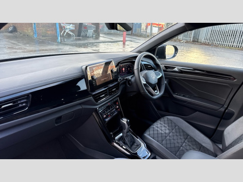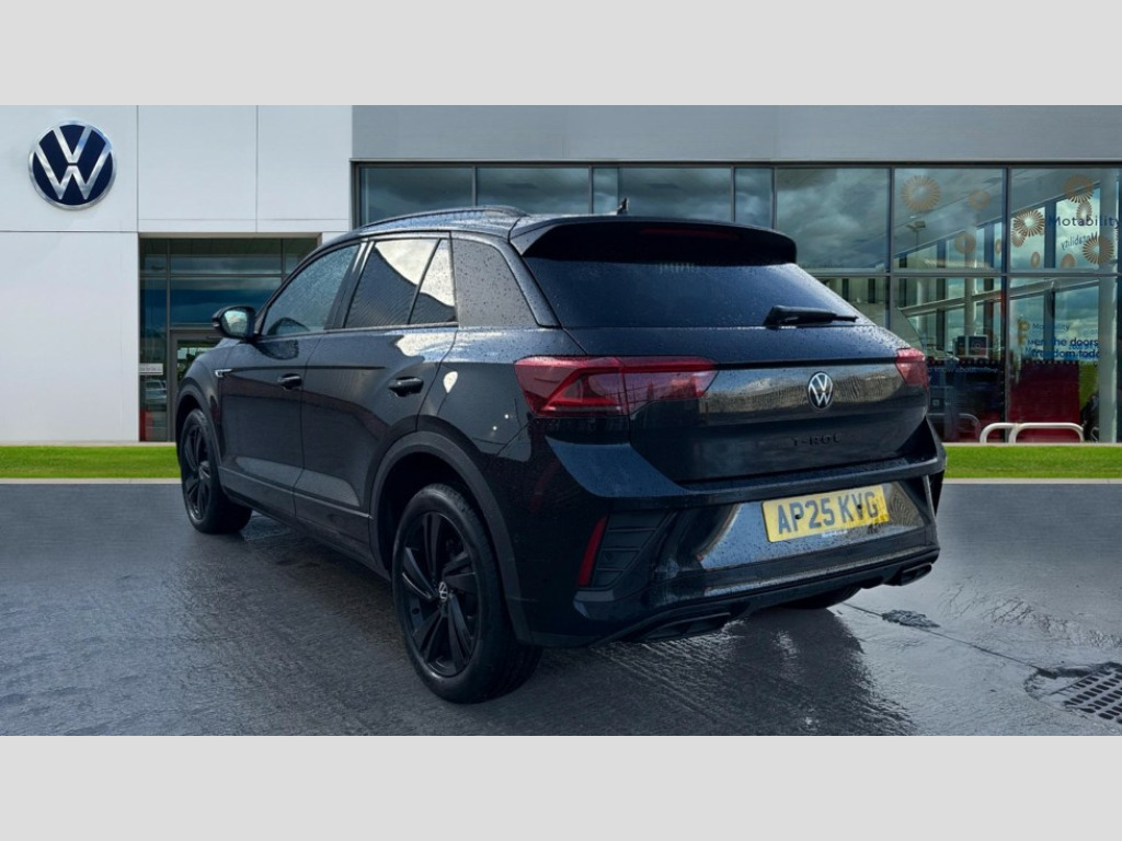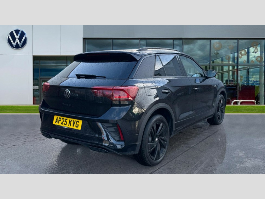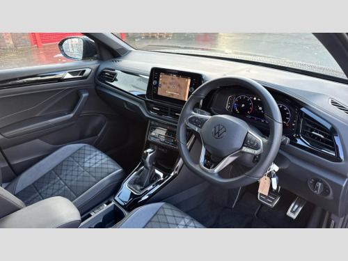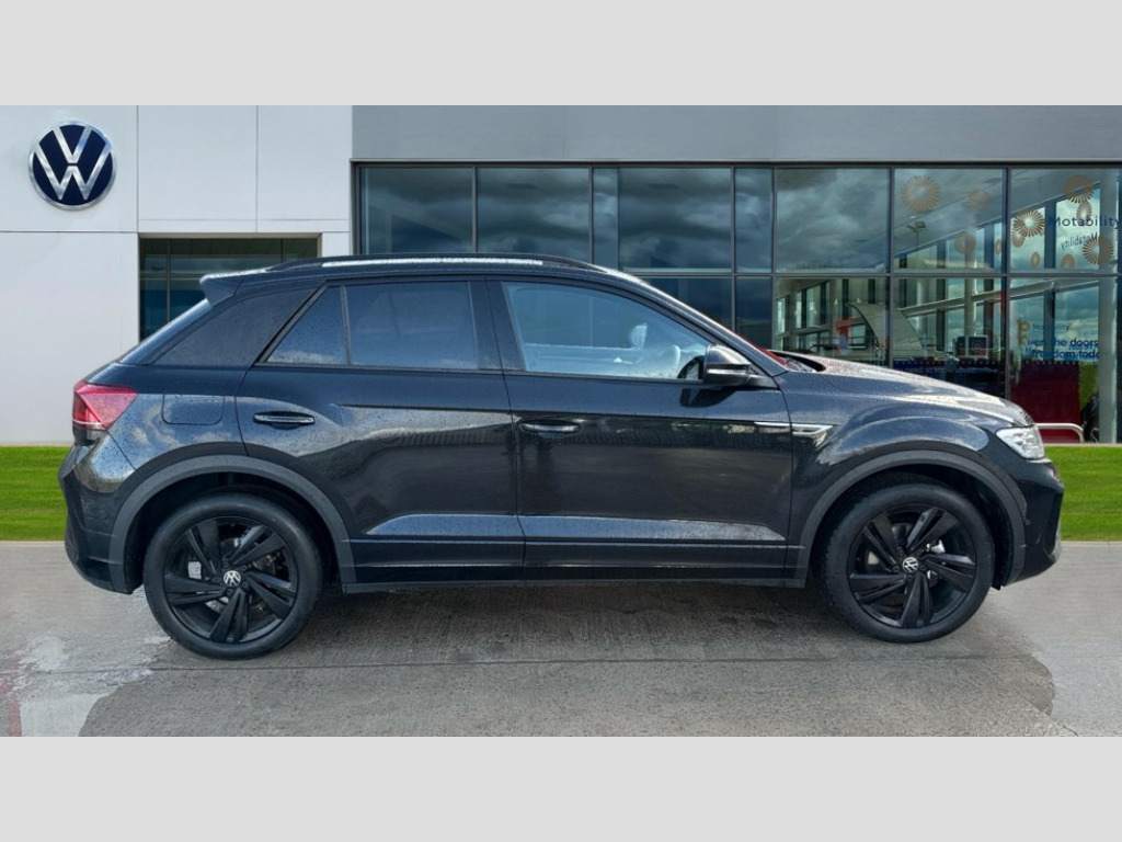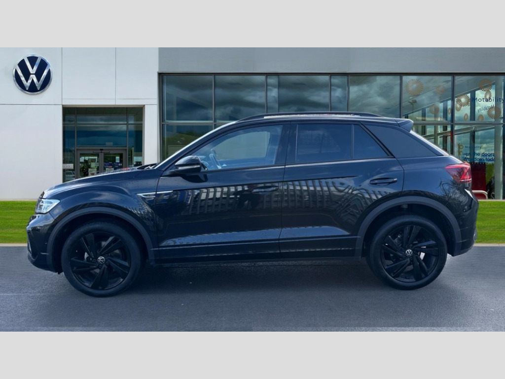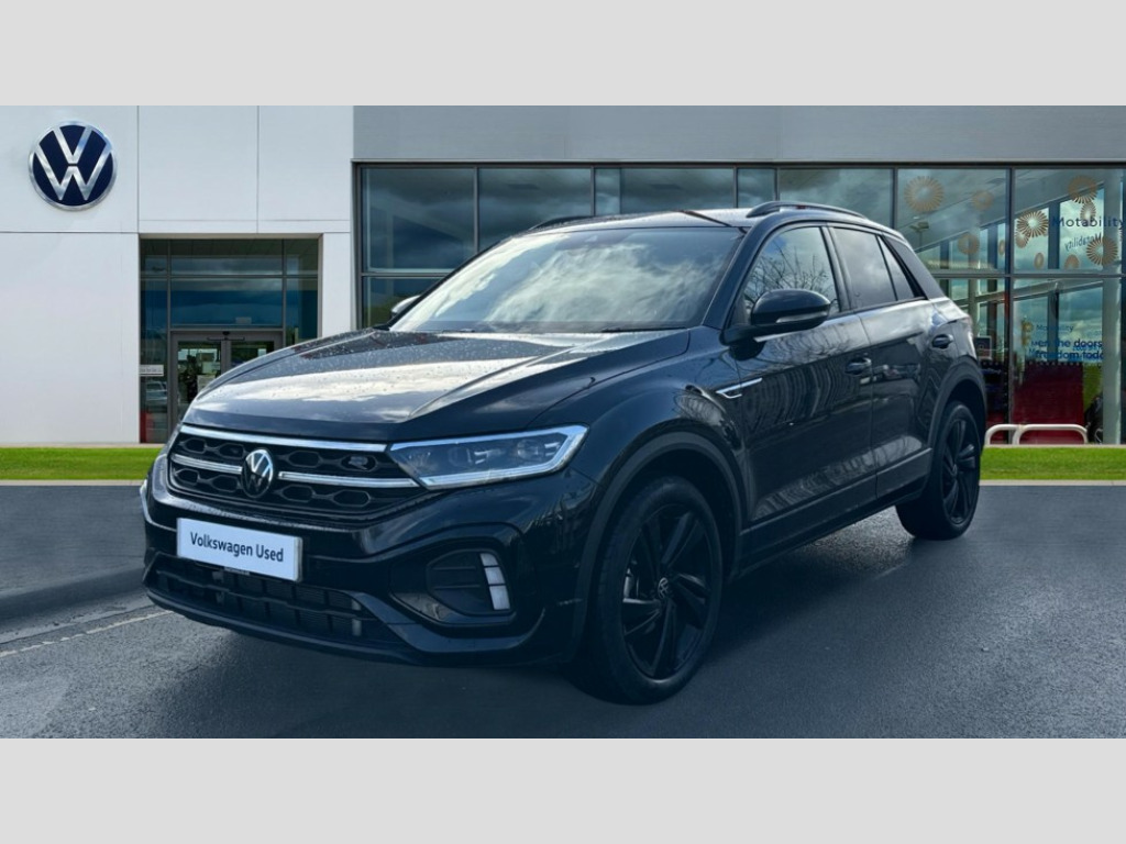 Volkswagen T-Roc 1.5 TSI Black Edition 5dr DSG 10.25" Digital cockpit pro, Advanced driver attention and drowsiness monitor, Emergency call service, Lane keeping system Lane Assist, Mobile phone interface, Modified key software - reduce switch off time for key status change to Long no motion, Online services, Park assist including front and rear parking sensors, Power assisted speed sensitive steering, Service interval indicator, Tailgate/trunk lid release from outside, Think blue trainer driver tips and journey analysis, Warning sound and light for front seatbelts unfastened, Wireless app connect, Battery regeneration during braking, Rear shock absorption chassis with increased ride height, Start/stop function with battery regeneration, DAB Digital radio, Diversity antenna for FM reception, Front and rear 6 speakers, Music playback - MP3, WMA and AAC files, Premium USB cable in choice of either Apple or Android smartphone compatibility, SD card slot, Simultaneous pairing of 2 compatible mobile devices, Title and cover art display, We Connect and We Connect Plus functionality, Auto dimming interior rear view mirror, Automatic hazard lights activation under emergency braking, Automatic headlight control with LED separate daytime running lights with coming/leaving home function, Dynamic cornering light, Electrically adjustable and heated door mirrors, Extended roof spoiler, Exterior mirrors aspherical on driver side, convex on front passenger side, External USB type C socket and charging sockets, Front windscreen wiper with intermittent wipe and 4 position delay, Heated rear window, Illuminated front grille, IQ LED matrix headlights, LED 3rd brake light, LED rear number plate lights, LED rear tail lights with dynamic turn signal, Light mode for poor weather, rain, fog or snow, Power windows with comfort operation and circuit breaker, R-Line design body coloured bumpers, Rain sensor, Rear exhaust tailpipe, Rear fog light on one side and reversing lights on both sides, Rear side wing doors, Rear wash/wipe with intermittent wipe setting, Remote electrically foldable door mirrors, puddle lights and reverse activated passenger's door mirror, 12V power socket in centre console, 3 rear head restraints, 3 seat bench in 2nd row, 4 load lashing points in luggage compartment, Air care climatronic air conditoning system with active combination filter and 2-zone temperature control, Artvelours cloth upholstery, Black roof lining, Chrome plated radiator grille inserts, air vent surrounds and light switch surrounds, Door and side trim panel with leatherette insert, Drawer under drivers seat, Driver seat height adjust, Driver's seat lumbar support, Front + rear carpet mats, Front centre armrest, Front comfort sports seats, Front cupholders x 2, Front footwell illumination, Front reading light, Front scuff plates with R Line logo, Front seat back storage pockets, Glove compartment door with light, Instrument lighting, white adjustable panel illumination, Interior ambient lighting and surround lighting, Interior light delay, Isofix child seat preparation, Leather gearshift handle, Leather wrapped multifunction steering wheel with paddle shift, Load-through provision with cup holder when folded down ('Unsplit rear seat bench, split folding backrest, with centre armrest), Luggage compartment lighting, Non-folding front passenger seat backrest, Passenger seat height adjuster, Passenger seat lumbar support, Single front passenger seat, Stainless steel pedals, Storage compartment in left and right luggage area, Storage compartment in rear doors, Storage compartments in driver and front passenger doors, Sunvisors with illuminated vanity mirrors, Variable boot floor, height adjustable and removable, Winter pack without heated windscreen washer jets - T-Roc, 3 point height adj front seatbelts + pretensioners, 3 point seatbelts in outer rear with ECE label, ABS, Child locks on rear doors, City emergency braking and pedestrian monitoring, Driver and front passenger airbag with front passenger airbag deactivation, Driver and front passenger safety-optimised head restraints, Drivers seatbelt reminder, Electronic parking brake, Electronic Stability Control (ESC) inc EDL (Electronic Differential Lock) and ASR (Traction Control), Front and rear passengers curtain airbag system including front side airbags, Front disc brakes, Hill start assist, Predictive pedestrian protection, Rear disc brakes, Two tone horn, Tyre pressure loss indicator, Volkswagen roadside assistance, Tool kit, Trims for alloy wheels, Tyre mobility kit including compressor and sealing foam