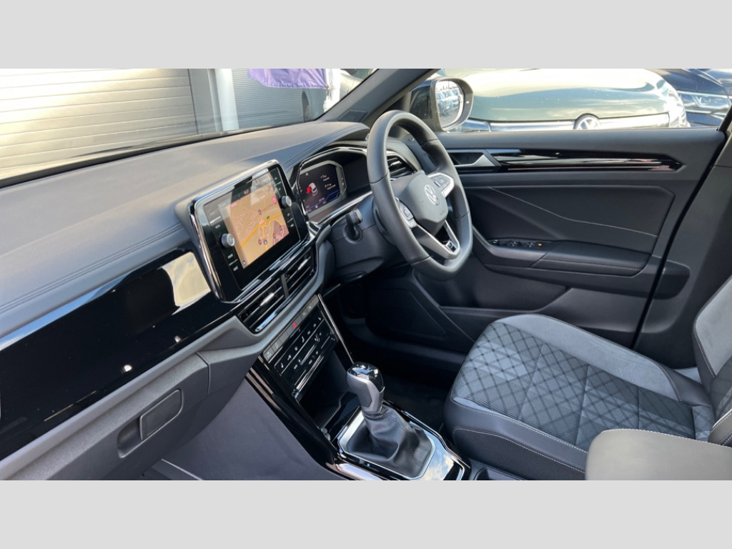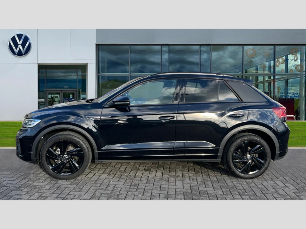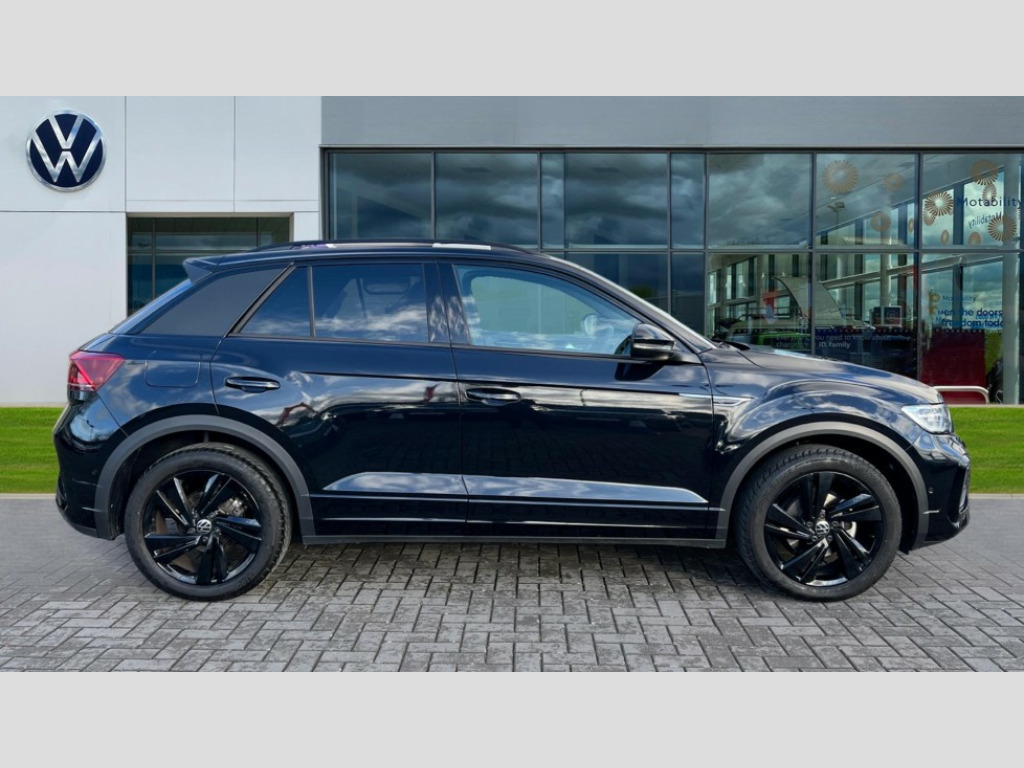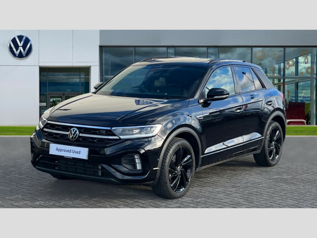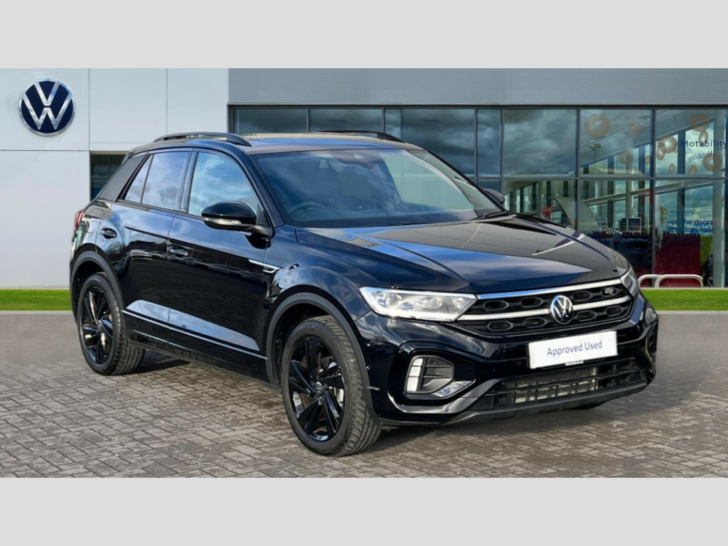 Volkswagen T-Roc 1.5 TSI Black Edition 5dr DSG 10.25" Digital cockpit pro, Advanced driver attention and drowsiness monitor, Emergency call service, Lane keeping system Lane Assist, Mobile phone interface, Modified key software - reduce switch off time for key status change to Long no motion, Online services, Park assist including front and rear parking sensors, Power assisted speed sensitive steering, Service interval indicator, Tailgate/trunk lid release from outside, Think blue trainer driver tips and journey analysis, Warning sound and light for front seatbelts unfastened, Wireless app connect, Battery regeneration during braking, Rear shock absorption chassis with increased ride height, Start/stop function with battery regeneration, DAB Digital radio, Diversity antenna for FM reception, Front and rear 6 speakers, Music playback - MP3, WMA and AAC files, Premium USB cable in choice of either Apple or Android smartphone compatibility, SD card slot, Simultaneous pairing of 2 compatible mobile devices, Title and cover art display, We Connect and We Connect Plus functionality, Auto dimming interior rear view mirror, Automatic hazard lights activation under emergency braking, Automatic headlight control with LED separate daytime running lights with coming/leaving home function, Dynamic cornering light, Electrically adjustable and heated door mirrors, Extended roof spoiler, Exterior mirrors aspherical on driver side, convex on front passenger side, External USB type C socket and charging sockets, Front windscreen wiper with intermittent wipe and 4 position delay, Heated rear window, Illuminated front grille, IQ LED matrix headlights, LED 3rd brake light, LED rear number plate lights, LED rear tail lights with dynamic turn signal, Light mode for poor weather, rain, fog or snow, Power windows with comfort operation and circuit breaker, R-Line design body coloured bumpers, Rain sensor, Rear exhaust tailpipe, Rear fog light on one side and reversing lights on both sides, Rear side wing doors, Rear wash/wipe with intermittent wipe setting, Remote electrically foldable door mirrors, puddle lights and reverse activated passenger's door mirror, 12V power socket in centre console, 3 rear head restraints, 3 seat bench in 2nd row, 4 load lashing points in luggage compartment, Air care climatronic air conditoning system with active combination filter and 2-zone temperature control, Artvelours cloth upholstery, Black roof lining, Chrome plated radiator grille inserts, air vent surrounds and light switch surrounds, Door and side trim panel with leatherette insert, Drawer under drivers seat, Driver seat height adjust, Driver's seat lumbar support, Front + rear carpet mats, Front centre armrest, Front comfort sports seats, Front cupholders x 2, Front footwell illumination, Front reading light, Front scuff plates with R Line logo, Front seat back storage pockets, Glove compartment door with light, Instrument lighting, white adjustable panel illumination, Interior ambient lighting and surround lighting, Interior light delay, Isofix child seat preparation, Leather gearshift handle, Leather wrapped multifunction steering wheel with paddle shift, Load-through provision with cup holder when folded down ('Unsplit rear seat bench, split folding backrest, with centre armrest), Luggage compartment lighting, Non-folding front passenger seat backrest, Passenger seat height adjuster, Passenger seat lumbar support, Single front passenger seat, Stainless steel pedals, Storage compartment in left and right luggage area, Storage compartment in rear doors, Storage compartments in driver and front passenger doors, Sunvisors with illuminated vanity mirrors, Variable boot floor, height adjustable and removable, Winter pack without heated windscreen washer jets - T-Roc, 3 point height adj front seatbelts + pretensioners, 3 point seatbelts in outer rear with ECE label, ABS, Child locks on rear doors, City emergency braking and pedestrian monitoring, Driver and front passenger airbag with front passenger airbag deactivation, Driver and front passenger safety-optimised head restraints, Drivers seatbelt reminder, Electronic parking brake, Electronic Stability Control (ESC) inc EDL (Electronic Differential Lock) and ASR (Traction Control), Front and rear passengers curtain airbag system including front side airbags, Front disc brakes, Hill start assist, Predictive pedestrian protection, Rear disc brakes, Two tone horn, Tyre pressure loss indicator, Volkswagen roadside assistance, Tool kit, Trims for alloy wheels, Tyre mobility kit including compressor and sealing foam