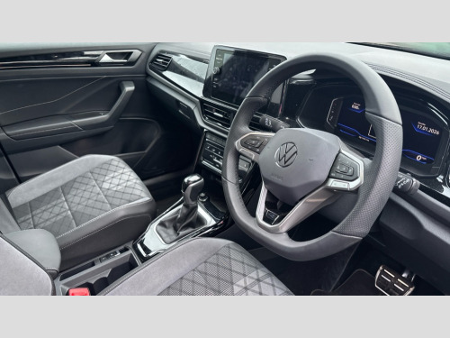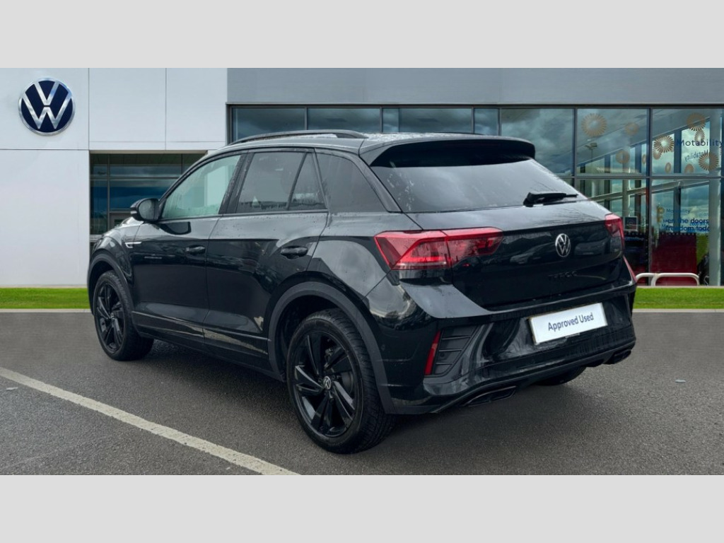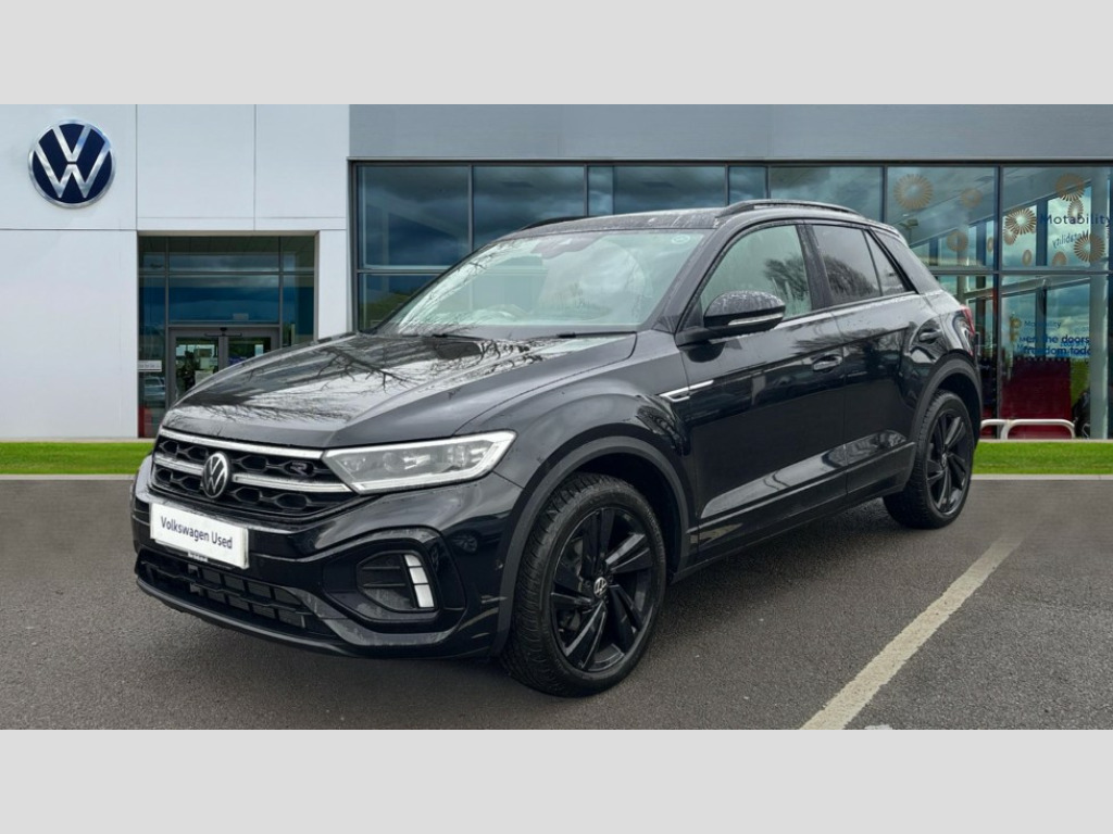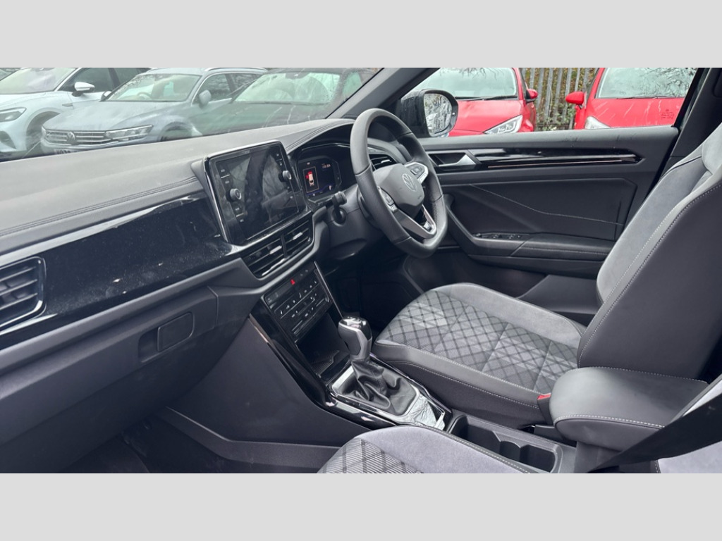 Volkswagen T-Roc 1.5 TSI Black Edition 5dr DSG 10.25" Digital cockpit pro, Advanced driver attention and drowsiness monitor, Emergency call service, Lane keeping system Lane Assist, Mobile phone interface, Modified key software - reduce switch off time for key status change to Long no motion, Online services, Park assist including front and rear parking sensors, Power assisted speed sensitive steering, Service interval indicator, Tailgate/trunk lid release from outside, Think blue trainer driver tips and journey analysis, Warning sound and light for front seatbelts unfastened, Wireless app connect, Battery regeneration during braking, Rear shock absorption chassis with increased ride height, Start/stop function with battery regeneration, DAB Digital radio, Diversity antenna for FM reception, Front and rear 6 speakers, Music playback - MP3, WMA and AAC files, Premium USB cable in choice of either Apple or Android smartphone compatibility, SD card slot, Simultaneous pairing of 2 compatible mobile devices, Title and cover art display, We Connect and We Connect Plus functionality, Auto dimming interior rear view mirror, Automatic hazard lights activation under emergency braking, Automatic headlight control with LED separate daytime running lights with coming/leaving home function, Dynamic cornering light, Electrically adjustable and heated door mirrors, Extended roof spoiler, Exterior mirrors aspherical on driver side, convex on front passenger side, External USB type C socket and charging sockets, Front windscreen wiper with intermittent wipe and 4 position delay, Heated rear window, Illuminated front grille, IQ LED matrix headlights, LED 3rd brake light, LED rear number plate lights, LED rear tail lights with dynamic turn signal, Light mode for poor weather, rain, fog or snow, Power windows with comfort operation and circuit breaker, R-Line design body coloured bumpers, Rain sensor, Rear exhaust tailpipe, Rear fog light on one side and reversing lights on both sides, Rear side wing doors, Rear wash/wipe with intermittent wipe setting, Remote electrically foldable door mirrors, puddle lights and reverse activated passenger's door mirror, 12V power socket in centre console, 3 rear head restraints, 3 seat bench in 2nd row, 4 load lashing points in luggage compartment, Air care climatronic air conditoning system with active combination filter and 2-zone temperature control, Artvelours cloth upholstery, Black roof lining, Chrome plated radiator grille inserts, air vent surrounds and light switch surrounds, Door and side trim panel with leatherette insert, Drawer under drivers seat, Driver seat height adjust, Driver's seat lumbar support, Front + rear carpet mats, Front centre armrest, Front comfort sports seats, Front cupholders x 2, Front footwell illumination, Front reading light, Front scuff plates with R Line logo, Front seat back storage pockets, Glove compartment door with light, Instrument lighting, white adjustable panel illumination, Interior ambient lighting and surround lighting, Interior light delay, Isofix child seat preparation, Leather gearshift handle, Leather wrapped multifunction steering wheel with paddle shift, Load-through provision with cup holder when folded down ('Unsplit rear seat bench, split folding backrest, with centre armrest), Luggage compartment lighting, Non-folding front passenger seat backrest, Passenger seat height adjuster, Passenger seat lumbar support, Single front passenger seat, Stainless steel pedals, Storage compartment in left and right luggage area, Storage compartment in rear doors, Storage compartments in driver and front passenger doors, Sunvisors with illuminated vanity mirrors, Variable boot floor, height adjustable and removable, Winter pack without heated windscreen washer jets - T-Roc, 3 point height adj front seatbelts + pretensioners, 3 point seatbelts in outer rear with ECE label, ABS, Child locks on rear doors, City emergency braking and pedestrian monitoring, Driver and front passenger airbag with front passenger airbag deactivation, Driver and front passenger safety-optimised head restraints, Drivers seatbelt reminder, Electronic parking brake, Electronic Stability Control (ESC) inc EDL (Electronic Differential Lock) and ASR (Traction Control), Front and rear passengers curtain airbag system including front side airbags, Front disc brakes, Hill start assist, Predictive pedestrian protection, Rear disc brakes, Two tone horn, Tyre pressure loss indicator, Volkswagen roadside assistance, Tool kit, Trims for alloy wheels, Tyre mobility kit including compressor and sealing foam