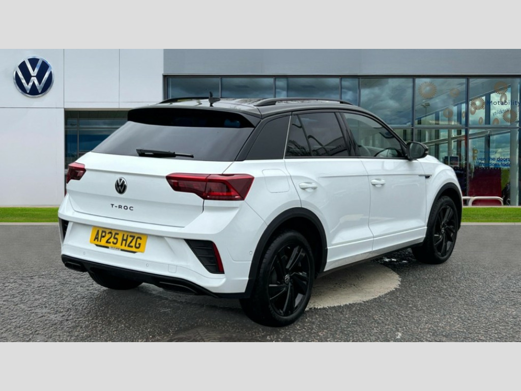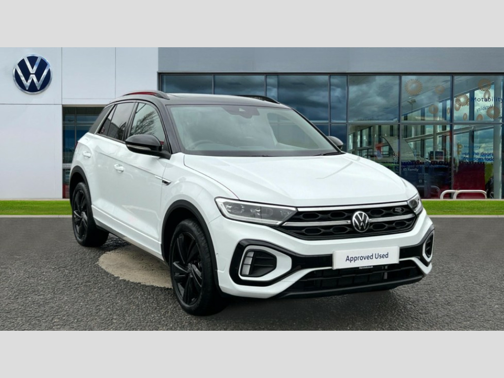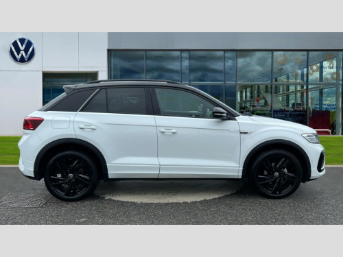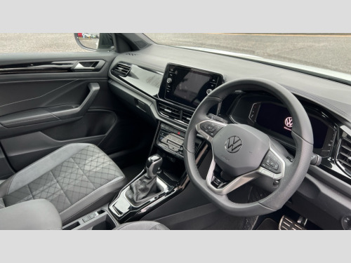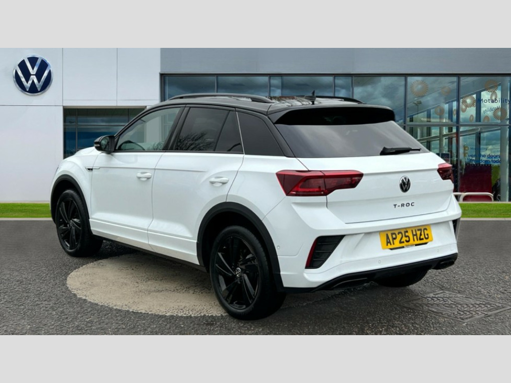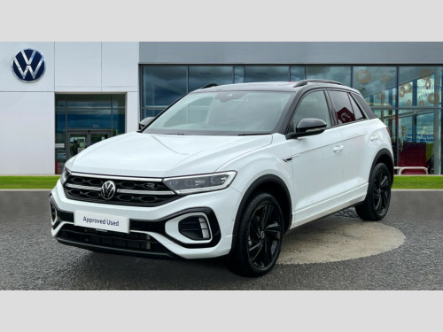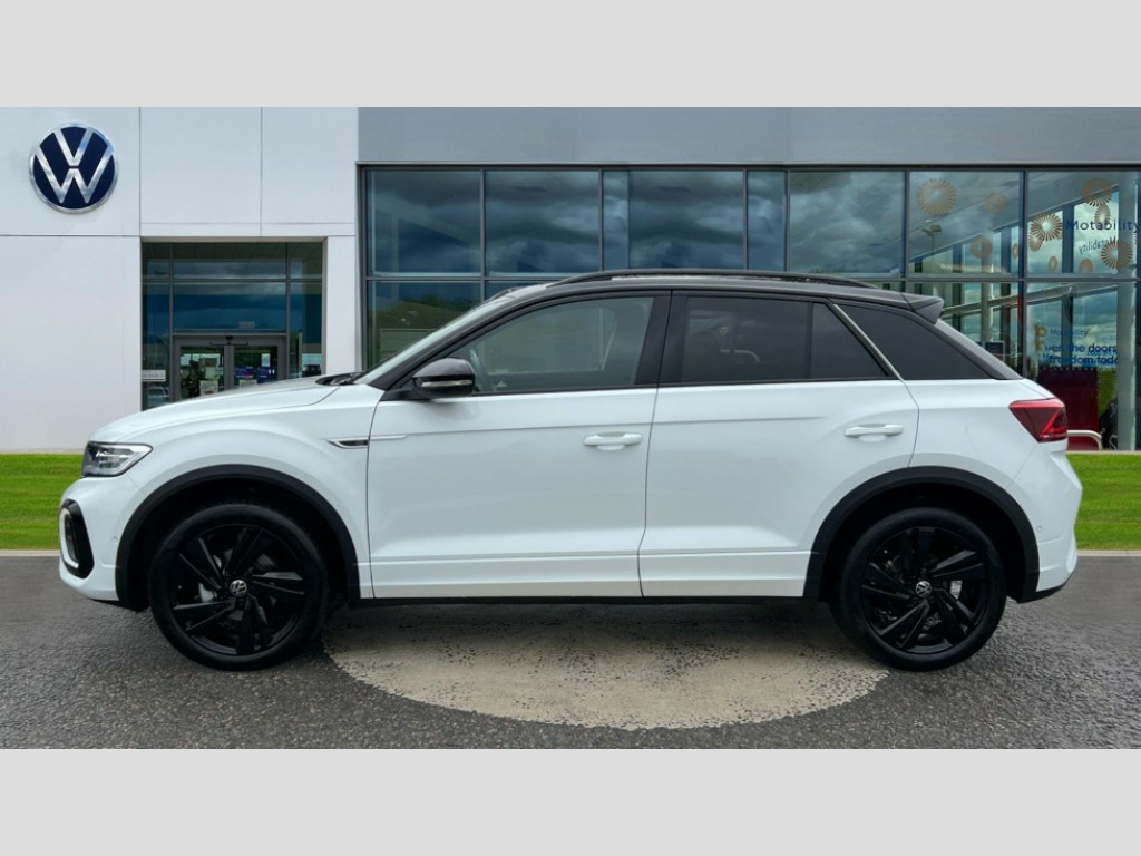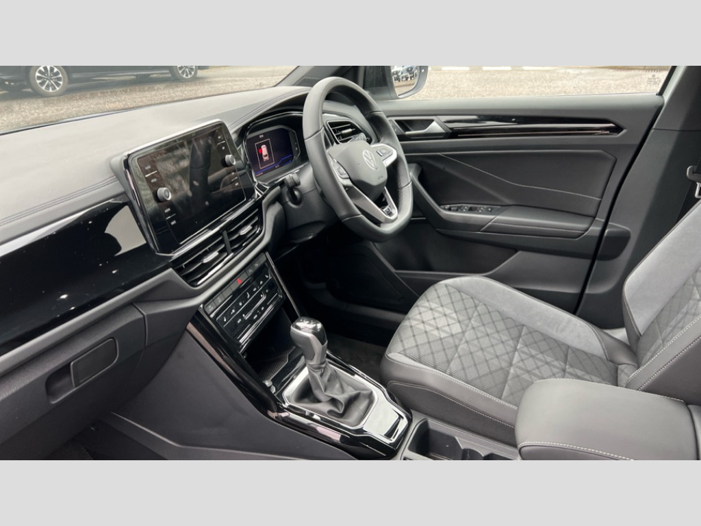 Volkswagen T-Roc 1.5 TSI Black Edition 5dr DSG 10.25" Digital cockpit pro, Advanced driver attention and drowsiness monitor, Emergency call service, Lane keeping system Lane Assist, Mobile phone interface, Modified key software - reduce switch off time for key status change to Long no motion, Online services, Park assist including front and rear parking sensors, Power assisted speed sensitive steering, Service interval indicator, Tailgate/trunk lid release from outside, Think blue trainer driver tips and journey analysis, Warning sound and light for front seatbelts unfastened, Wireless app connect, Battery regeneration during braking, Rear shock absorption chassis with increased ride height, Start/stop function with battery regeneration, DAB Digital radio, Diversity antenna for FM reception, Front and rear 6 speakers, Music playback - MP3, WMA and AAC files, Premium USB cable in choice of either Apple or Android smartphone compatibility, SD card slot, Simultaneous pairing of 2 compatible mobile devices, Title and cover art display, We Connect and We Connect Plus functionality, Auto dimming interior rear view mirror, Automatic hazard lights activation under emergency braking, Automatic headlight control with LED separate daytime running lights with coming/leaving home function, Dynamic cornering light, Electrically adjustable and heated door mirrors, Extended roof spoiler, Exterior mirrors aspherical on driver side, convex on front passenger side, External USB type C socket and charging sockets, Front windscreen wiper with intermittent wipe and 4 position delay, Heated rear window, Illuminated front grille, IQ LED matrix headlights, LED 3rd brake light, LED rear number plate lights, LED rear tail lights with dynamic turn signal, Light mode for poor weather, rain, fog or snow, Power windows with comfort operation and circuit breaker, R-Line design body coloured bumpers, Rain sensor, Rear exhaust tailpipe, Rear fog light on one side and reversing lights on both sides, Rear side wing doors, Rear wash/wipe with intermittent wipe setting, Remote electrically foldable door mirrors, puddle lights and reverse activated passenger's door mirror, 12V power socket in centre console, 3 rear head restraints, 3 seat bench in 2nd row, 4 load lashing points in luggage compartment, Air care climatronic air conditoning system with active combination filter and 2-zone temperature control, Artvelours cloth upholstery, Black roof lining, Chrome plated radiator grille inserts, air vent surrounds and light switch surrounds, Door and side trim panel with leatherette insert, Drawer under drivers seat, Driver seat height adjust, Driver's seat lumbar support, Front + rear carpet mats, Front centre armrest, Front comfort sports seats, Front cupholders x 2, Front footwell illumination, Front reading light, Front scuff plates with R Line logo, Front seat back storage pockets, Glove compartment door with light, Instrument lighting, white adjustable panel illumination, Interior ambient lighting and surround lighting, Interior light delay, Isofix child seat preparation, Leather gearshift handle, Leather wrapped multifunction steering wheel with paddle shift, Load-through provision with cup holder when folded down ('Unsplit rear seat bench, split folding backrest, with centre armrest), Luggage compartment lighting, Non-folding front passenger seat backrest, Passenger seat height adjuster, Passenger seat lumbar support, Single front passenger seat, Stainless steel pedals, Storage compartment in left and right luggage area, Storage compartment in rear doors, Storage compartments in driver and front passenger doors, Sunvisors with illuminated vanity mirrors, Variable boot floor, height adjustable and removable, Winter pack without heated windscreen washer jets - T-Roc, 3 point height adj front seatbelts + pretensioners, 3 point seatbelts in outer rear with ECE label, ABS, Child locks on rear doors, City emergency braking and pedestrian monitoring, Driver and front passenger airbag with front passenger airbag deactivation, Driver and front passenger safety-optimised head restraints, Drivers seatbelt reminder, Electronic parking brake, Electronic Stability Control (ESC) inc EDL (Electronic Differential Lock) and ASR (Traction Control), Front and rear passengers curtain airbag system including front side airbags, Front disc brakes, Hill start assist, Predictive pedestrian protection, Rear disc brakes, Two tone horn, Tyre pressure loss indicator, Volkswagen roadside assistance, Tool kit, Trims for alloy wheels, Tyre mobility kit including compressor and sealing foam