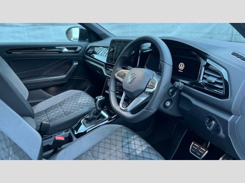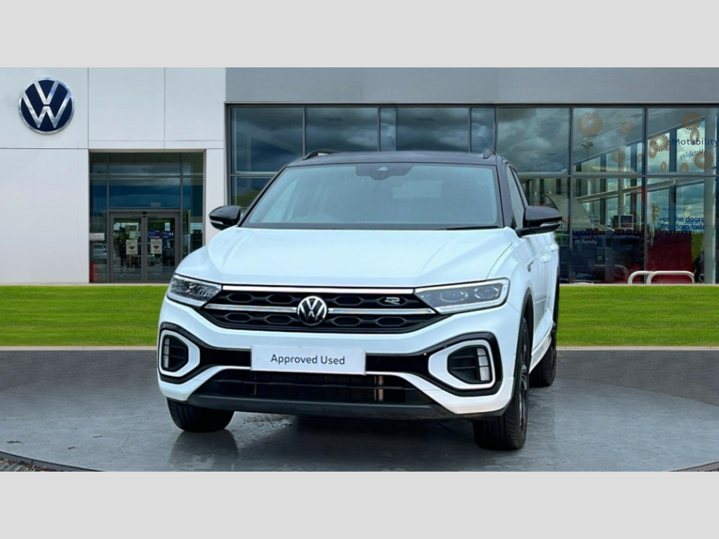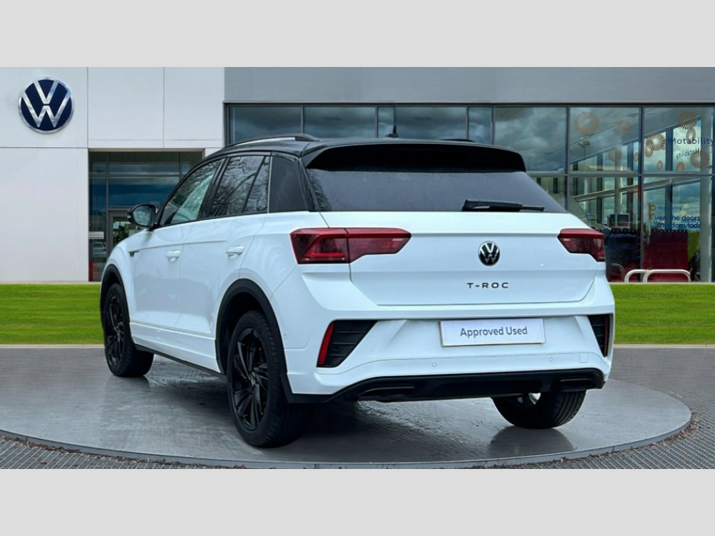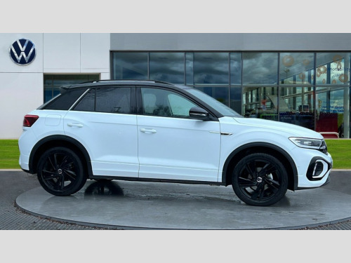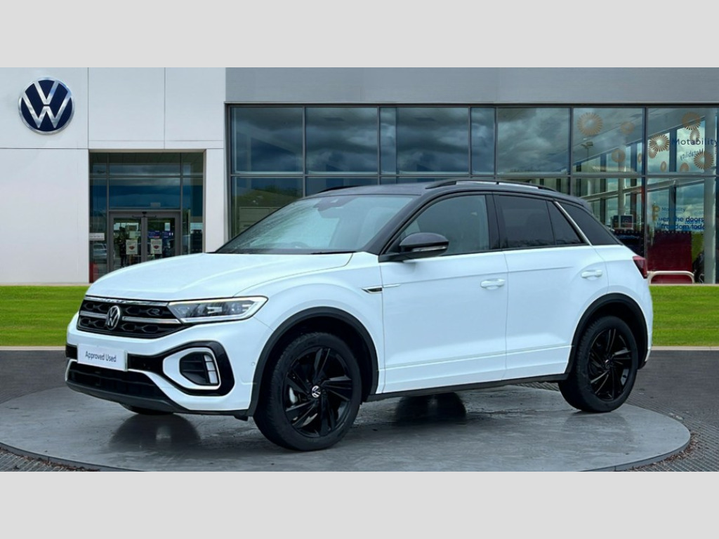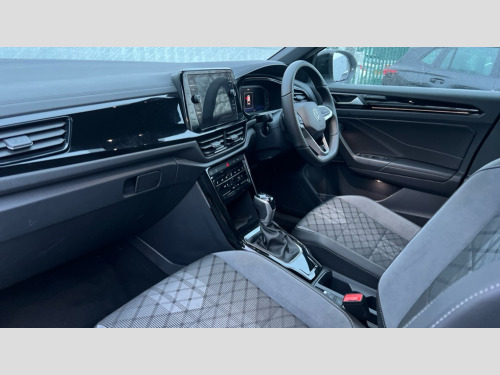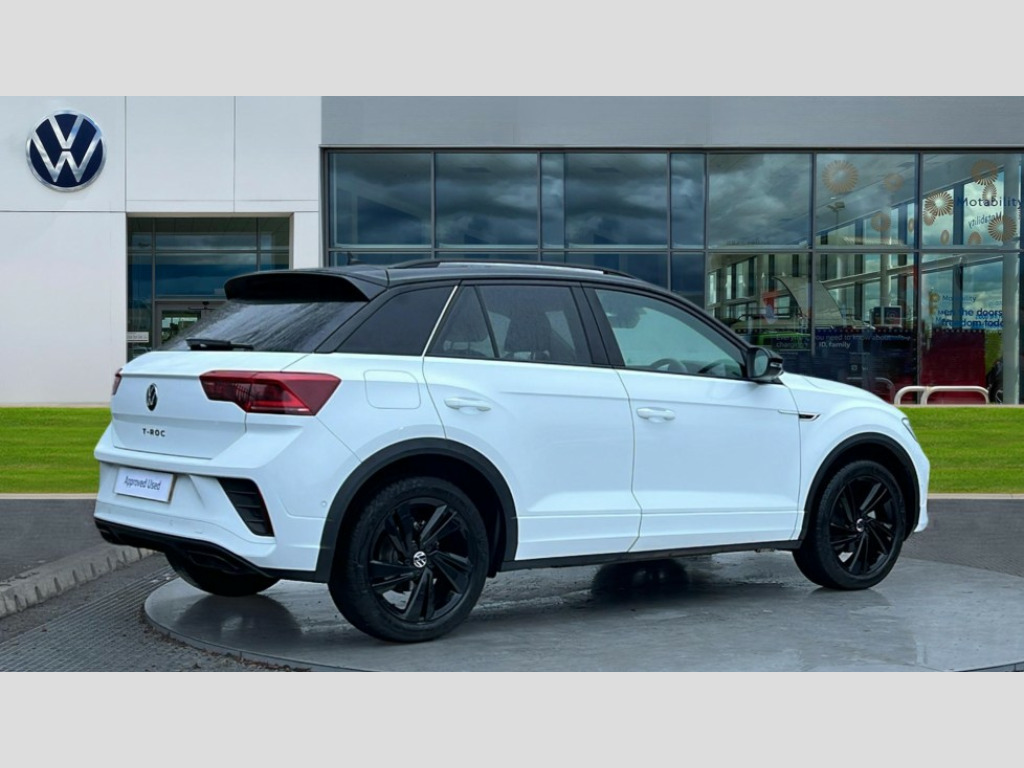 Volkswagen T-Roc 1.5 TSI Black Edition 5dr DSG 10.25" Digital cockpit pro, Advanced driver attention and drowsiness monitor, Emergency call service, Lane keeping system Lane Assist, Mobile phone interface, Modified key software - reduce switch off time for key status change to Long no motion, Online services, Park assist including front and rear parking sensors, Power assisted speed sensitive steering, Service interval indicator, Tailgate/trunk lid release from outside, Think blue trainer driver tips and journey analysis, Warning sound and light for front seatbelts unfastened, Wireless app connect, Battery regeneration during braking, Rear shock absorption chassis with increased ride height, Start/stop function with battery regeneration, DAB Digital radio, Diversity antenna for FM reception, Front and rear 6 speakers, Music playback - MP3, WMA and AAC files, Premium USB cable in choice of either Apple or Android smartphone compatibility, SD card slot, Simultaneous pairing of 2 compatible mobile devices, Title and cover art display, We Connect and We Connect Plus functionality, Auto dimming interior rear view mirror, Automatic hazard lights activation under emergency braking, Automatic headlight control with LED separate daytime running lights with coming/leaving home function, Dynamic cornering light, Electrically adjustable and heated door mirrors, Extended roof spoiler, Exterior mirrors aspherical on driver side, convex on front passenger side, External USB type C socket and charging sockets, Front windscreen wiper with intermittent wipe and 4 position delay, Heated rear window, Illuminated front grille, IQ LED matrix headlights, LED 3rd brake light, LED rear number plate lights, LED rear tail lights with dynamic turn signal, Light mode for poor weather, rain, fog or snow, Power windows with comfort operation and circuit breaker, R-Line design body coloured bumpers, Rain sensor, Rear exhaust tailpipe, Rear fog light on one side and reversing lights on both sides, Rear side wing doors, Rear wash/wipe with intermittent wipe setting, Remote electrically foldable door mirrors, puddle lights and reverse activated passenger's door mirror, 12V power socket in centre console, 3 rear head restraints, 3 seat bench in 2nd row, 4 load lashing points in luggage compartment, Air care climatronic air conditoning system with active combination filter and 2-zone temperature control, Artvelours cloth upholstery, Black roof lining, Chrome plated radiator grille inserts, air vent surrounds and light switch surrounds, Door and side trim panel with leatherette insert, Drawer under drivers seat, Driver seat height adjust, Driver's seat lumbar support, Front + rear carpet mats, Front centre armrest, Front comfort sports seats, Front cupholders x 2, Front footwell illumination, Front reading light, Front scuff plates with R Line logo, Front seat back storage pockets, Glove compartment door with light, Instrument lighting, white adjustable panel illumination, Interior ambient lighting and surround lighting, Interior light delay, Isofix child seat preparation, Leather gearshift handle, Leather wrapped multifunction steering wheel with paddle shift, Load-through provision with cup holder when folded down ('Unsplit rear seat bench, split folding backrest, with centre armrest), Luggage compartment lighting, Non-folding front passenger seat backrest, Passenger seat height adjuster, Passenger seat lumbar support, Single front passenger seat, Stainless steel pedals, Storage compartment in left and right luggage area, Storage compartment in rear doors, Storage compartments in driver and front passenger doors, Sunvisors with illuminated vanity mirrors, Variable boot floor, height adjustable and removable, Winter pack without heated windscreen washer jets - T-Roc, 3 point height adj front seatbelts + pretensioners, 3 point seatbelts in outer rear with ECE label, ABS, Child locks on rear doors, City emergency braking and pedestrian monitoring, Driver and front passenger airbag with front passenger airbag deactivation, Driver and front passenger safety-optimised head restraints, Drivers seatbelt reminder, Electronic parking brake, Electronic Stability Control (ESC) inc EDL (Electronic Differential Lock) and ASR (Traction Control), Front and rear passengers curtain airbag system including front side airbags, Front disc brakes, Hill start assist, Predictive pedestrian protection, Rear disc brakes, Two tone horn, Tyre pressure loss indicator, Volkswagen roadside assistance, Tool kit, Trims for alloy wheels, Tyre mobility kit including compressor and sealing foam