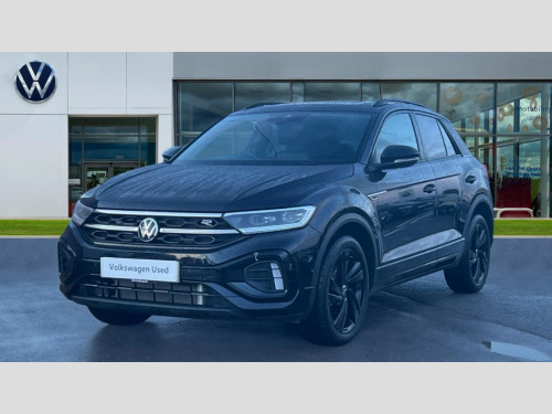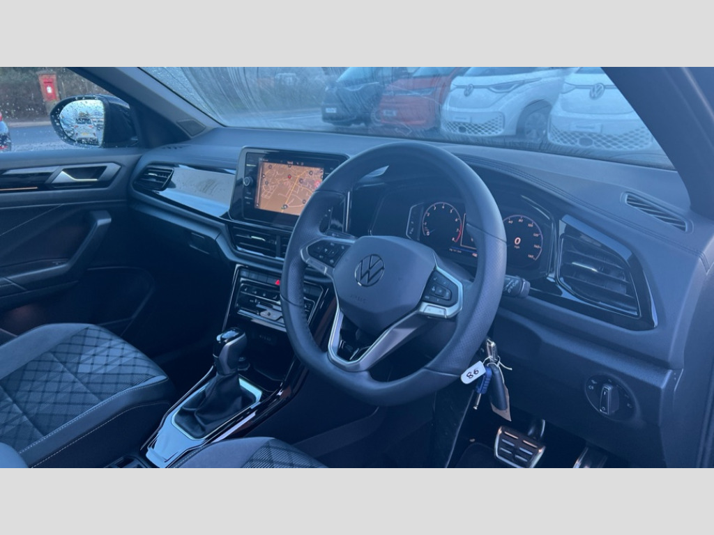 Volkswagen T-Roc 1.5 TSI Black Edition 5dr DSG 10.25" Digital cockpit pro, Advanced driver attention and drowsiness monitor, Emergency call service, Lane keeping system Lane Assist, Mobile phone interface, Modified key software - reduce switch off time for key status change to Long no motion, Online services, Park assist including front and rear parking sensors, Power assisted speed sensitive steering, Service interval indicator, Tailgate/trunk lid release from outside, Think blue trainer driver tips and journey analysis, Warning sound and light for front seatbelts unfastened, Wireless app connect, Battery regeneration during braking, Rear shock absorption chassis with increased ride height, Start/stop function with battery regeneration, DAB Digital radio, Diversity antenna for FM reception, Front and rear 6 speakers, Music playback - MP3, WMA and AAC files, Premium USB cable in choice of either Apple or Android smartphone compatibility, SD card slot, Simultaneous pairing of 2 compatible mobile devices, Title and cover art display, We Connect and We Connect Plus functionality, Auto dimming interior rear view mirror, Automatic hazard lights activation under emergency braking, Automatic headlight control with LED separate daytime running lights with coming/leaving home function, Dynamic cornering light, Electrically adjustable and heated door mirrors, Extended roof spoiler, Exterior mirrors aspherical on driver side, convex on front passenger side, External USB type C socket and charging sockets, Front windscreen wiper with intermittent wipe and 4 position delay, Heated rear window, Illuminated front grille, IQ LED matrix headlights, LED 3rd brake light, LED rear number plate lights, LED rear tail lights with dynamic turn signal, Light mode for poor weather, rain, fog or snow, Power windows with comfort operation and circuit breaker, R-Line design body coloured bumpers, Rain sensor, Rear exhaust tailpipe, Rear fog light on one side and reversing lights on both sides, Rear side wing doors, Rear wash/wipe with intermittent wipe setting, Remote electrically foldable door mirrors, puddle lights and reverse activated passenger's door mirror, 12V power socket in centre console, 3 rear head restraints, 3 seat bench in 2nd row, 4 load lashing points in luggage compartment, Air care climatronic air conditoning system with active combination filter and 2-zone temperature control, Artvelours cloth upholstery, Black roof lining, Chrome plated radiator grille inserts, air vent surrounds and light switch surrounds, Door and side trim panel with leatherette insert, Drawer under drivers seat, Driver seat height adjust, Driver's seat lumbar support, Front + rear carpet mats, Front centre armrest, Front comfort sports seats, Front cupholders x 2, Front footwell illumination, Front reading light, Front scuff plates with R Line logo, Front seat back storage pockets, Glove compartment door with light, Instrument lighting, white adjustable panel illumination, Interior ambient lighting and surround lighting, Interior light delay, Isofix child seat preparation, Leather gearshift handle, Leather wrapped multifunction steering wheel with paddle shift, Load-through provision with cup holder when folded down ('Unsplit rear seat bench, split folding backrest, with centre armrest), Luggage compartment lighting, Non-folding front passenger seat backrest, Passenger seat height adjuster, Passenger seat lumbar support, Single front passenger seat, Stainless steel pedals, Storage compartment in left and right luggage area, Storage compartment in rear doors, Storage compartments in driver and front passenger doors, Sunvisors with illuminated vanity mirrors, Variable boot floor, height adjustable and removable, Winter pack without heated windscreen washer jets - T-Roc, 3 point height adj front seatbelts + pretensioners, 3 point seatbelts in outer rear with ECE label, ABS, Child locks on rear doors, City emergency braking and pedestrian monitoring, Driver and front passenger airbag with front passenger airbag deactivation, Driver and front passenger safety-optimised head restraints, Drivers seatbelt reminder, Electronic parking brake, Electronic Stability Control (ESC) inc EDL (Electronic Differential Lock) and ASR (Traction Control), Front and rear passengers curtain airbag system including front side airbags, Front disc brakes, Hill start assist, Predictive pedestrian protection, Rear disc brakes, Two tone horn, Tyre pressure loss indicator, Volkswagen roadside assistance, Tool kit, Trims for alloy wheels, Tyre mobility kit including compressor and sealing foam