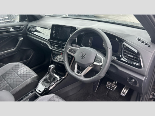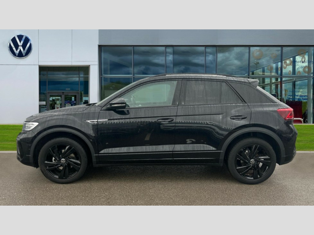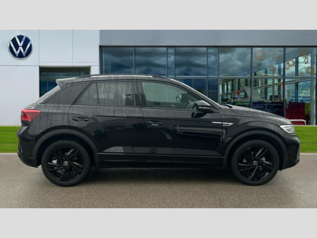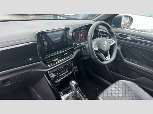 Volkswagen T-Roc 1.5 TSI Black Edition 5dr DSG 10.25" Digital cockpit pro, Advanced driver attention and drowsiness monitor, Emergency call service, Lane keeping system Lane Assist, Mobile phone interface, Modified key software - reduce switch off time for key status change to Long no motion, Online services, Park assist including front and rear parking sensors, Power assisted speed sensitive steering, Service interval indicator, Tailgate/trunk lid release from outside, Think blue trainer driver tips and journey analysis, Warning sound and light for front seatbelts unfastened, Wireless app connect, Battery regeneration during braking, Rear shock absorption chassis with increased ride height, Start/stop function with battery regeneration, DAB Digital radio, Diversity antenna for FM reception, Front and rear 6 speakers, Music playback - MP3, WMA and AAC files, Premium USB cable in choice of either Apple or Android smartphone compatibility, SD card slot, Simultaneous pairing of 2 compatible mobile devices, Title and cover art display, We Connect and We Connect Plus functionality, Auto dimming interior rear view mirror, Automatic hazard lights activation under emergency braking, Automatic headlight control with LED separate daytime running lights with coming/leaving home function, Dynamic cornering light, Electrically adjustable and heated door mirrors, Extended roof spoiler, Exterior mirrors aspherical on driver side, convex on front passenger side, External USB type C socket and charging sockets, Front windscreen wiper with intermittent wipe and 4 position delay, Heated rear window, Illuminated front grille, IQ LED matrix headlights, LED 3rd brake light, LED rear number plate lights, LED rear tail lights with dynamic turn signal, Light mode for poor weather, rain, fog or snow, Power windows with comfort operation and circuit breaker, R-Line design body coloured bumpers, Rain sensor, Rear exhaust tailpipe, Rear fog light on one side and reversing lights on both sides, Rear side wing doors, Rear wash/wipe with intermittent wipe setting, Remote electrically foldable door mirrors, puddle lights and reverse activated passenger's door mirror, 12V power socket in centre console, 3 rear head restraints, 3 seat bench in 2nd row, 4 load lashing points in luggage compartment, Air care climatronic air conditoning system with active combination filter and 2-zone temperature control, Artvelours cloth upholstery, Black roof lining, Chrome plated radiator grille inserts, air vent surrounds and light switch surrounds, Door and side trim panel with leatherette insert, Drawer under drivers seat, Driver seat height adjust, Driver's seat lumbar support, Front + rear carpet mats, Front centre armrest, Front comfort sports seats, Front cupholders x 2, Front footwell illumination, Front reading light, Front scuff plates with R Line logo, Front seat back storage pockets, Glove compartment door with light, Instrument lighting, white adjustable panel illumination, Interior ambient lighting and surround lighting, Interior light delay, Isofix child seat preparation, Leather gearshift handle, Leather wrapped multifunction steering wheel with paddle shift, Load-through provision with cup holder when folded down ('Unsplit rear seat bench, split folding backrest, with centre armrest), Luggage compartment lighting, Non-folding front passenger seat backrest, Passenger seat height adjuster, Passenger seat lumbar support, Single front passenger seat, Stainless steel pedals, Storage compartment in left and right luggage area, Storage compartment in rear doors, Storage compartments in driver and front passenger doors, Sunvisors with illuminated vanity mirrors, Variable boot floor, height adjustable and removable, Winter pack without heated windscreen washer jets - T-Roc, 3 point height adj front seatbelts + pretensioners, 3 point seatbelts in outer rear with ECE label, ABS, Child locks on rear doors, City emergency braking and pedestrian monitoring, Driver and front passenger airbag with front passenger airbag deactivation, Driver and front passenger safety-optimised head restraints, Drivers seatbelt reminder, Electronic parking brake, Electronic Stability Control (ESC) inc EDL (Electronic Differential Lock) and ASR (Traction Control), Front and rear passengers curtain airbag system including front side airbags, Front disc brakes, Hill start assist, Predictive pedestrian protection, Rear disc brakes, Two tone horn, Tyre pressure loss indicator, Volkswagen roadside assistance, Tool kit, Trims for alloy wheels, Tyre mobility kit including compressor and sealing foam