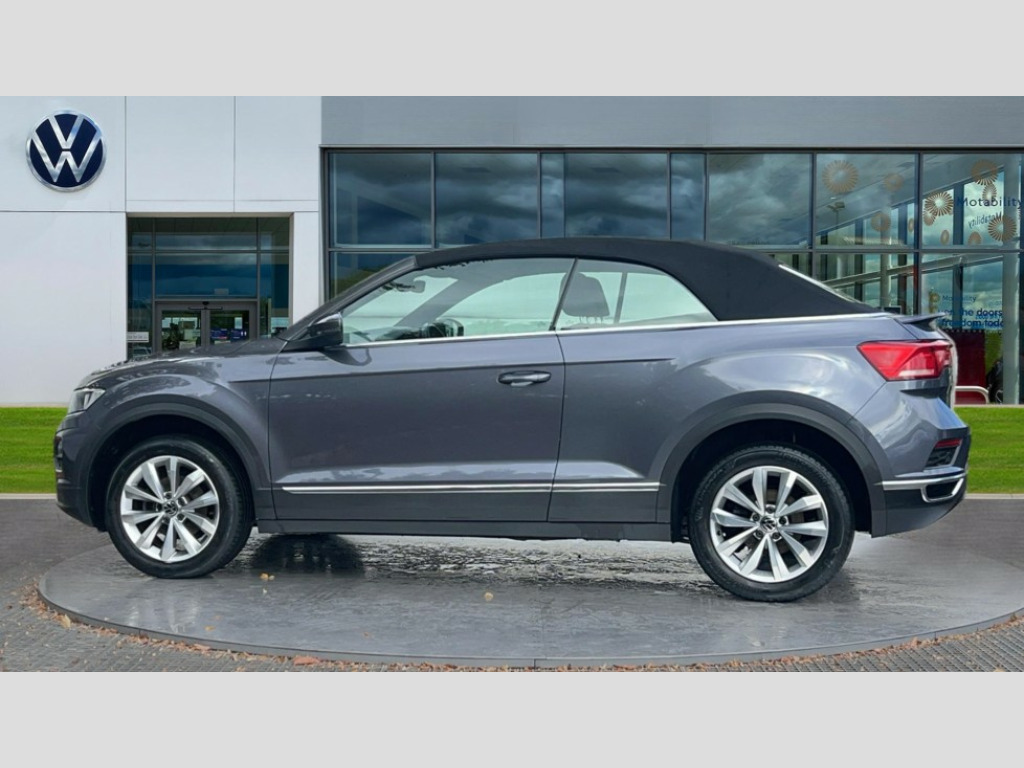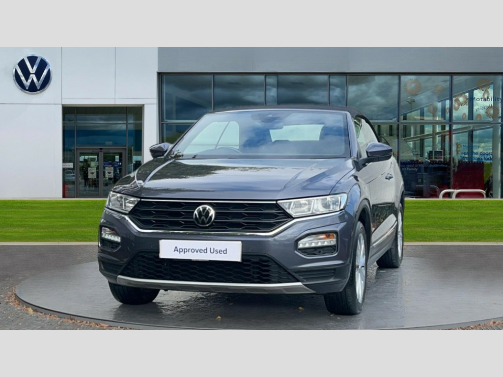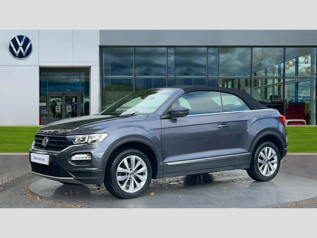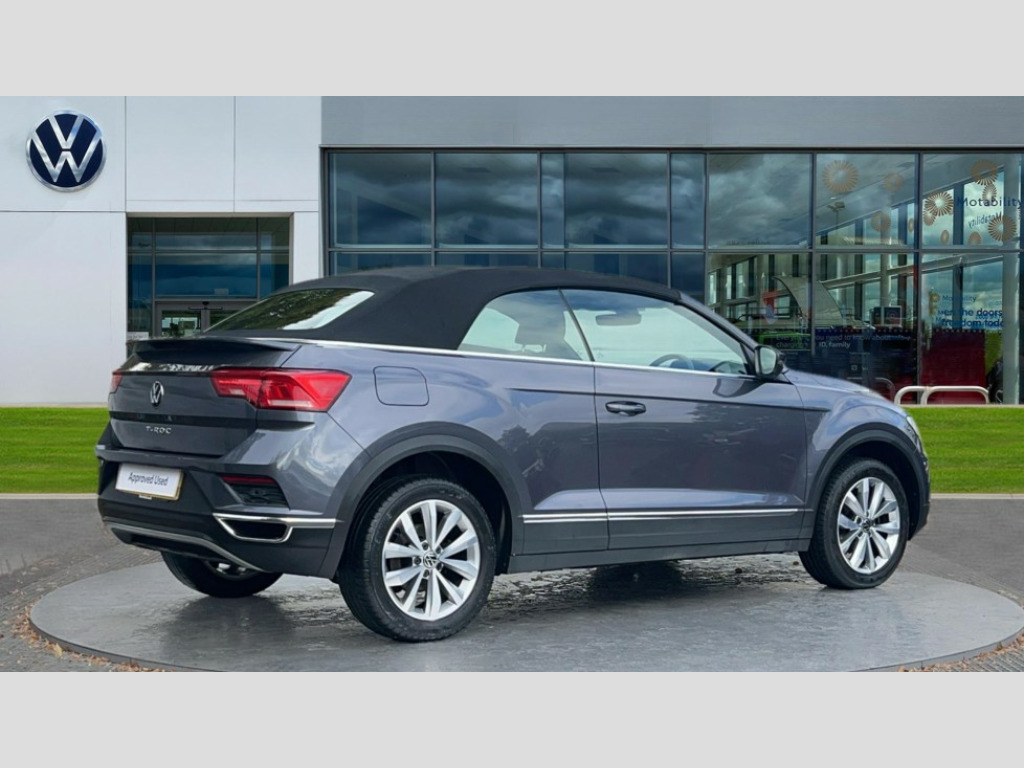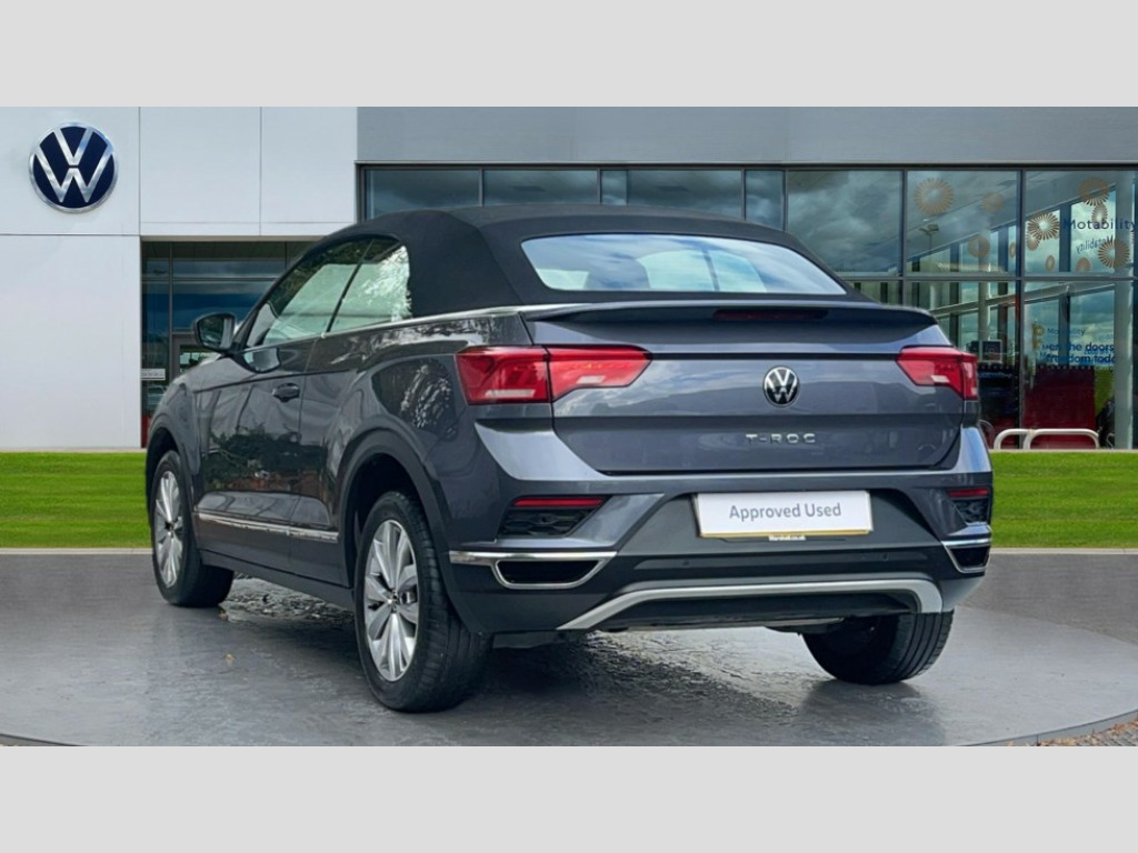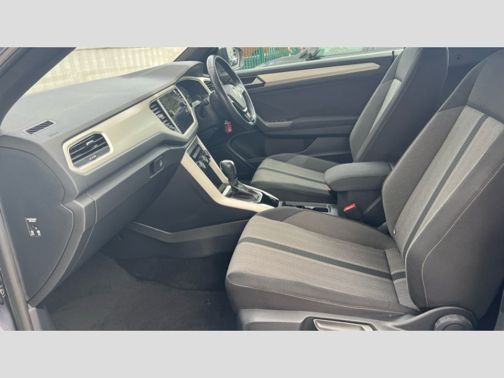 Volkswagen T-Roc 1.5 TSI Design 2dr DSG 8" colour touch screen, Adaptive cruise control, Bluetooth telephone and audio connection for compatible devices, Brake pad wear indicator, Car information display, Driver alert system with fatigue detection, Driver tips and journey analysis, Dynamic road sign display, Emergency call service, Front assist, radar sensor controlled distance monitor, city emergency braking + predictive pedestrian protection, Lane assist with warning text instrument cluster, Mobile phone interface, Modified key software - reduce switch off time for key status change to Long no motion, Multifunction computer with visual gear change recommendation for fuel consumption, Navigation system discover media including streaming and internet, Online services, Power assisted speed sensitive steering, Service interval indicator, Start/stop system with brake energy recovery, Wired and wireless app connect, Bluetooth - Simultaneous pairing of 2 compatible mobile devices, DAB Digital radio, Diversity antenna for FM reception, Front USB type C Interface 2X and USB charging socket, Music playback - MP3, WMA and AAC files, SMS functionality - read, compose and send SMS messages using touch-screen display, Title and cover art display, WeConnect plus, Auto dimming interior rear view mirror, Automatic hazard lights activation under emergency braking, Automatic headlamp activation with manual coming home and automatic leaving function, Black door handles, Body colour bumpers, Body colour rear roof spoiler, Chrome effect left and right trapezoid exhaust tailpipe fascia surround, Chrome trim on upper and lower radiator grille, Dusk sensor, Electrically power adjustable, heated, folding, auto dimming, front passenger exterior door mirror lowering function, Front and rear electric windows, High level 3rd brake light, LED rear number plate lights, LED tail lamp rear comination lamps, Power operated canvas convertible top, Rain sensor, Rear fog lamp, Volkswagen roundel, Windscreen wiper with intermittent wipe light, 12V socket in centre console storage area, 2 front reading lights, 50/50 rear seat bench split folding rear seat backrests, Chrome plated radiator grille inserts, air vent surrounds and light switch surrounds in interior, Climate control - 2 zone electronic air conditioning with automatic air recirculation and allergy filter, Entry aid easy entry (Front folding seats), Front + rear carpet mats, Front centre armrest, Front comfort seats with manual height adjustment, Front cupholders x 2, Front seat back storage pockets, Glove Compartment with light, Height/reach adjust steering wheel, Illuminated vanity mirrors in sun visors with air bag label on sun visor and b-pillar, Instrument lighting, white adjustable panel illumination, Interior light delay, Interior light in footwell, Interior white ambient lighting and surround lighting, Isofix easy fit child seat preparation for 2 outer rear seats, Leather wrapped multifunction steering wheel with paddle shift, Luggage compartment lighting, Rear head restraints, Standard pedal cluster, Storage compartments in driver and front passenger doors, 2 x 3-point rear seatbelts, ABS, Autonomous emergency braking, Driver and front passenger safety-optimised head restraints, Driver/Front Passenger airbags, Drivers seatbelt reminder, Electronic parking brake with auto hold, Electronic stability control (ESC) includes ASR, EDL, EDTC and trailer stabilisation function, Front passenger airbag deactivation, Front side airbags, Pedestrian monitoring, Rigid safety cell with front and rear crumple zones, Single tone horn, Three point height adjust front seatbelts + pretensioners, Tyre pressure monitor, Ventilated front and rear disc brakes, Volkswagen roadside assistance, Alarm with interior protection and deactivation via infotainment system, Electronic engine immobiliser, Dashboard unicolour out of hard material including decorative insert 1st line different colours chooseable