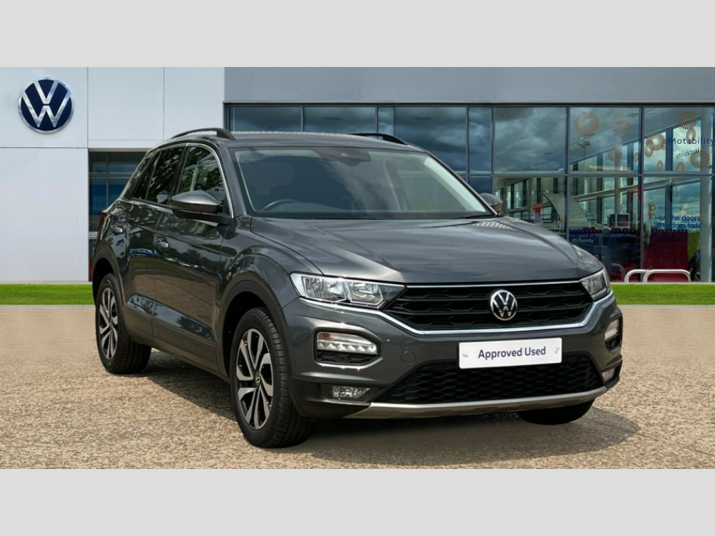 Volkswagen T-Roc 1.5 TSI EVO Active 5dr DSG 'Lights On' Reminder warning buzzer, Adaptive cruise control, Bluetooth telephone and audio connection for compatible devices, Car information display, Driver tips and journey analysis, Electric bootlid, Electric operated opening and closing tailgate, Emergency call service, Lane assist with warning text instrument cluster, Modified key software - reduce switch off time for key status change to Long no motion, Multifunction camera, Multifunction computer with visual gear change recommendation for fuel consumption, Navigation system discover media including streaming and internet, Service interval indicator, Think blue trainer driver tips and journey analysis, Traffic sign recognition, Unique 'Active' logo on B pillar, Warning sound and light for front seatbelts unfastened, Wireless app connect for apple carPlay, Battery regeneration during braking, Start/stop function with battery regeneration, DAB Digital radio, Diversity antenna for FM reception, Music playback - MP3, WMA and AAC files, Premium USB cable in choice of either Apple or Android smartphone compatibility, SD card slot, Simultaneous pairing of 2 compatible mobile devices, Single CD player, glovebox mounted, SMS functionality - read, compose and send SMS messages using touch-screen display, Storage compartment with longitudinal and height adjustable in armrest and two rear air vents, Title and cover art display, USB-C Interface and USB charging socket, Auto dimming interior rear view mirror, Automatic coming/leaving home lighting function and daytime running lights, Automatic hazard lights activation under emergency braking, Black grained lower door protectors, Black grained wheel arches, Body colour door handles, Body coloured bumpers and radiator grille with chrome trim and front fog lamps with chrome bezel, Body coloured door mirrors with integrated indicators, Chrome trim on upper and lower radiator grille, Door sill protectors with special trim design, Dusk sensor, Electrically foldable, adjustable and heated door mirrors with puddle lights and reverse activated kerb-view adjustment on passenger's door mirror, External USB type C socket and charging sockets, Front and rear electric windows, Front fog lights with static cornering function, Front windscreen wiper with intermittent wipe and 4 position delay, Fully galvanised body, Heated rear window, Heated windscreen washer jets, High level 3rd brake light, LED rear number plate lights, LED tail lamp rear comination lamps, Rain sensor, Rear tinted glass from B-pillar backwards approx 65% tinted, Rear wash/wipe with intermittent wipe setting, Volkswagen roundel, 12V socket in centre console storage area, 3 rear head restraints, 4 load lashing points in luggage compartment, Climate control - 2 zone electronic air conditioning with automatic air recirculation and allergy filter, Door and side trim panel, Drawer under drivers seat, Front + rear carpet mats, Front centre armrest, Front comfort seats with manual height adjustment, Front cupholders x 2, Front reading light, Front seat back storage pockets, Glovebox, Heated front seats, Height adjustable front seats, Height/reach adjust steering wheel, Instrument lighting, white adjustable panel illumination, Interior light delay, Isofix easy fit child seat preparation for 2 outer rear seats, Load through provision with single cup holder when folded down, Luggage compartment cover, removable, Luggage compartment lighting, Split folding rear seat backrests with centre armrest, Stainless steel pedals, Storage compartment in left and right luggage area, Storage compartment in rear doors, Storage compartments in driver and front passenger doors, Sunvisors with illuminated vanity mirrors, Trapeze cloth upholstery, 3 rear three point seatbelts, ABS, Curtain airbags, Driver and front passenger safety-optimised head restraints, Drivers and front passengers airbags with passengers deactivation switch, Drivers seatbelt reminder, Electronic parking brake with auto hold, Electronic stability control (ESC) includes ASR, EDL, EDTC and trailer stabilisation function, Front assist with city emergency braking and pedestrian monitoring, Front seat side impact airbags, Predictive pedestrian protection, Rigid safety cell with front and rear crumple zones, Single tone horn, Three point height adjust front seatbelts + pretensioners, Tyre pressure loss indicator, Ventilated front and rear disc brakes, Volkswagen roadside assistance, Alarm with remote central locking and interior protection, Electronic engine immobiliser, Remote central locking with SAFELOCK, radio remote control with 2 remote control folding keys, Decorative inserts in for special trims, 17" Galway alloy wheels with super low rolling resistance tyres and anti theft wheel bolts