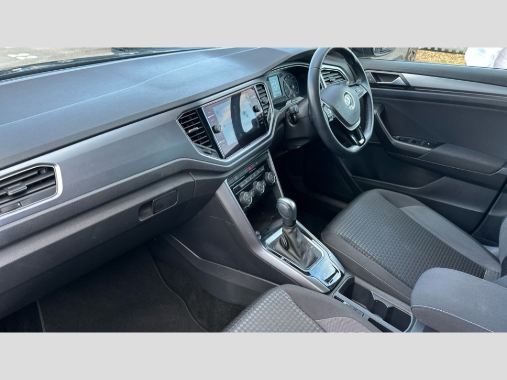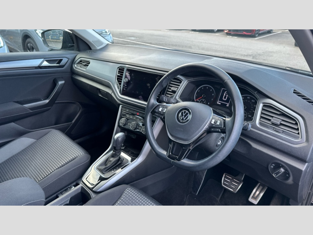 Volkswagen T-Roc 1.5 TSI EVO Active 5dr DSG 'Lights On' Reminder warning buzzer, Adaptive cruise control, Bluetooth telephone and audio connection for compatible devices, Car information display, Driver tips and journey analysis, Electric bootlid, Electric operated opening and closing tailgate, Emergency call service, Lane assist with warning text instrument cluster, Modified key software - reduce switch off time for key status change to Long no motion, Multifunction camera, Multifunction computer with visual gear change recommendation for fuel consumption, Navigation system discover media including streaming and internet, Service interval indicator, Think blue trainer driver tips and journey analysis, Traffic sign recognition, Unique 'Active' logo on B pillar, Warning sound and light for front seatbelts unfastened, Wireless app connect for apple carPlay, Battery regeneration during braking, Start/stop function with battery regeneration, DAB Digital radio, Diversity antenna for FM reception, Music playback - MP3, WMA and AAC files, Premium USB cable in choice of either Apple or Android smartphone compatibility, SD card slot, Simultaneous pairing of 2 compatible mobile devices, Single CD player, glovebox mounted, SMS functionality - read, compose and send SMS messages using touch-screen display, Storage compartment with longitudinal and height adjustable in armrest and two rear air vents, Title and cover art display, USB-C Interface and USB charging socket, Auto dimming interior rear view mirror, Automatic coming/leaving home lighting function and daytime running lights, Automatic hazard lights activation under emergency braking, Black grained lower door protectors, Black grained wheel arches, Body colour door handles, Body coloured bumpers and radiator grille with chrome trim and front fog lamps with chrome bezel, Body coloured door mirrors with integrated indicators, Chrome trim on upper and lower radiator grille, Door sill protectors with special trim design, Dusk sensor, Electrically foldable, adjustable and heated door mirrors with puddle lights and reverse activated kerb-view adjustment on passenger's door mirror, External USB type C socket and charging sockets, Front and rear electric windows, Front fog lights with static cornering function, Front windscreen wiper with intermittent wipe and 4 position delay, Fully galvanised body, Heated rear window, Heated windscreen washer jets, High level 3rd brake light, LED rear number plate lights, LED tail lamp rear comination lamps, Rain sensor, Rear tinted glass from B-pillar backwards approx 65% tinted, Rear wash/wipe with intermittent wipe setting, Volkswagen roundel, 12V socket in centre console storage area, 3 rear head restraints, 4 load lashing points in luggage compartment, Climate control - 2 zone electronic air conditioning with automatic air recirculation and allergy filter, Door and side trim panel, Drawer under drivers seat, Front + rear carpet mats, Front centre armrest, Front comfort seats with manual height adjustment, Front cupholders x 2, Front reading light, Front seat back storage pockets, Glovebox, Heated front seats, Height adjustable front seats, Height/reach adjust steering wheel, Instrument lighting, white adjustable panel illumination, Interior light delay, Isofix easy fit child seat preparation for 2 outer rear seats, Load through provision with single cup holder when folded down, Luggage compartment cover, removable, Luggage compartment lighting, Split folding rear seat backrests with centre armrest, Stainless steel pedals, Storage compartment in left and right luggage area, Storage compartment in rear doors, Storage compartments in driver and front passenger doors, Sunvisors with illuminated vanity mirrors, Trapeze cloth upholstery, 3 rear three point seatbelts, ABS, Curtain airbags, Driver and front passenger safety-optimised head restraints, Drivers and front passengers airbags with passengers deactivation switch, Drivers seatbelt reminder, Electronic parking brake with auto hold, Electronic stability control (ESC) includes ASR, EDL, EDTC and trailer stabilisation function, Front assist with city emergency braking and pedestrian monitoring, Front seat side impact airbags, Predictive pedestrian protection, Rigid safety cell with front and rear crumple zones, Single tone horn, Three point height adjust front seatbelts + pretensioners, Tyre pressure loss indicator, Ventilated front and rear disc brakes, Volkswagen roadside assistance, Alarm with remote central locking and interior protection, Electronic engine immobiliser, Remote central locking with SAFELOCK, radio remote control with 2 remote control folding keys, Decorative inserts in for special trims, 17" Galway alloy wheels with super low rolling resistance tyres and anti theft wheel bolts