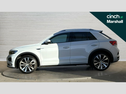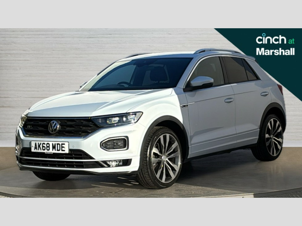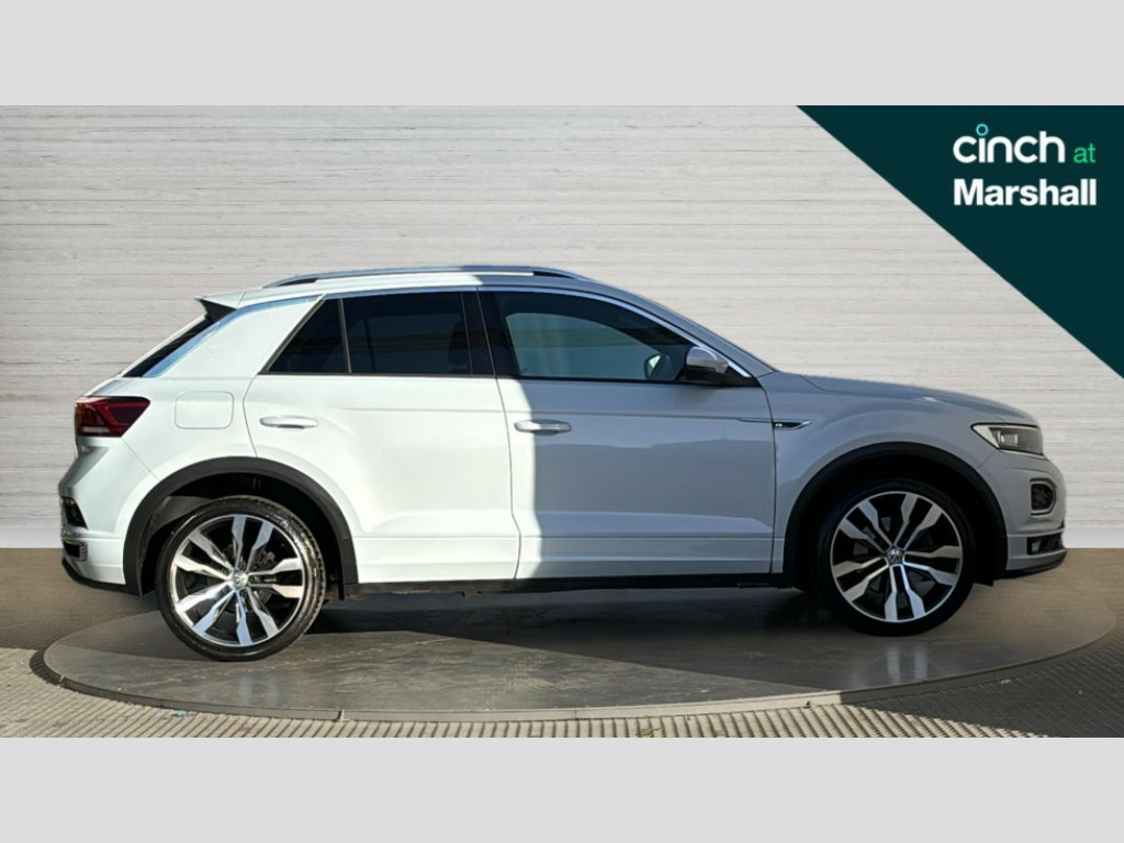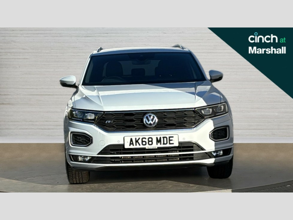 Volkswagen T-Roc 1.5 TSI EVO R-Line 5dr 2 USB connection charging sockets, Active Info Display, 10.3" high resolution TFT dash display screen with customised information, Adaptive cruise control, App-Connect, Automatic start/stop system, Bluetooth telephone and audio connection for compatible devices, Car information display, Car-Net Security and Service, Discover navigation, 8" touch screen navigation/infotainment system with Car-Net, European map, CD/radio, 2D/3D map and speed limiter, Driver alert system with audible and visual fatigue detection system, Driving Mode Selection with four preset modes - Eco, normal, sport or individual modes, Front assist, radar sensor controlled distance monitor, city emergency braking + predictive pedestrian protection, Lane assist, Multifunction computer with visual gear change recommendation for fuel consumption, Progressive power assisted steering, Service interval indicator, Think blue trainer driver tips and journey analysis, Voice activation, Warning sound and light for doors and tailgate open, Warning sound and light for front seatbelts unfastened, Battery regeneration during braking, Sports suspension, Bluetooth - Simultaneous pairing of 2 compatible mobile devices, DAB Digital radio, Dynamic navigation based on TMC+, Multi device interface (MDI) with USB connection, Music playback - MP3, WMA and AAC files, Premium USB cable in choice of either Apple or Android smartphone compatibility, SD card slot, SMS functionality - read, compose and send SMS messages using touch-screen display, Three route options - Fast, Short, Eco, Title and cover art display, Auto dimming interior rear view mirror, Automatic hazard lights activation under emergency braking, Black grained lower door protectors, Black grained wheel arches, Body colour door handles, Body colour rear roof spoiler, Chrome effect left and right trapezoid exhaust tailpipe fascia surround, Chrome trim on upper and lower radiator grille, Door mirror integrated indicators, Dusk sensor, Electrically foldable, adjustable and heated door mirrors with puddle lights and reverse activated kerb-view adjustment on passenger's door mirror, Front and rear electric windows, Front fog lights with static cornering function, Front windscreen wiper with intermittent wipe and 4 position delay, Fully galvanised body, Heated rear window, High level 3rd brake light, LED darkened rear light clusters, LED dipped and main beam headlights with automatic range adjustment including signature LED daytime running lights, LED rear number plate lights, Manual coming/automatic leaving home lighting function, Rain sensor, Rear tinted glass from B-pillar backwards approx 65% tinted, Rear windscreen washer and wiper with interval delay, 12V socket in centre console storage area, 2 LED front and rear reading lights, 3 rear head restraints, 4 load lashing points in luggage compartment, Aluminium pedals, Ambient lighting in front footwell and light strips below trim in front doors, Black roof lining and sun visors, Carbon flag cloth upholstery, Climate control - 2 zone electronic air conditioning with automatic air recirculation and allergy filter, Drawer under drivers seat, Front + rear carpet mats, Front centre armrest with storage compartment, longitudinal and height adjustable and two rear air vents, Front cupholders x 2, Front footwell illumination, Front seat back storage pockets, Front sport seats, Glovebox, Height adjustable front seats, Height/reach adjust steering wheel, Illuminated vanity mirrors, Instrument lighting, white adjustable panel illumination, Interior light delay, Isofix easy fit child seat preparation for 2 outer rear seats, Load through provision with single cup holder when folded down, Luggage compartment cover, removable, Luggage compartment lighting, R Line badge, Split folding rear seat backrests with centre armrest, Storage compartment in left and right luggage area, Storage compartment in rear doors, Storage compartments in driver and front passenger doors, Three spoke multi-function leather trimmed steering wheel and gearknob, Unique R Line door sill protectors, R line styling pack - T-Roc, Winter pack - T-Roc, 3 rear three point seatbelts, ABS, Driver and front passenger safety-optimised head restraints, Electronic parking brake with auto hold, ESC with EDL, ASR, EDTC and trailer stabilisation function, Front and rear curtain airbags, driver and front passenger airbags with passenger deactivation switch and front side impact airbags, Rigid safety cell with front and rear crumple zones, Three point height adjust front seatbelts + pretensioners, Tyre pressure loss indicator, Ventilated front and rear disc brakes, Volkswagen roadside assistance, Alarm with remote central locking and interior protection, Electronic engine immobiliser, Remote central locking with 2 remote folding keys, Caribou grey decorative inserts in dash and door panel, 19" Suzuka alloy wheels with low rolling resistance tyres and anti wheel bolts