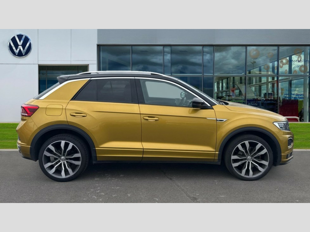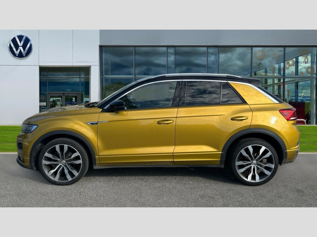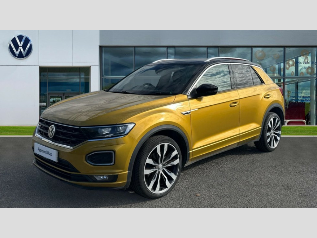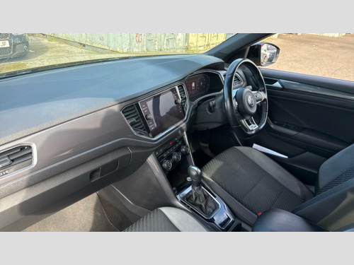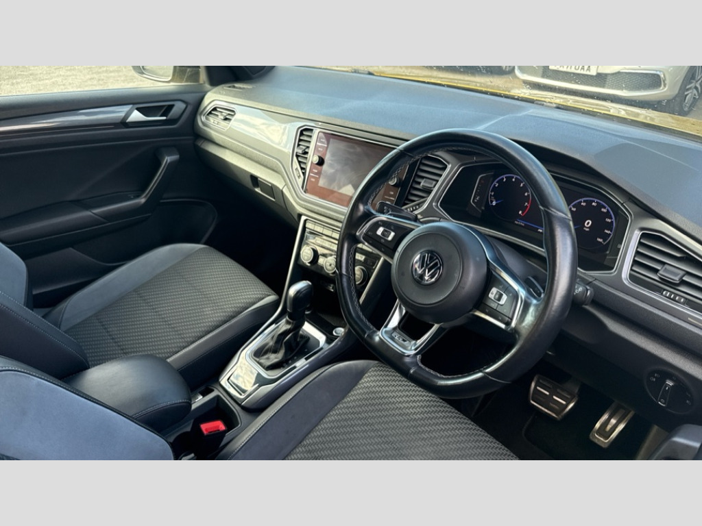 Volkswagen T-Roc 1.5 TSI EVO R-Line 5dr DSG 'Lights On' Reminder warning buzzer, 2 USB connection charging sockets, Active Info Display, 10.3" high resolution TFT dash display screen with customised information, Adaptive cruise control with front assist, radar sensor controlled distance monitoring, city emergency braking, App-Connect, Automatic start/stop system, Bluetooth telephone and audio connection for compatible devices, Car information display, Car-Net Security and Service, Discover navigation, 8" touch screen navigation/infotainment system with Car-Net, European map, CD/radio, 2D/3D map and speed limiter, Driver alert system with audible and visual fatigue detection system, Driver tips and journey analysis, Lane assist, Multifunction computer with visual gear change recommendation for fuel consumption, Service interval indicator, Think blue trainer driver tips and journey analysis, Voice activation, Warning sound and light for doors and tailgate open, Warning sound and light for front seatbelts unfastened, Battery regeneration during braking, DAB Digital radio, Dynamic navigation based on TMC+, Multi device interface (MDI) with USB connection, Music playback - MP3, WMA and AAC files, Premium USB cable in choice of either Apple or Android smartphone compatibility, SD card slot, Simultaneous pairing of 2 compatible mobile devices, SMS functionality - read, compose and send SMS messages using touch-screen display, Three route options - Fast, Short, Eco, Title and cover art display, Auto dimming interior rear view mirror, Black grained lower door protectors, Body colour door handles, Body colour rear roof spoiler, Chrome effect left and right trapezoid exhaust tailpipe fascia surround, Chrome trim on upper and lower radiator grille, Dusk sensor, Electrically foldable, adjustable and heated door mirrors with puddle lights and reverse activated kerb-view adjustment on passenger's door mirror, Front and rear electric windows, Front fog lights with static cornering function, Front windscreen wiper with intermittent wipe and 4 position delay, Fully galvanised body, Heated rear window, High level 3rd brake light, LED darkened rear light clusters, LED rear number plate lights, Manual coming/automatic leaving home lighting function, Rain sensor, Rear tinted glass from B-pillar backwards approx 65% tinted, Rear wash/wipe with intermittent wipe setting, 12V socket in centre console storage area, 2 Front and rear reading lights incorporating LED technology, 3 rear head restraints, 4 load lashing points in luggage compartment, Aluminium pedals, Ambient lighting in front footwell and light strips below trim in front doors, Black roof lining and sun visors, Branded points of interest, Carbon flag cloth upholstery, Climate control - 2 zone electronic air conditioning with automatic air recirculation and allergy filter, Drawer under drivers seat, Front and rear carpet mats with contrast stitching, Front centre armrest with storage compartment, longitudinal and height adjustable and two rear air vents, Front cupholders x 2, Front footwell illumination, Front seat back storage pockets, Front sports seats with R-Line logo on seat backrest, Glovebox, Height adjustable front seats, Height/reach adjust steering wheel, Illuminated vanity mirrors, Instrument lighting, white adjustable panel illumination, Interior light delay, Isofix easy fit child seat preparation for 2 outer rear seats, Load through provision with single cup holder when folded down, Luggage compartment cover, removable, Luggage compartment lighting, R Line badge, Split folding rear seat backrests with centre armrest, Storage compartment in left and right luggage area, Storage compartment in rear doors, Storage compartments in driver and front passenger doors, Three spoke multifunction leather trimmed steering wheel including gear knob and paddle shift with aluminium inserts contrast stitch and R Line logo, Unique R Line door sill protectors, R line styling pack - T-Roc, 3 rear three point seatbelts, ABS, Curtain airbags, Driver and front passenger safety-optimised head restraints, Drivers and front passengers airbags with passengers deactivation switch, Electronic parking brake with auto hold, Electronic stability control (ESC) includes ASR, EDL, EDTC and trailer stabilisation function, Front seat side impact airbags, Predictive pedestrian protection, Rigid safety cell with front and rear crumple zones, Three point height adjust front seatbelts + pretensioners, Tyre pressure loss indicator, Ventilated front and rear disc brakes, Volkswagen roadside assistance, Alarm with interior protection and deactivation via infotainment system, Electronic engine immobiliser, Remote central locking with 2 remote folding keys, Shadow steel decorative inserts in dash and door panel, 19" Suzuka alloy wheels with low rolling resistance tyres and anti wheel bolts, Space and weight saver spare wheel