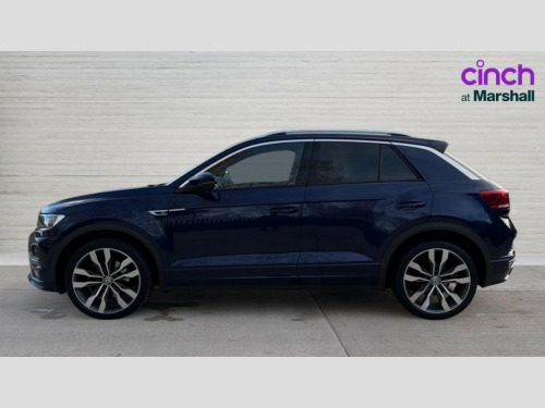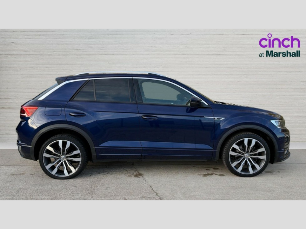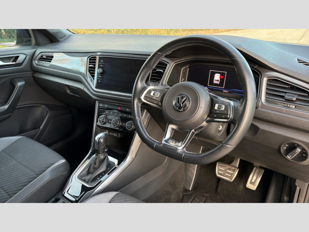 Volkswagen T-Roc 1.5 TSI EVO R-Line 5dr DSG 'Lights On' Reminder warning buzzer, 2 USB connection charging sockets, Active Info Display, 10.3" high resolution TFT dash display screen with customised information, Adaptive cruise control with front assist, radar sensor controlled distance monitoring, city emergency braking, App-Connect, Automatic start/stop system, Bluetooth telephone and audio connection for compatible devices, Car information display, Car-Net Security and Service, Discover navigation, 8" touch screen navigation/infotainment system with Car-Net, European map, CD/radio, 2D/3D map and speed limiter, Driver alert system with audible and visual fatigue detection system, Driver tips and journey analysis, Lane assist, Multifunction computer with visual gear change recommendation for fuel consumption, Service interval indicator, Think blue trainer driver tips and journey analysis, Voice activation, Warning sound and light for doors and tailgate open, Warning sound and light for front seatbelts unfastened, Battery regeneration during braking, DAB Digital radio, Dynamic navigation based on TMC+, Multi device interface (MDI) with USB connection, Music playback - MP3, WMA and AAC files, Premium USB cable in choice of either Apple or Android smartphone compatibility, SD card slot, Simultaneous pairing of 2 compatible mobile devices, SMS functionality - read, compose and send SMS messages using touch-screen display, Three route options - Fast, Short, Eco, Title and cover art display, Auto dimming interior rear view mirror, Black grained lower door protectors, Body colour door handles, Body colour rear roof spoiler, Chrome effect left and right trapezoid exhaust tailpipe fascia surround, Chrome trim on upper and lower radiator grille, Dusk sensor, Electrically foldable, adjustable and heated door mirrors with puddle lights and reverse activated kerb-view adjustment on passenger's door mirror, Front and rear electric windows, Front fog lights with static cornering function, Front windscreen wiper with intermittent wipe and 4 position delay, Fully galvanised body, Heated rear window, High level 3rd brake light, LED darkened rear light clusters, LED rear number plate lights, Manual coming/automatic leaving home lighting function, Rain sensor, Rear tinted glass from B-pillar backwards approx 65% tinted, Rear wash/wipe with intermittent wipe setting, 12V socket in centre console storage area, 2 Front and rear reading lights incorporating LED technology, 3 rear head restraints, 4 load lashing points in luggage compartment, Aluminium pedals, Ambient lighting in front footwell and light strips below trim in front doors, Black roof lining and sun visors, Branded points of interest, Carbon flag cloth upholstery, Climate control - 2 zone electronic air conditioning with automatic air recirculation and allergy filter, Drawer under drivers seat, Front and rear carpet mats with contrast stitching, Front centre armrest with storage compartment, longitudinal and height adjustable and two rear air vents, Front cupholders x 2, Front footwell illumination, Front seat back storage pockets, Front sports seats with R-Line logo on seat backrest, Glovebox, Height adjustable front seats, Height/reach adjust steering wheel, Illuminated vanity mirrors, Instrument lighting, white adjustable panel illumination, Interior light delay, Isofix easy fit child seat preparation for 2 outer rear seats, Load through provision with single cup holder when folded down, Luggage compartment cover, removable, Luggage compartment lighting, R Line badge, Split folding rear seat backrests with centre armrest, Storage compartment in left and right luggage area, Storage compartment in rear doors, Storage compartments in driver and front passenger doors, Three spoke multifunction leather trimmed steering wheel including gear knob and paddle shift with aluminium inserts contrast stitch and R Line logo, Unique R Line door sill protectors, R line styling pack - T-Roc, 3 rear three point seatbelts, ABS, Curtain airbags, Driver and front passenger safety-optimised head restraints, Drivers and front passengers airbags with passengers deactivation switch, Electronic parking brake with auto hold, Electronic stability control (ESC) includes ASR, EDL, EDTC and trailer stabilisation function, Front seat side impact airbags, Predictive pedestrian protection, Rigid safety cell with front and rear crumple zones, Three point height adjust front seatbelts + pretensioners, Tyre pressure loss indicator, Ventilated front and rear disc brakes, Volkswagen roadside assistance, Alarm with interior protection and deactivation via infotainment system, Electronic engine immobiliser, Remote central locking with 2 remote folding keys, Shadow steel decorative inserts in dash and door panel, 19" Suzuka alloy wheels with low rolling resistance tyres and anti wheel bolts, Space and weight saver spare wheel