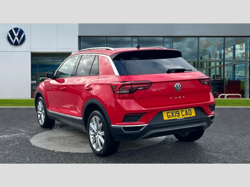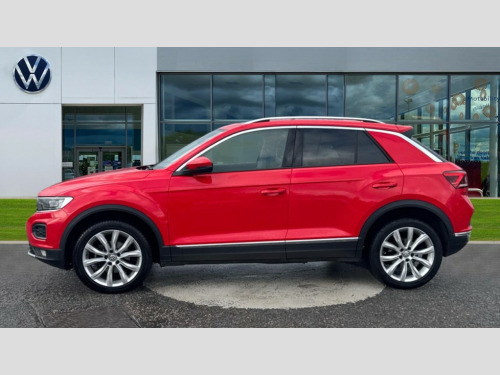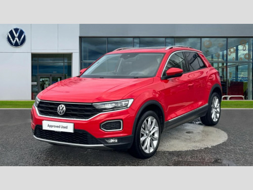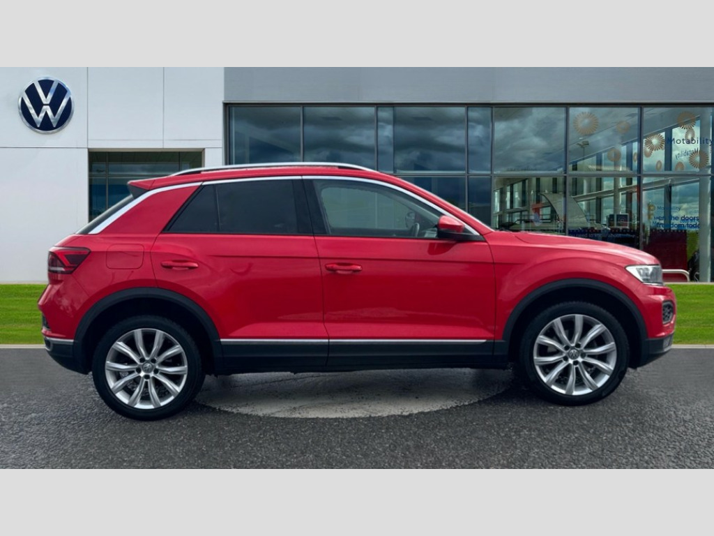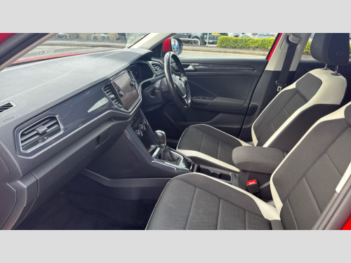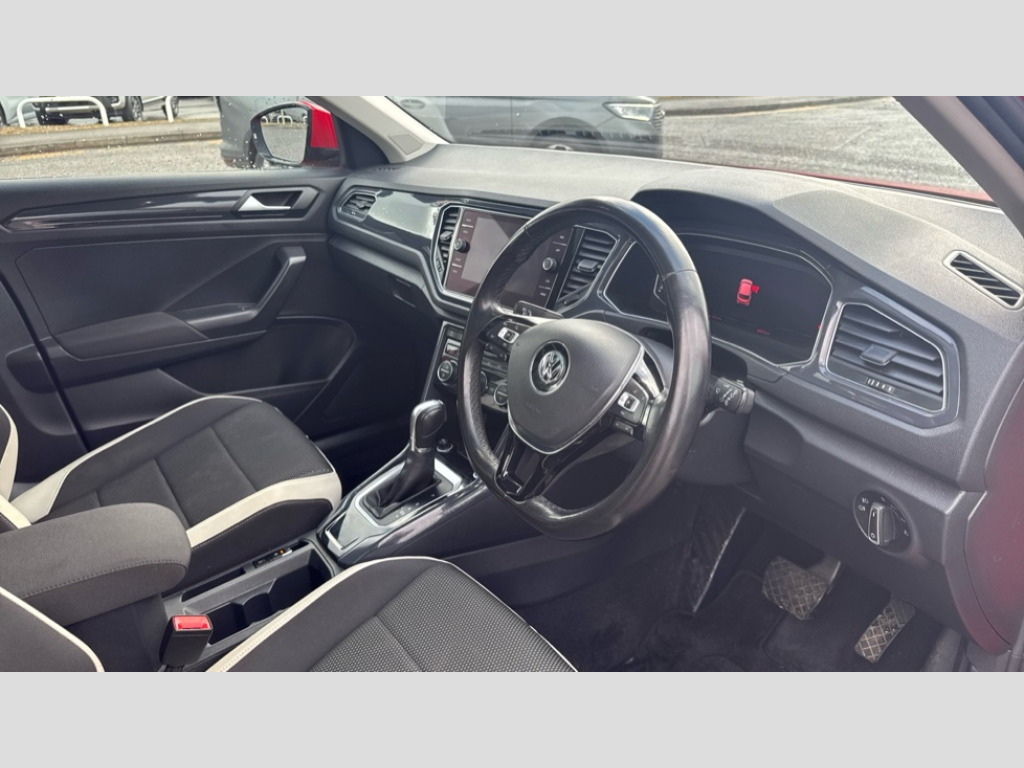 Volkswagen T-Roc 1.5 TSI EVO SEL 5dr DSG 2 USB connection charging sockets, Active Info Display, 10.3" high resolution TFT dash display screen with customised information, Adaptive cruise control, App-Connect, Automatic start/stop system, Bluetooth telephone and audio connection for compatible devices, Car information display, Car-Net Security and Service, Discover navigation, 8" touch screen navigation/infotainment system with Car-Net, European map, CD/radio, 2D/3D map and speed limiter, Driver alert system with audible and visual fatigue detection system, Front assist, radar sensor controlled distance monitor, city emergency braking + predictive pedestrian protection, Lane assist, Multifunction computer with visual gear change recommendation for fuel consumption, Power assisted speed sensitive steering, Service interval indicator, Think blue trainer driver tips and journey analysis, Voice activation, Warning sound and light for doors and tailgate open, Warning sound and light for front seatbelts unfastened, Battery regeneration during braking, Bluetooth - Simultaneous pairing of 2 compatible mobile devices, DAB Digital radio, Dynamic navigation based on TMC+, Multi device interface (MDI) with USB connection, Music playback - MP3, WMA and AAC files, Premium USB cable in choice of either Apple or Android smartphone compatibility, SD card slot, SMS functionality - read, compose and send SMS messages using touch-screen display, Three route options - Fast, Short, Eco, Title and cover art display, Auto dimming interior rear view mirror, Automatic hazard lights activation under emergency braking, Black grained lower door protectors, Black grained wheel arches, Body colour bumpers with silver metallic underbody fascia, Body colour door handles, Chrome effect left and right trapezoid exhaust tailpipe fascia surround, Chrome trim on upper and lower radiator grille, Door mirror integrated indicators, Dusk sensor, Electrically foldable, adjustable and heated door mirrors with puddle lights and reverse activated kerb-view adjustment on passenger's door mirror, Front and rear electric windows, Front fog lights with static cornering function, Front windscreen wiper with intermittent wipe and 4 position delay, Fully galvanised body, Heated rear window, High level 3rd brake light, LED darkened rear light clusters, LED rear number plate lights, Manual coming/automatic leaving home lighting function, Rain sensor, Rear tinted glass from B-pillar backwards approx 65% tinted, Rear windscreen washer and wiper with interval delay, 12V socket in centre console storage area, 2 LED front and rear reading lights, 3 rear head restraints, 4 load lashing points in luggage compartment, Ambient lighting in front footwell and light strips below trim in front doors, Climate control - 2 zone electronic air conditioning with automatic air recirculation and allergy filter, Drawer under drivers seat, Front centre armrest with storage compartment, longitudinal and height adjustable and two rear air vents, Front cupholders x 2, Front footwell illumination, Front seat back storage pockets, Glovebox, Height adjustable front seats, Height/reach adjust steering wheel, Illuminated vanity mirrors, Instrument lighting, white adjustable panel illumination, Interior light delay, Isofix easy fit child seat preparation for 2 outer rear seats, Load through provision with single cup holder when folded down, Luggage compartment cover, removable, Luggage compartment lighting, Split folding rear seat backrests with centre armrest, Storage compartment in left and right luggage area, Storage compartment in rear doors, Storage compartments in driver and front passenger doors, 3 rear three point seatbelts, ABS, Driver and front passenger safety-optimised head restraints, Electronic parking brake with auto hold, ESC with EDL, ASR, EDTC and trailer stabilisation function, Front and rear curtain airbags, driver and front passenger airbags with passenger deactivation switch and front side impact airbags, Rigid safety cell with front and rear crumple zones, Three point height adjust front seatbelts + pretensioners, Tyre pressure loss indicator, Ventilated front and rear disc brakes, Volkswagen roadside assistance, Alarm with remote central locking and interior protection, Electronic engine immobiliser, Remote central locking with 2 remote folding keys
