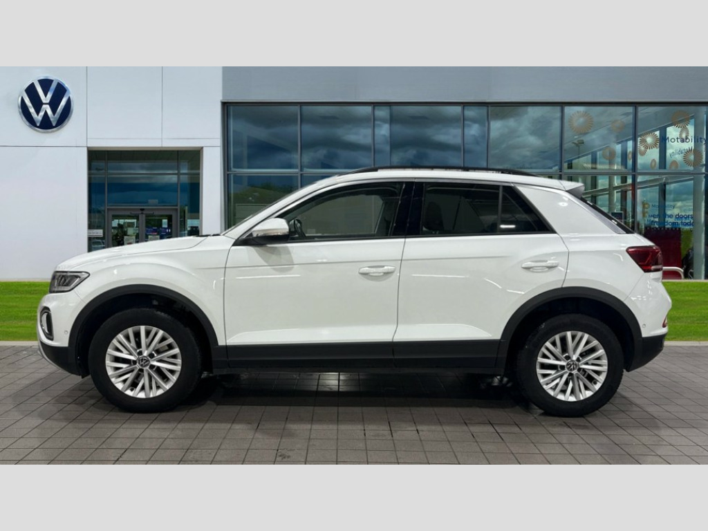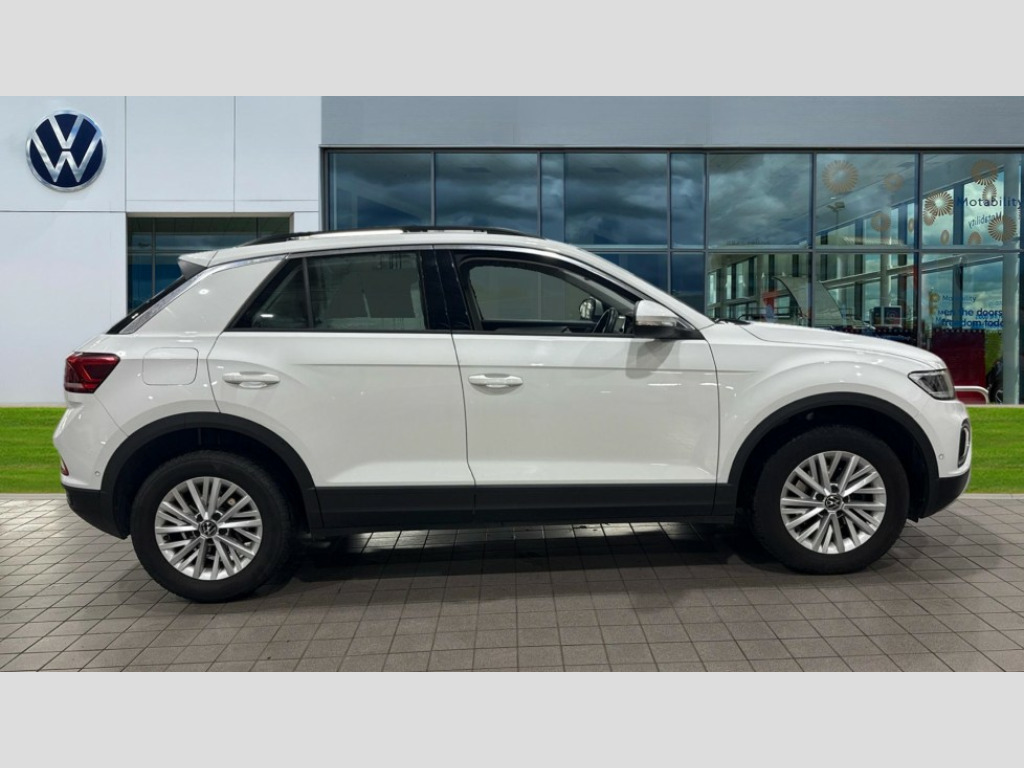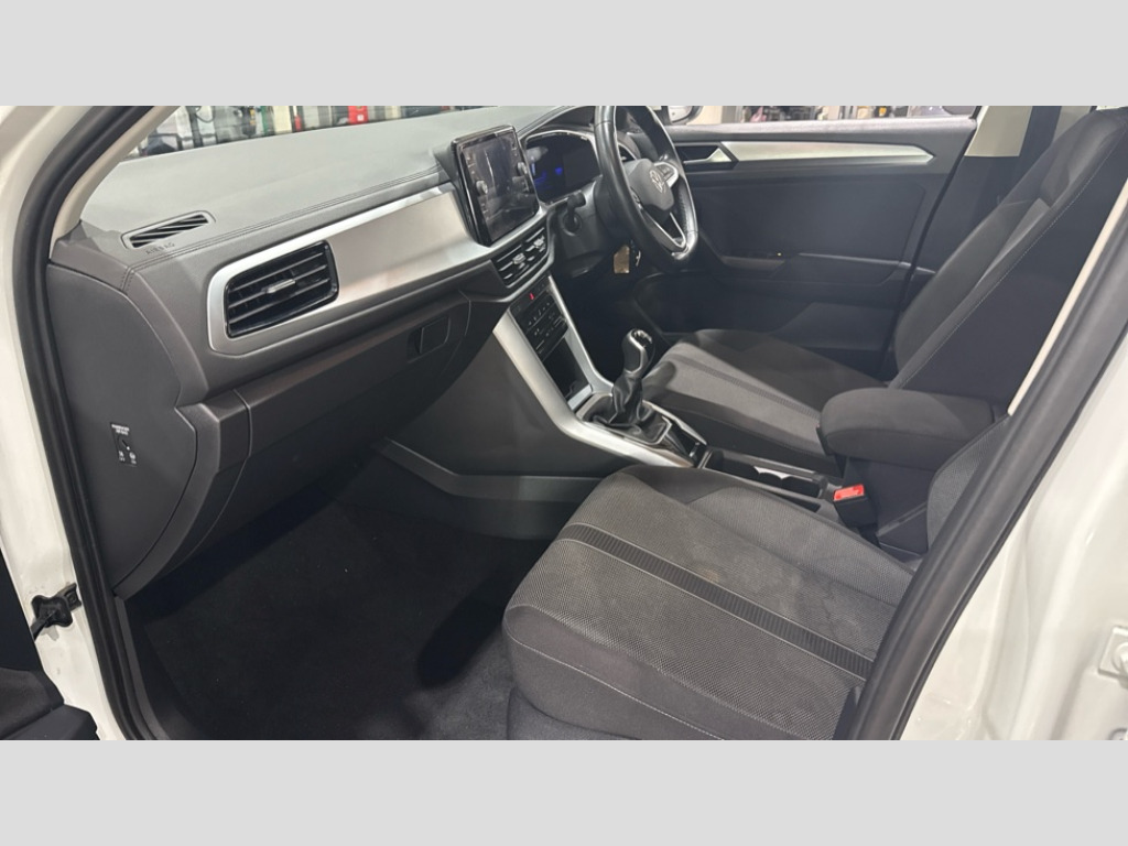 Volkswagen T-Roc 1.5 TSI Life 5dr Bluetooth mobile phone interface, Driver alert system with fatigue detection, Driver tips and journey analysis, Emergency call service, Lane keeping system Lane Assist, Modified key software - reduce switch off time for key status change to Long no motion, Online services, Park assist including front and rear parking sensors, Power assisted speed sensitive steering, Service interval indicator, Tailgate/trunk lid release from outside, Think blue trainer driver tips and journey analysis, Warning sound and light for front seatbelts unfastened, Wireless app connect, Battery regeneration during braking, Front shock absorption, Rear shock absorption chassis with increased ride height, Start/stop function with battery regeneration, DAB Digital radio, Diversity antenna for FM reception, Music playback - MP3, WMA and AAC files, Premium USB cable in choice of either Apple or Android smartphone compatibility, SD card slot, Simultaneous pairing of 2 compatible mobile devices, Title and cover art display, We Connect and We Connect Plus functionality, 3rd brake light, Auto dimming interior rear view mirror, Automatic hazard lights activation under emergency braking, Automatic headlight control with LED separate daytime running lights with coming/leaving home function, Black roof rails, Body coloured bumpers and radiator grille with chrome trim and front fog lamps with chrome bezel, Body coloured exterior mirror housings and door handles, Extended roof spoiler, Exterior mirrors aspherical on driver side, convex on front passenger side, External USB type C socket and charging sockets, Front windscreen wiper with intermittent wipe and 4 position delay, Heated rear window, LED rear combination lamps, LED rear number plate lights, LED tail lamp rear comination lamps, Power windows with comfort operation and circuit breaker, Rain sensor, Rear exhaust tailpipe, Rear fog light on one side and reversing lights on both sides, Rear side wing doors, Rear wash/wipe with intermittent wipe setting, Remote electrically foldable door mirrors, puddle lights and reverse activated passenger's door mirror, 12V power socket in centre console, 3 rear head restraints, 3 seat bench in 2nd row, 4 load lashing points in luggage compartment, Air care climatronic air conditoning system with active combination filter and 2-zone temperature control, Ambient lighting with mirror logo projection, Cloth upholstery, Door and side trim panel in cloth, Drawer under drivers seat, Driver/front passenger seat height adjustment, Front centre armrest, Front comfort sports seats, Front cupholders x 2, Front reading light, Instrument lighting, white adjustable panel illumination, Interior light delay, Isofix child seat preparation, Leather gearshift handle, Load-through provision with cup holder when folded down ('Unsplit rear seat bench, split folding backrest, with centre armrest), Luggage compartment lighting, Lumbar support for driver's and front passengers seat, Non-folding front passenger seat backrest, Single front passenger seat, Storage compartment in left and right luggage area, Storage compartment in rear doors, Storage compartments in driver and front passenger doors, Sunvisors with illuminated vanity mirrors, Variable boot floor, height adjustable and removable, Driver assistance pack without proactive passenger protection - T-Roc, 3 point height adj front seatbelts + pretensioners, 3 point seatbelts in outer rear with ECE label, ABS, Child locks on rear doors, Driver and front passenger airbag with front passenger airbag deactivation, Driver and front passenger safety-optimised head restraints, Drivers seatbelt reminder, Electronic parking brake, Electronic Stability Control (ESC) inc EDL (Electronic Differential Lock) and ASR (Traction Control), Front and rear passengers curtain airbag system including front side airbags, Front assist with city emergency braking and pedestrian monitoring, Front disc brakes, Front seat side impact airbags, Hill start assist, Predictive pedestrian protection, Rear disc brakes, Single tone horn, Tyre pressure loss indicator, Volkswagen roadside assistance, Alarm with interior protection, Anti-theft alarm system with interior monitoring, backup horn, and towing protection, Remote central locking with SAFELOCK, radio remote control with 2 remote control folding keys, Pewter matt decorative inserts for intrument panel, centre console and door panels at the front, Trims for alloy wheels