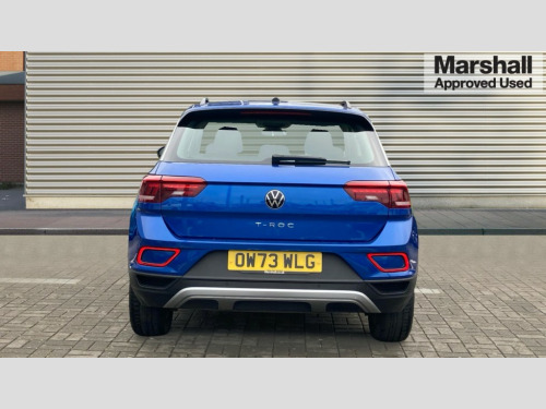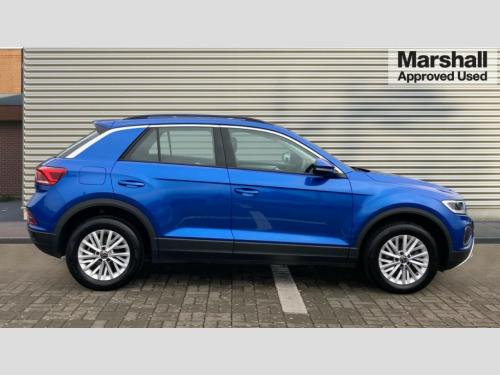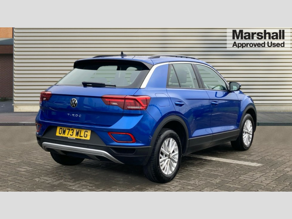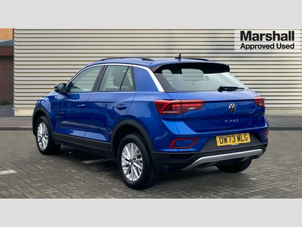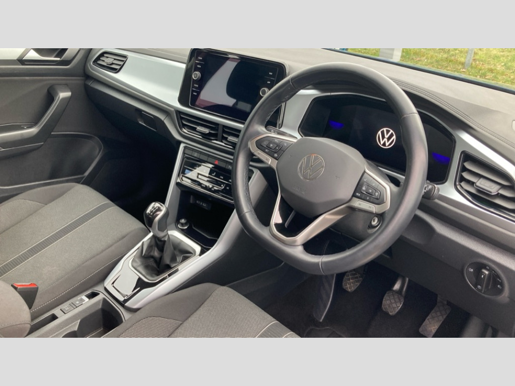 Volkswagen T-Roc 1.5 TSI Life 5dr Advanced driver attention and drowsiness monitor, Bluetooth mobile phone interface, Emergency call service, Lane keeping system Lane Assist, Modified key software - reduce switch off time for key status change to Long no motion, Online services, Park assist including front and rear parking sensors, Power assisted speed sensitive steering, Service interval indicator, Tailgate/trunk lid release from outside, Think blue trainer driver tips and journey analysis, Warning sound and light for front seatbelts unfastened, Wireless app connect, Battery regeneration during braking, Front shock absorption, Rear shock absorption chassis with increased ride height, Start/stop function with battery regeneration, DAB Digital radio, Diversity antenna for FM reception, Music playback - MP3, WMA and AAC files, Premium USB cable in choice of either Apple or Android smartphone compatibility, SD card slot, Simultaneous pairing of 2 compatible mobile devices, Title and cover art display, We Connect and We Connect Plus functionality, 3rd brake light, Auto dimming interior rear view mirror, Automatic hazard lights activation under emergency braking, Automatic headlight control with LED separate daytime running lights with coming/leaving home function, Black roof rails, Body coloured bumpers and radiator grille with chrome trim and front fog lamps with chrome bezel, Body coloured exterior mirror housings and door handles, Electrically adjustable and heated door mirrors, Extended roof spoiler, Exterior mirrors aspherical on driver side, convex on front passenger side, External USB type C socket and charging sockets, Front windscreen wiper with intermittent wipe and 4 position delay, Heated rear window, LED rear combination lamps, LED rear number plate lights, Power windows with comfort operation and circuit breaker, Rain sensor, Rear exhaust tailpipe, Rear fog light on one side and reversing lights on both sides, Rear side wing doors, Rear wash/wipe with intermittent wipe setting, Remote electrically foldable door mirrors, puddle lights and reverse activated passenger's door mirror, 12V power socket in centre console, 3 rear head restraints, 3 seat bench in 2nd row, 4 load lashing points in luggage compartment, Air care climatronic air conditoning system with active combination filter and 2-zone temperature control, Ambient lighting with mirror logo projection, Cloth upholstery, Door and side trim panel in cloth, Drawer under drivers seat, Driver/front passenger seat height adjustment, Front centre armrest, Front comfort sports seats, Front cupholders x 2, Front reading light, Front seat back storage pockets, Glove compartment door with light, Instrument lighting, white adjustable panel illumination, Interior light delay, Isofix child seat preparation, Leather gearshift handle, Load-through provision with cup holder when folded down ('Unsplit rear seat bench, split folding backrest, with centre armrest), Luggage compartment lighting, Lumbar support for driver's and front passengers seat, Non-folding front passenger seat backrest, Single front passenger seat, Storage compartment in left and right luggage area, Storage compartment in rear doors, Storage compartments in driver and front passenger doors, Sunvisors with illuminated vanity mirrors, Variable boot floor, height adjustable and removable, Driver assistance pack without proactive passenger protection - T-Roc Life/Match, 3 point height adj front seatbelts + pretensioners, 3 point seatbelts in outer rear with ECE label, ABS, Child locks on rear doors, City emergency braking and pedestrian monitoring, Driver and front passenger airbag with front passenger airbag deactivation, Driver and front passenger safety-optimised head restraints, Drivers seatbelt reminder, Electronic parking brake, Electronic Stability Control (ESC) inc EDL (Electronic Differential Lock) and ASR (Traction Control), Front and rear passengers curtain airbag system including front side airbags, Front disc brakes, Hill start assist, Predictive pedestrian protection, Rear disc brakes, Two tone horn, Tyre pressure loss indicator, Volkswagen roadside assistance, Alarm with interior protection, Anti-theft alarm system with interior monitoring, backup horn, and towing protection, Remote central locking with SAFELOCK, radio remote control with 2 remote control folding keys, Pewter matt decorative inserts for intrument panel, centre console and door panels at the front, Trims for alloy wheels