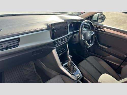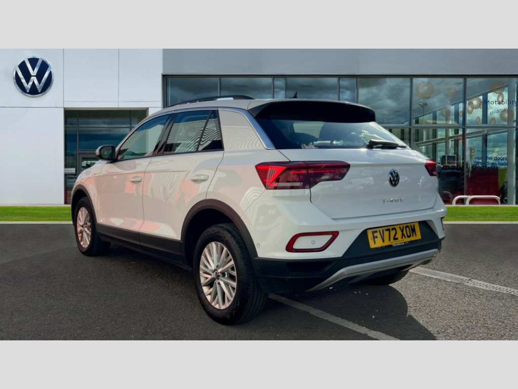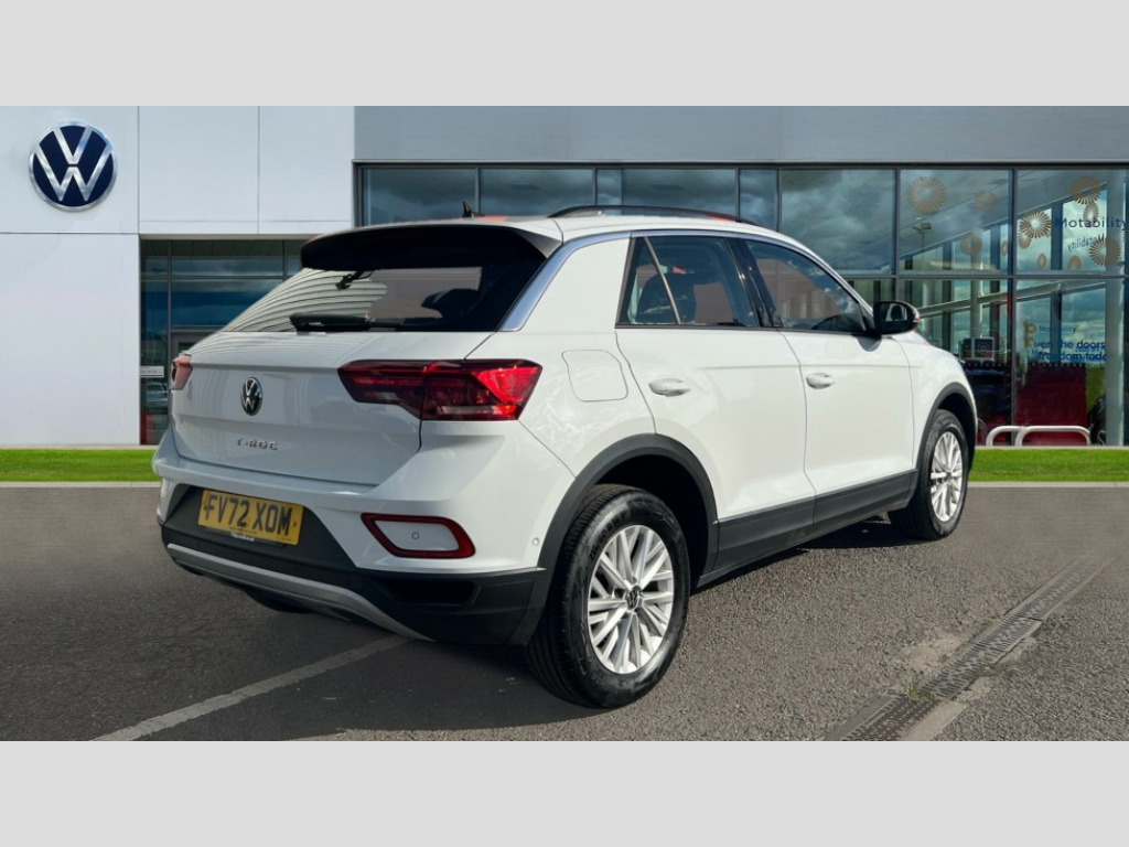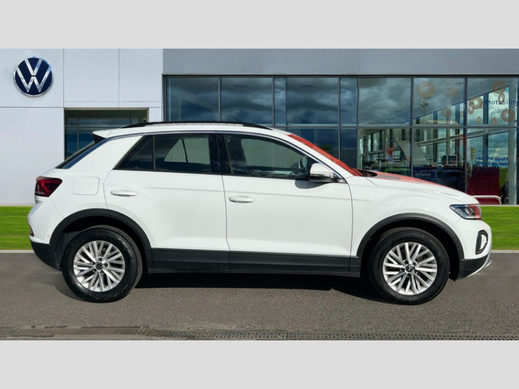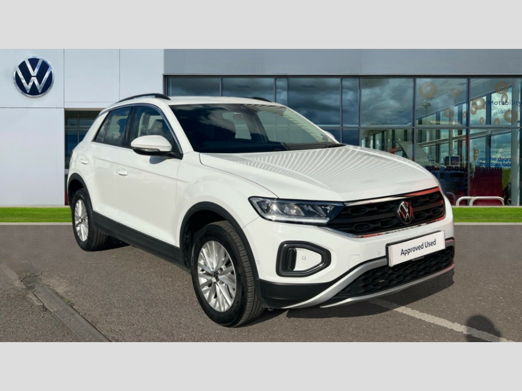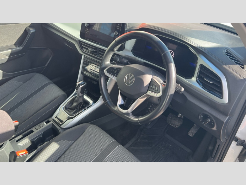 Volkswagen T-Roc 1.5 TSI Life 5dr DSG Bluetooth mobile phone interface, Driver alert system with fatigue detection, Driver tips and journey analysis, Emergency call service, Lane keeping system Lane Assist, Modified key software - reduce switch off time for key status change to Long no motion, Online services, Park assist including front and rear parking sensors, Power assisted speed sensitive steering, Service interval indicator, Tailgate/trunk lid release from outside, Think blue trainer driver tips and journey analysis, Warning sound and light for front seatbelts unfastened, Wireless app connect, Battery regeneration during braking, Front shock absorption, Rear shock absorption chassis with increased ride height, Start/stop function with battery regeneration, DAB Digital radio, Diversity antenna for FM reception, Front and rear 6 speakers, Music playback - MP3, WMA and AAC files, Premium USB cable in choice of either Apple or Android smartphone compatibility, SD card slot, Simultaneous pairing of 2 compatible mobile devices, Title and cover art display, We Connect and We Connect Plus functionality, 3rd brake light, Auto dimming interior rear view mirror, Automatic hazard lights activation under emergency braking, Automatic headlight control with LED separate daytime running lights with coming/leaving home function, Black roof rails, Body coloured bumpers and radiator grille with chrome trim and front fog lamps with chrome bezel, Body coloured exterior mirror housings and door handles, Extended roof spoiler, Exterior mirrors aspherical on driver side, convex on front passenger side, External USB type C socket and charging sockets, Front windscreen wiper with intermittent wipe and 4 position delay, Heated rear window, LED Headlights, LED rear combination lamps, LED rear number plate lights, LED tail lamp rear comination lamps, Power windows with comfort operation and circuit breaker, Rain sensor, Rear exhaust tailpipe, Rear fog light on one side and reversing lights on both sides, Rear side wing doors, Rear wash/wipe with intermittent wipe setting, Remote electrically foldable door mirrors, puddle lights and reverse activated passenger's door mirror, 12V power socket in centre console, 3 rear head restraints, 3 seat bench in 2nd row, 4 load lashing points in luggage compartment, Air care climatronic air conditoning system with active combination filter and 2-zone temperature control, Ambient lighting with mirror logo projection, Cloth upholstery, Door and side trim panel in cloth, Drawer under drivers seat, Driver/front passenger seat height adjustment, Front centre armrest, Front comfort sports seats, Front cupholders x 2, Front reading light, Instrument lighting, white adjustable panel illumination, Interior light delay, Isofix child seat preparation, Leather gearshift handle, Load-through provision with cup holder when folded down ('Unsplit rear seat bench, split folding backrest, with centre armrest), Luggage compartment lighting, Lumbar support for driver's and front passengers seat, Non-folding front passenger seat backrest, Single front passenger seat, Storage compartment in left and right luggage area, Storage compartment in rear doors, Storage compartments in driver and front passenger doors, Sunvisors with illuminated vanity mirrors, Variable boot floor, height adjustable and removable, Driver assistance pack without proactive passenger protection - T-Roc, 3 point height adj front seatbelts + pretensioners, 3 point seatbelts in outer rear with ECE label, ABS, Child locks on rear doors, Driver and front passenger airbag with front passenger airbag deactivation, Driver and front passenger safety-optimised head restraints, Drivers seatbelt reminder, Electronic parking brake, Electronic Stability Control (ESC) inc EDL (Electronic Differential Lock) and ASR (Traction Control), Front and rear passengers curtain airbag system including front side airbags, Front assist with city emergency braking and pedestrian monitoring, Front disc brakes, Front seat side impact airbags, Hill start assist, Predictive pedestrian protection, Rear disc brakes, Single tone horn, Tyre pressure loss indicator, Volkswagen roadside assistance, Alarm with interior protection, Anti-theft alarm system with interior monitoring, backup horn, and towing protection, Remote central locking with SAFELOCK, radio remote control with 2 remote control folding keys, Pewter matt decorative inserts for intrument panel, centre console and door panels at the front, Trims for alloy wheels