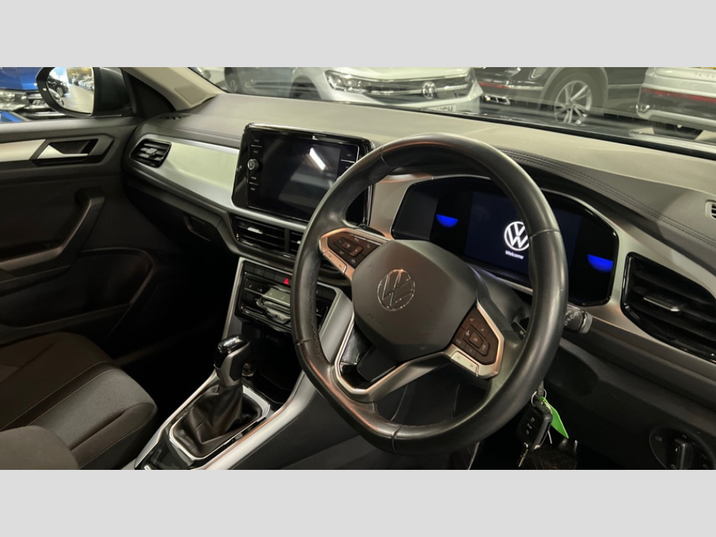 Volkswagen T-Roc 1.5 TSI Life 5dr DSG Bluetooth mobile phone interface, Driver alert system with fatigue detection, Driver tips and journey analysis, Emergency call service, Lane keeping system Lane Assist, Modified key software - reduce switch off time for key status change to Long no motion, Online services, Park assist including front and rear parking sensors, Power assisted speed sensitive steering, Service interval indicator, Tailgate/trunk lid release from outside, Think blue trainer driver tips and journey analysis, Warning sound and light for front seatbelts unfastened, Wireless app connect, Battery regeneration during braking, Front shock absorption, Rear shock absorption chassis with increased ride height, Start/stop function with battery regeneration, DAB Digital radio, Diversity antenna for FM reception, Music playback - MP3, WMA and AAC files, Premium USB cable in choice of either Apple or Android smartphone compatibility, SD card slot, Simultaneous pairing of 2 compatible mobile devices, Title and cover art display, We Connect and We Connect Plus functionality, 3rd brake light, Auto dimming interior rear view mirror, Automatic hazard lights activation under emergency braking, Automatic headlight control with LED separate daytime running lights with coming/leaving home function, Black roof rails, Body coloured bumpers and radiator grille with chrome trim and front fog lamps with chrome bezel, Body coloured exterior mirror housings and door handles, Extended roof spoiler, Exterior mirrors aspherical on driver side, convex on front passenger side, External USB type C socket and charging sockets, Front windscreen wiper with intermittent wipe and 4 position delay, Heated rear window, LED rear combination lamps, LED rear number plate lights, LED tail lamp rear comination lamps, Power windows with comfort operation and circuit breaker, Rain sensor, Rear exhaust tailpipe, Rear fog light on one side and reversing lights on both sides, Rear side wing doors, Rear wash/wipe with intermittent wipe setting, Remote electrically foldable door mirrors, puddle lights and reverse activated passenger's door mirror, 12V power socket in centre console, 3 rear head restraints, 3 seat bench in 2nd row, 4 load lashing points in luggage compartment, Air care climatronic air conditoning system with active combination filter and 2-zone temperature control, Ambient lighting with mirror logo projection, Cloth upholstery, Door and side trim panel in cloth, Drawer under drivers seat, Driver/front passenger seat height adjustment, Front centre armrest, Front comfort sports seats, Front cupholders x 2, Front reading light, Instrument lighting, white adjustable panel illumination, Interior light delay, Isofix child seat preparation, Leather gearshift handle, Load-through provision with cup holder when folded down ('Unsplit rear seat bench, split folding backrest, with centre armrest), Luggage compartment lighting, Lumbar support for driver's and front passengers seat, Non-folding front passenger seat backrest, Single front passenger seat, Storage compartment in left and right luggage area, Storage compartment in rear doors, Storage compartments in driver and front passenger doors, Sunvisors with illuminated vanity mirrors, Variable boot floor, height adjustable and removable, Driver assistance pack without proactive passenger protection - T-Roc, 3 point height adj front seatbelts + pretensioners, 3 point seatbelts in outer rear with ECE label, ABS, Child locks on rear doors, Driver and front passenger airbag with front passenger airbag deactivation, Driver and front passenger safety-optimised head restraints, Drivers seatbelt reminder, Electronic parking brake, Electronic Stability Control (ESC) inc EDL (Electronic Differential Lock) and ASR (Traction Control), Front and rear passengers curtain airbag system including front side airbags, Front assist with city emergency braking and pedestrian monitoring, Front disc brakes, Front seat side impact airbags, Hill start assist, Predictive pedestrian protection, Rear disc brakes, Single tone horn, Tyre pressure loss indicator, Volkswagen roadside assistance, Alarm with interior protection, Anti-theft alarm system with interior monitoring, backup horn, and towing protection, Remote central locking with SAFELOCK, radio remote control with 2 remote control folding keys, Pewter matt decorative inserts for intrument panel, centre console and door panels at the front, Trims for alloy wheels