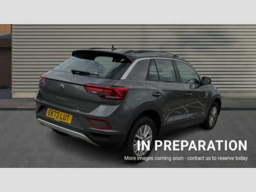 Volkswagen T-Roc 1.5 TSI Life 5dr DSG Bluetooth mobile phone interface, Driver alert system with fatigue detection, Driver tips and journey analysis, Emergency call service, Lane keeping system Lane Assist, Modified key software - reduce switch off time for key status change to Long no motion, Online services, Park assist including front and rear parking sensors, Power assisted speed sensitive steering, Service interval indicator, Tailgate/trunk lid release from outside, Think blue trainer driver tips and journey analysis, Warning sound and light for front seatbelts unfastened, Wireless app connect, Battery regeneration during braking, Front shock absorption, Rear shock absorption chassis with increased ride height, Start/stop function with battery regeneration, DAB Digital radio, Diversity antenna for FM reception, Music playback - MP3, WMA and AAC files, Premium USB cable in choice of either Apple or Android smartphone compatibility, SD card slot, Simultaneous pairing of 2 compatible mobile devices, Title and cover art display, We Connect and We Connect Plus functionality, 3rd brake light, Auto dimming interior rear view mirror, Automatic hazard lights activation under emergency braking, Automatic headlight control with LED separate daytime running lights with coming/leaving home function, Black roof rails, Body coloured bumpers and radiator grille with chrome trim and front fog lamps with chrome bezel, Body coloured exterior mirror housings and door handles, Extended roof spoiler, Exterior mirrors aspherical on driver side, convex on front passenger side, External USB type C socket and charging sockets, Front windscreen wiper with intermittent wipe and 4 position delay, Heated rear window, LED rear combination lamps, LED rear number plate lights, LED tail lamp rear comination lamps, Power windows with comfort operation and circuit breaker, Rain sensor, Rear exhaust tailpipe, Rear fog light on one side and reversing lights on both sides, Rear side wing doors, Rear wash/wipe with intermittent wipe setting, Remote electrically foldable door mirrors, puddle lights and reverse activated passenger's door mirror, 12V power socket in centre console, 3 rear head restraints, 3 seat bench in 2nd row, 4 load lashing points in luggage compartment, Air care climatronic air conditoning system with active combination filter and 2-zone temperature control, Ambient lighting with mirror logo projection, Cloth upholstery, Door and side trim panel in cloth, Drawer under drivers seat, Driver/front passenger seat height adjustment, Front centre armrest, Front comfort sports seats, Front cupholders x 2, Front reading light, Instrument lighting, white adjustable panel illumination, Interior light delay, Isofix child seat preparation, Leather gearshift handle, Load-through provision with cup holder when folded down ('Unsplit rear seat bench, split folding backrest, with centre armrest), Luggage compartment lighting, Lumbar support for driver's and front passengers seat, Non-folding front passenger seat backrest, Single front passenger seat, Storage compartment in left and right luggage area, Storage compartment in rear doors, Storage compartments in driver and front passenger doors, Sunvisors with illuminated vanity mirrors, Variable boot floor, height adjustable and removable, Driver assistance pack without proactive passenger protection - T-Roc, 3 point height adj front seatbelts + pretensioners, 3 point seatbelts in outer rear with ECE label, ABS, Child locks on rear doors, Driver and front passenger airbag with front passenger airbag deactivation, Driver and front passenger safety-optimised head restraints, Drivers seatbelt reminder, Electronic parking brake, Electronic Stability Control (ESC) inc EDL (Electronic Differential Lock) and ASR (Traction Control), Front and rear passengers curtain airbag system including front side airbags, Front assist with city emergency braking and pedestrian monitoring, Front disc brakes, Front seat side impact airbags, Hill start assist, Predictive pedestrian protection, Rear disc brakes, Single tone horn, Tyre pressure loss indicator, Volkswagen roadside assistance, Alarm with interior protection, Anti-theft alarm system with interior monitoring, backup horn, and towing protection, Remote central locking with SAFELOCK, radio remote control with 2 remote control folding keys, Pewter matt decorative inserts for intrument panel, centre console and door panels at the front, Trims for alloy wheels